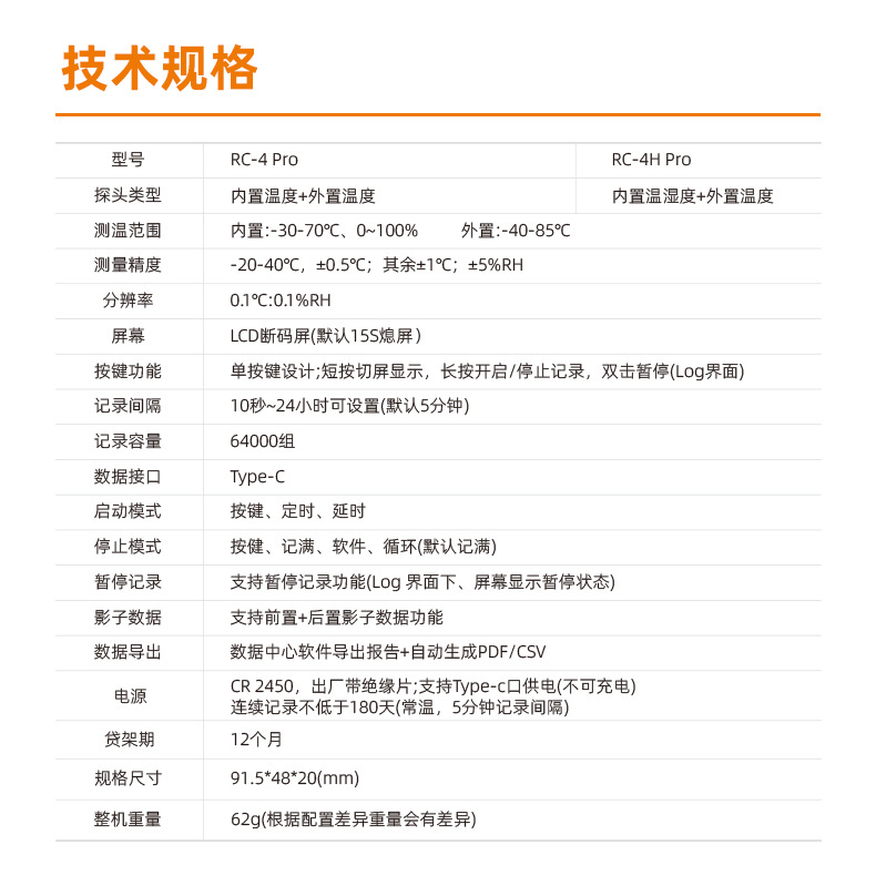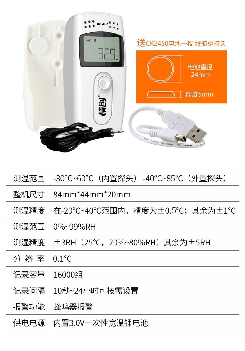 • RC-4HC 온도 및 습도 + 온도 프로브 + 제조업체 교정
