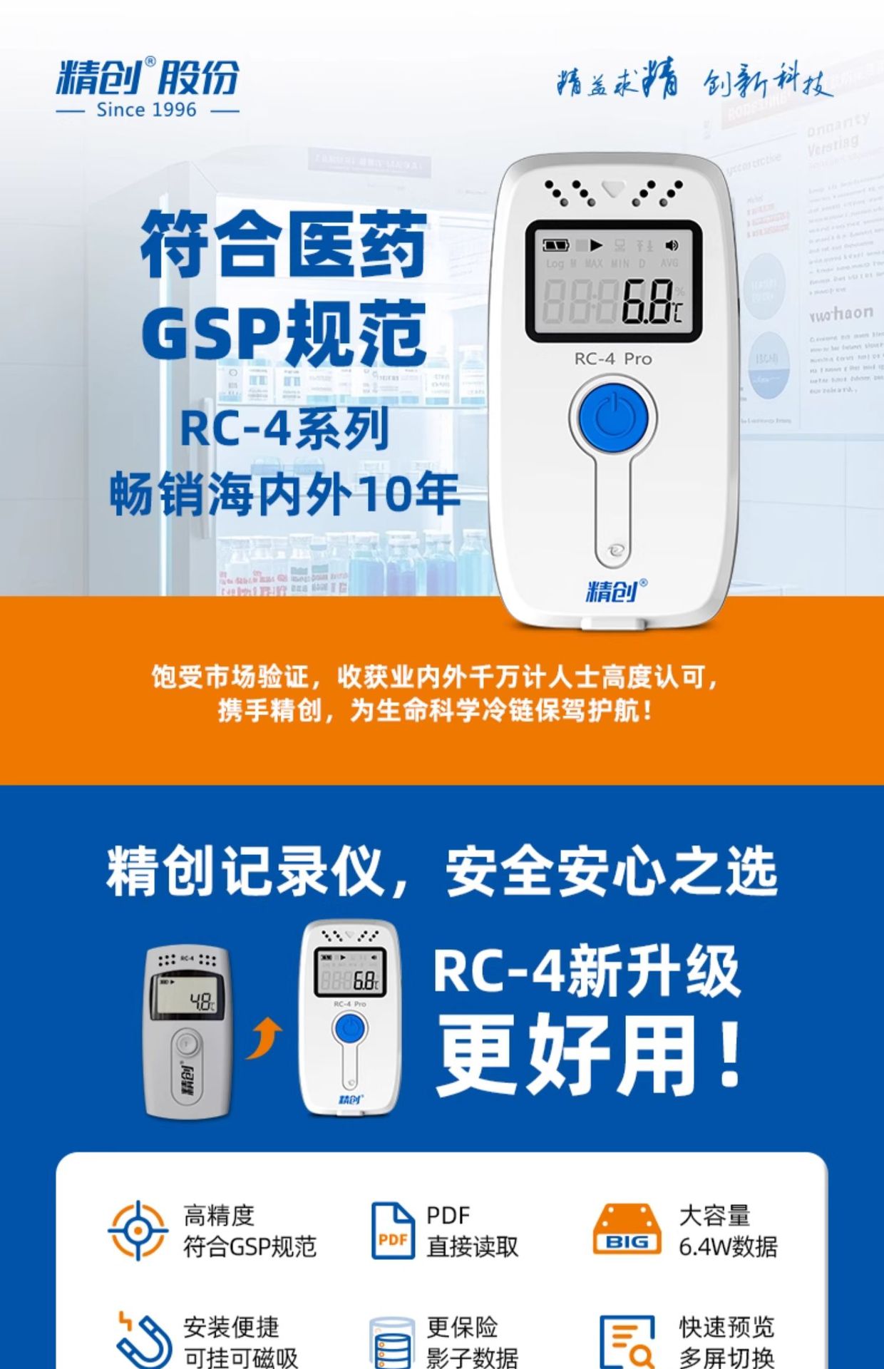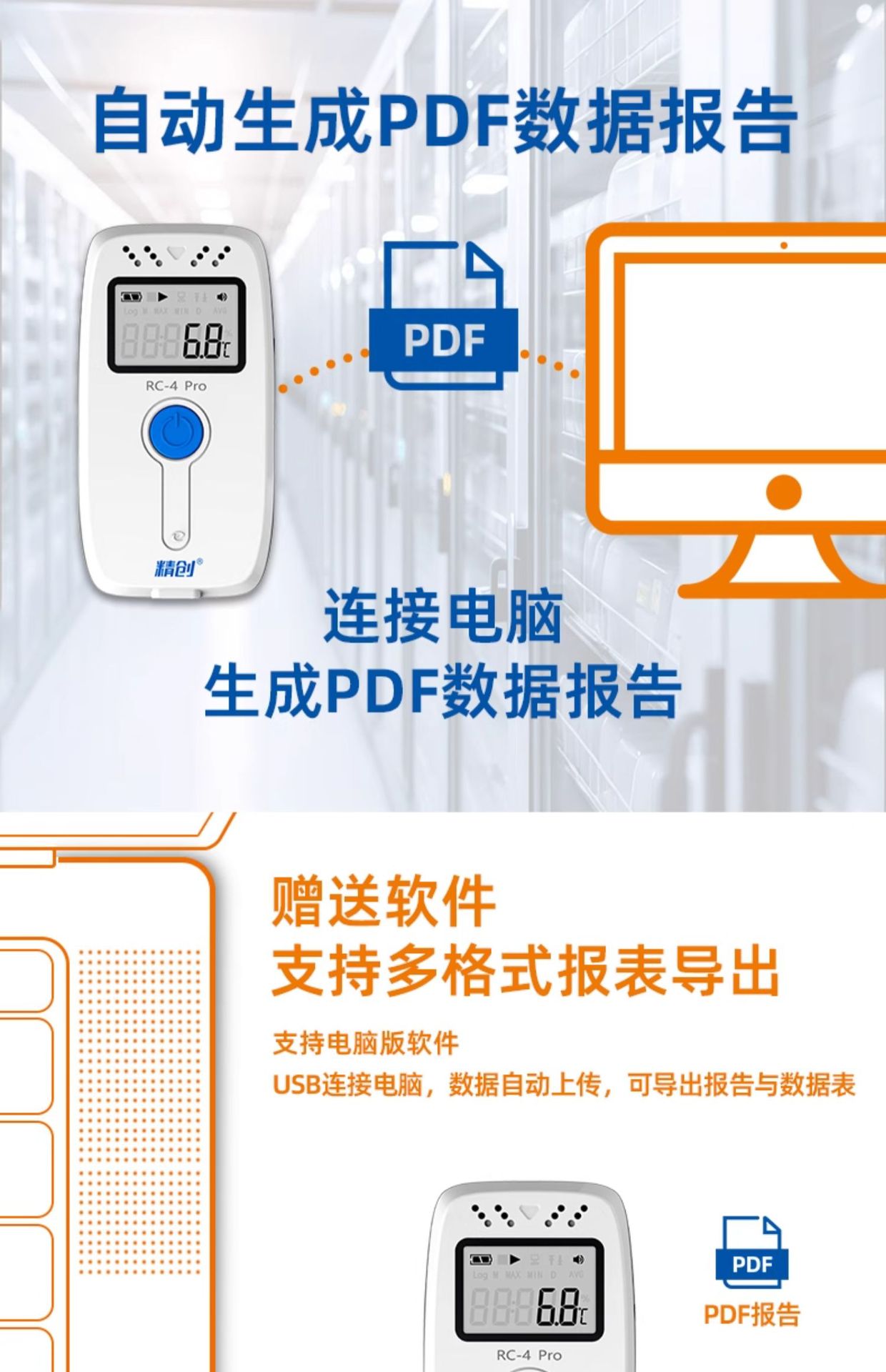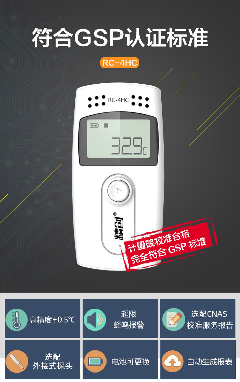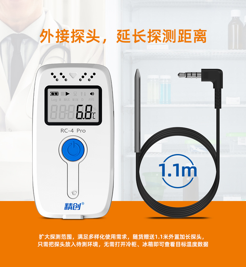 Jingchuang elitech 온도 레코더 GSP 콜드 체인 약국 USB 자동 연속 습식 온도계 RC-4 버저스토어 가기