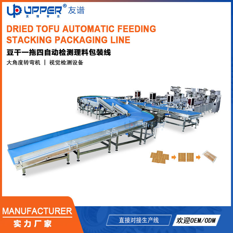 豆干一拖四自动检测理料堆垛包装理料线配视觉检测设备