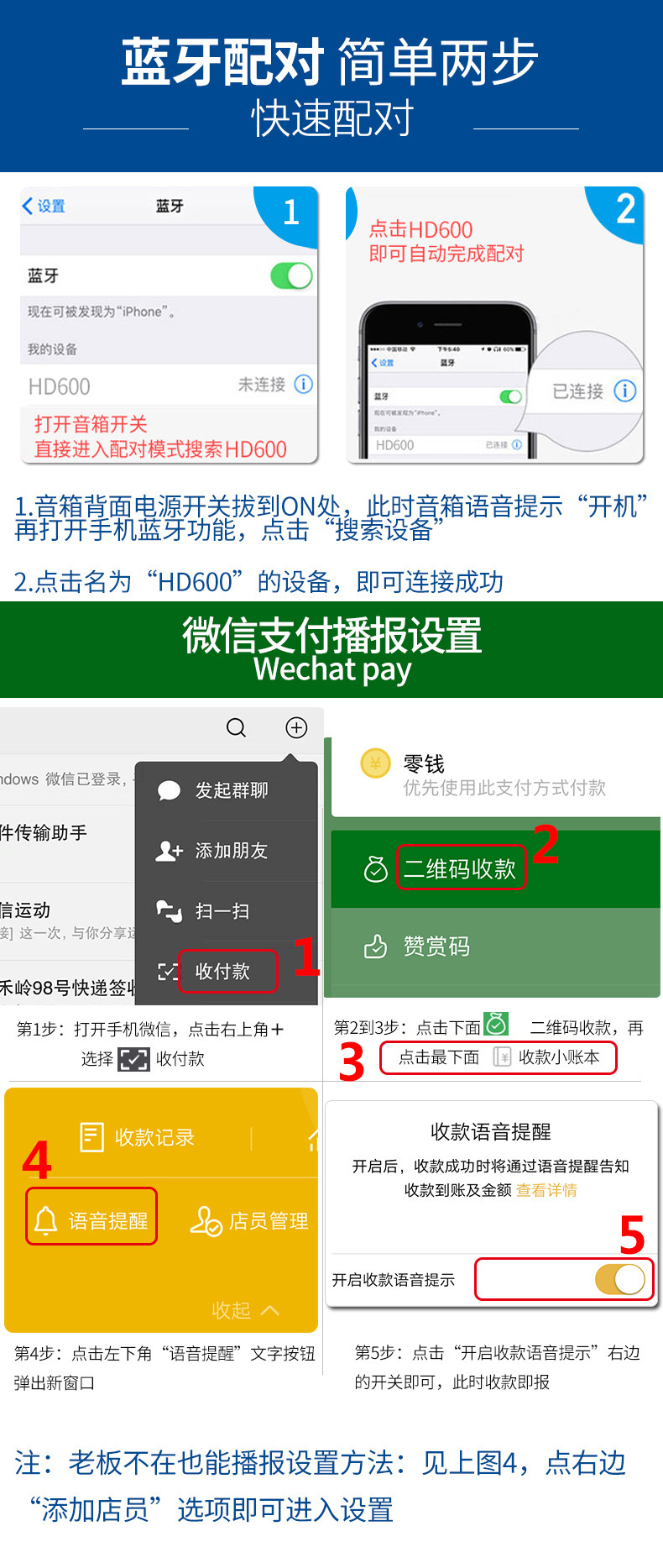 원제조사 위챗 결제 알림 오디오, 입금 음성 안내, QR코드 스피커, 블루투스스토어 가기
