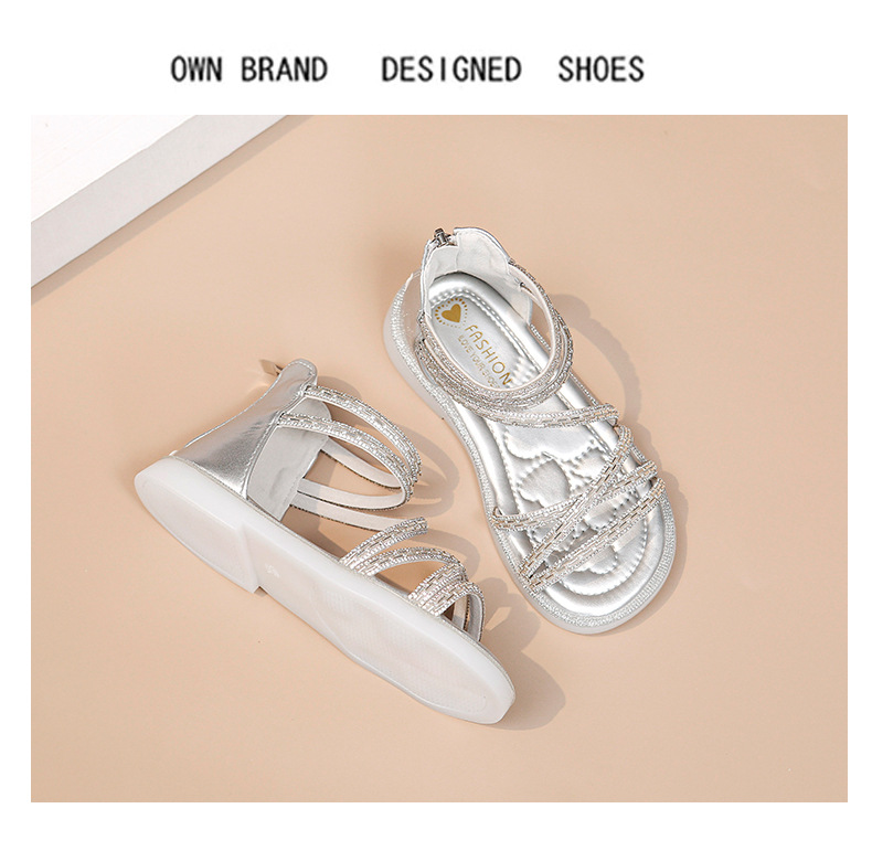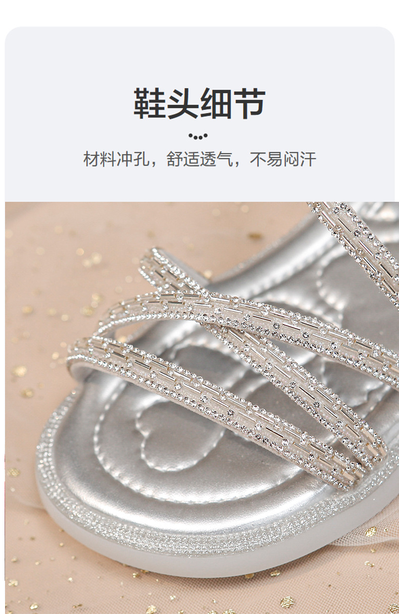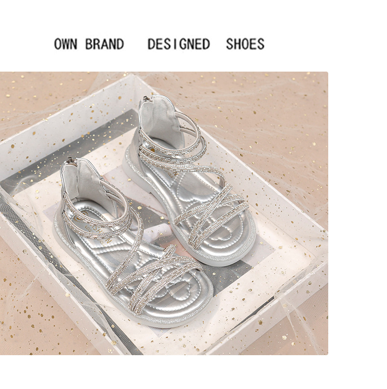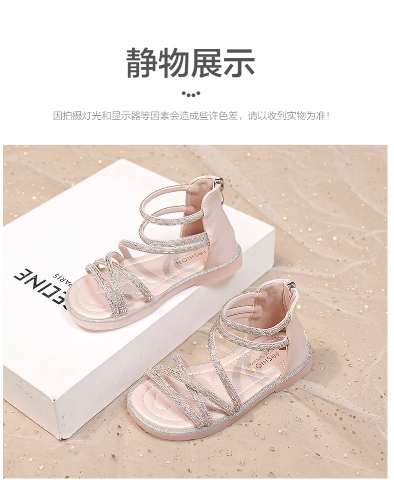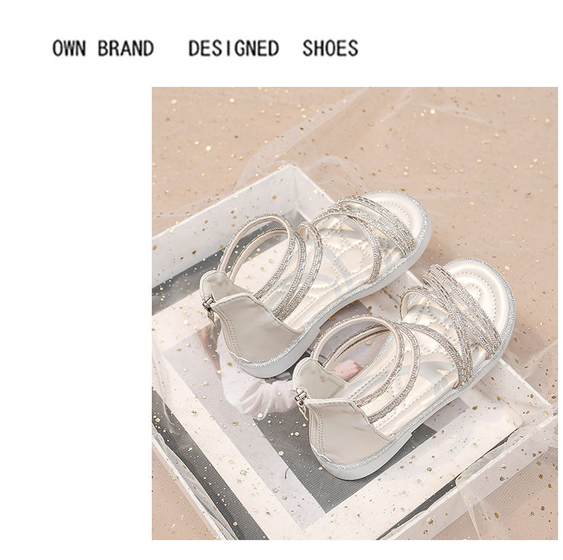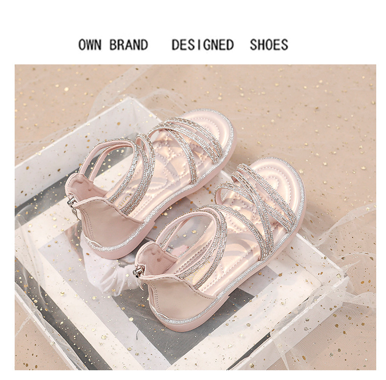 여자 로마 샌들 2025 여름 새 여자 라인 석 공주 신발 어린이 해변 신발 반짝 이는 크리스탈 신발 유행스토어 가기