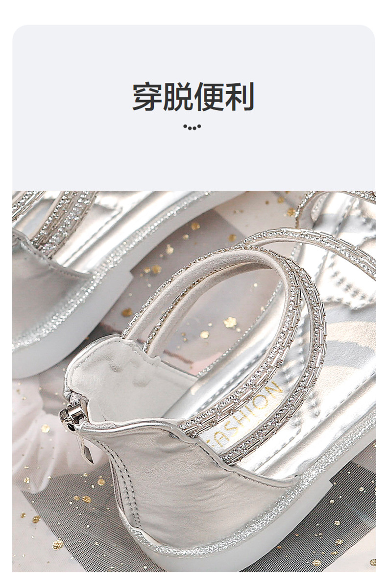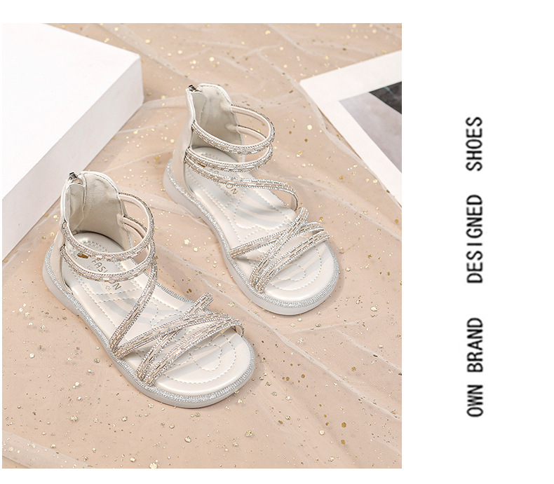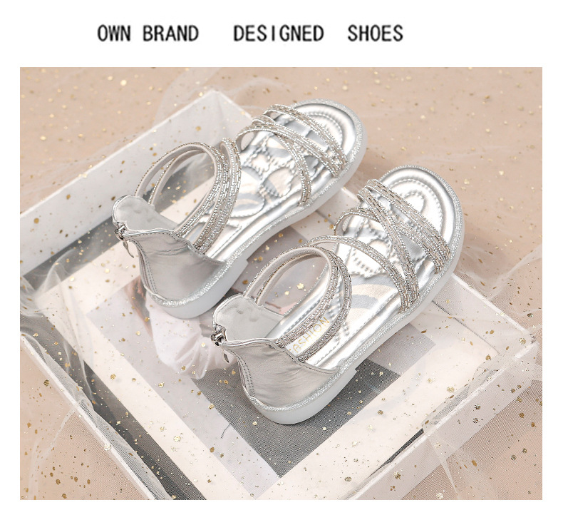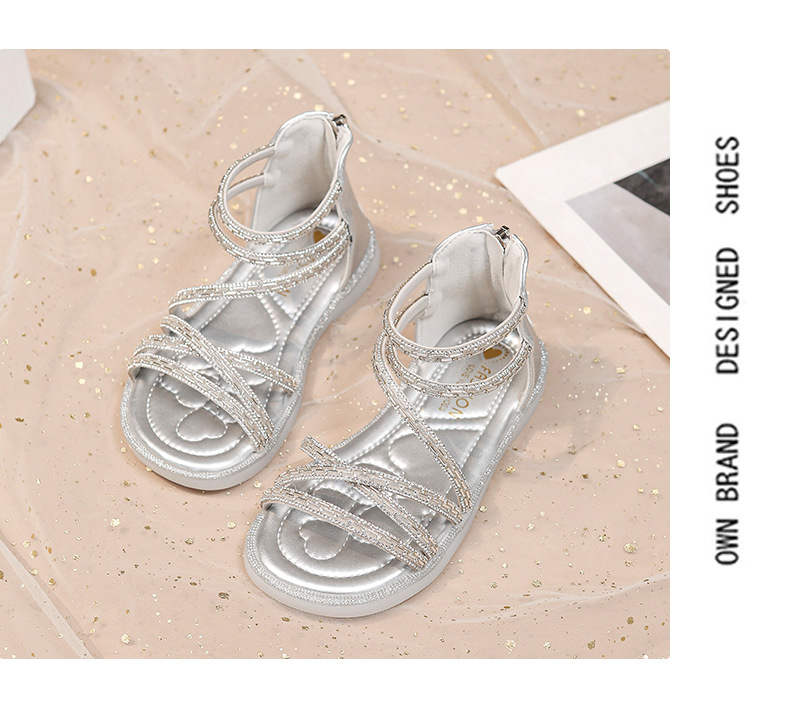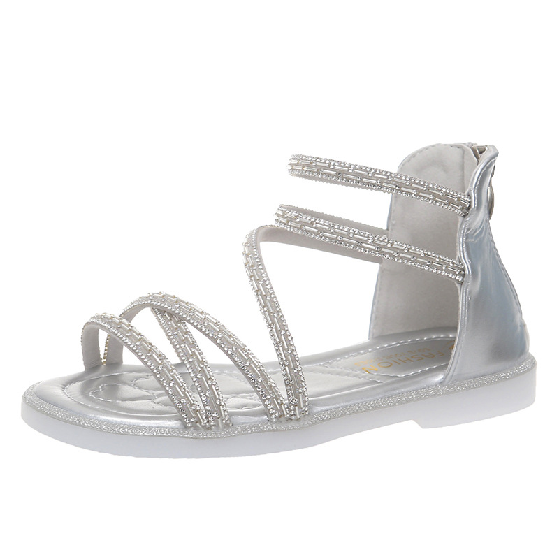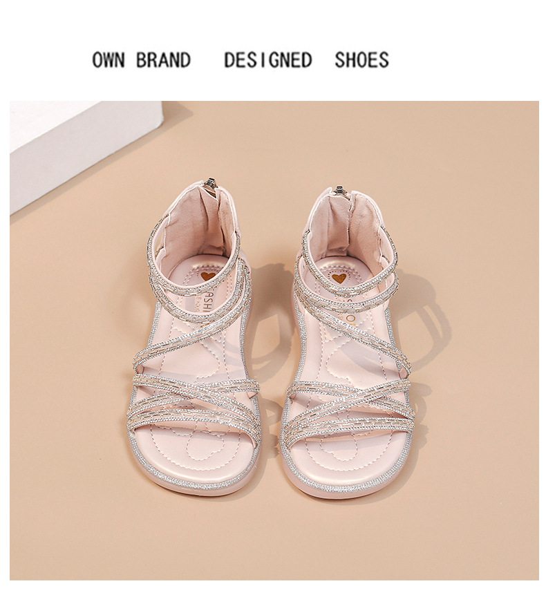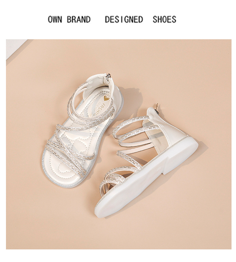 여자 로마 샌들 2025 여름 새 여자 라인 석 공주 신발 어린이 해변 신발 반짝 이는 크리스탈 신발 유행스토어 가기