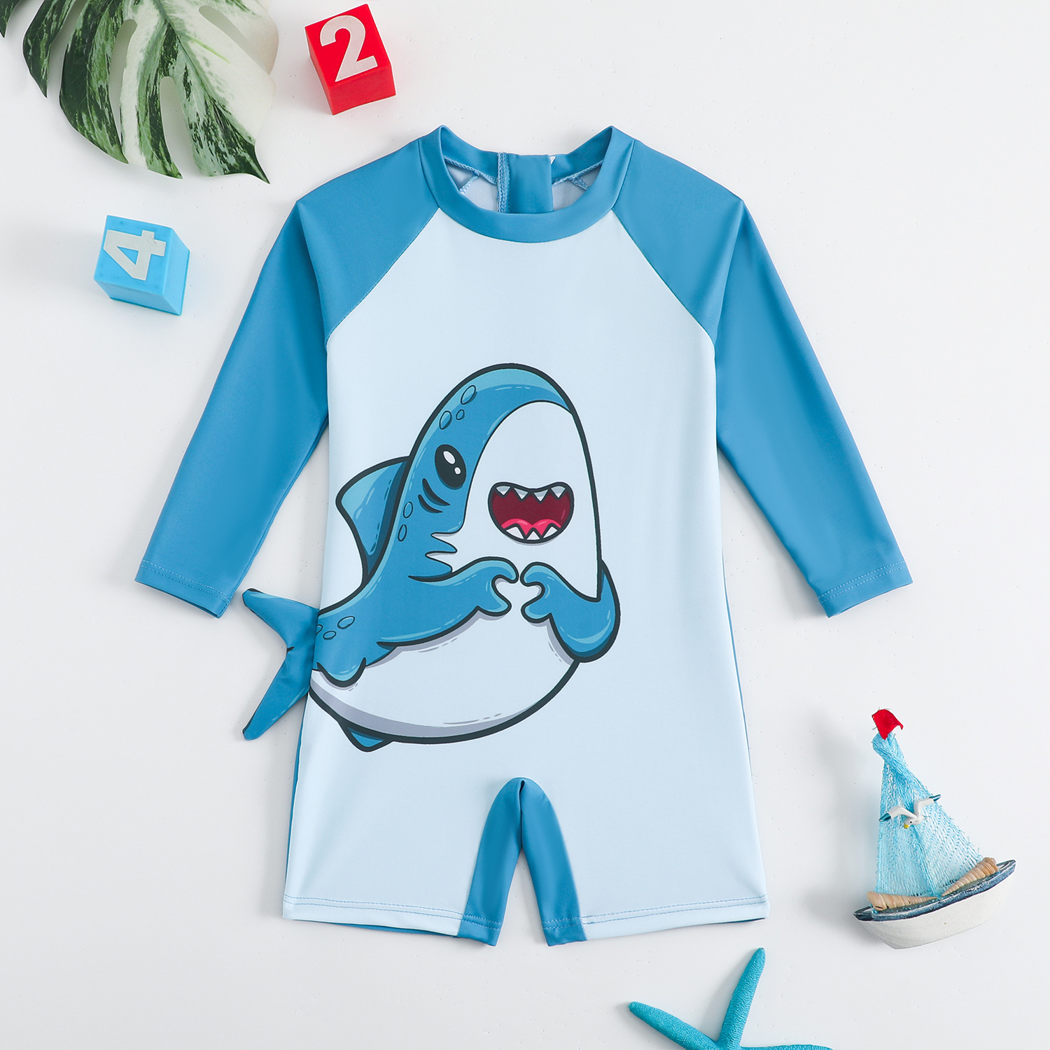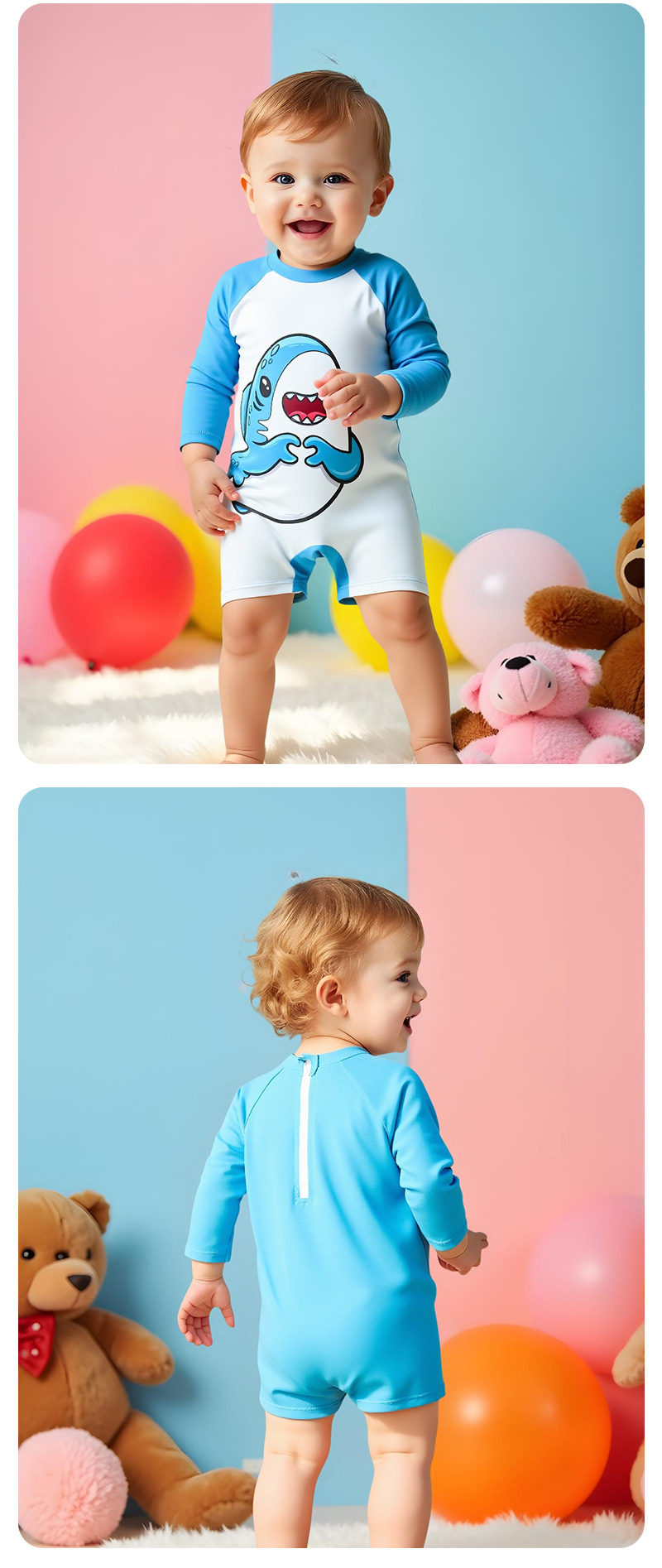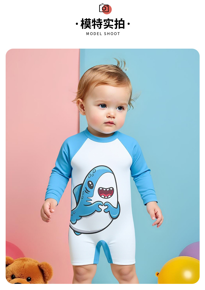 아동 수영복 소년 스플릿 수영복 2025 새로운 자외선 차단제 속건성 상어 긴팔 크로스 보더 소년 수영복스토어 가기