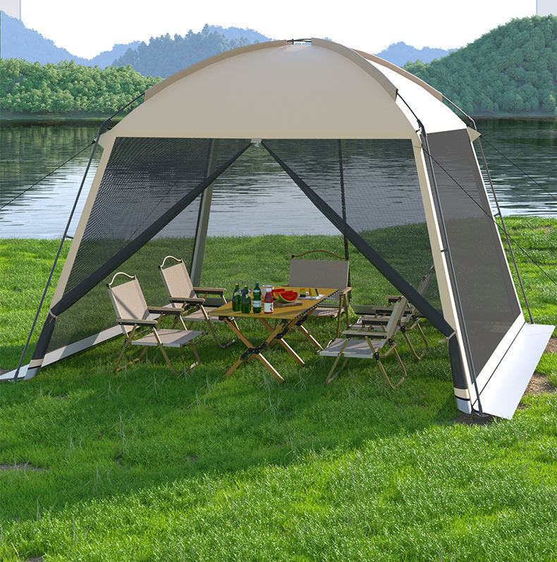 야외 캠핑 메쉬 텐트 멀티 사람 통합 바베큐 해변 캠핑 태양 보호 모기 보호 휴대용 대피소