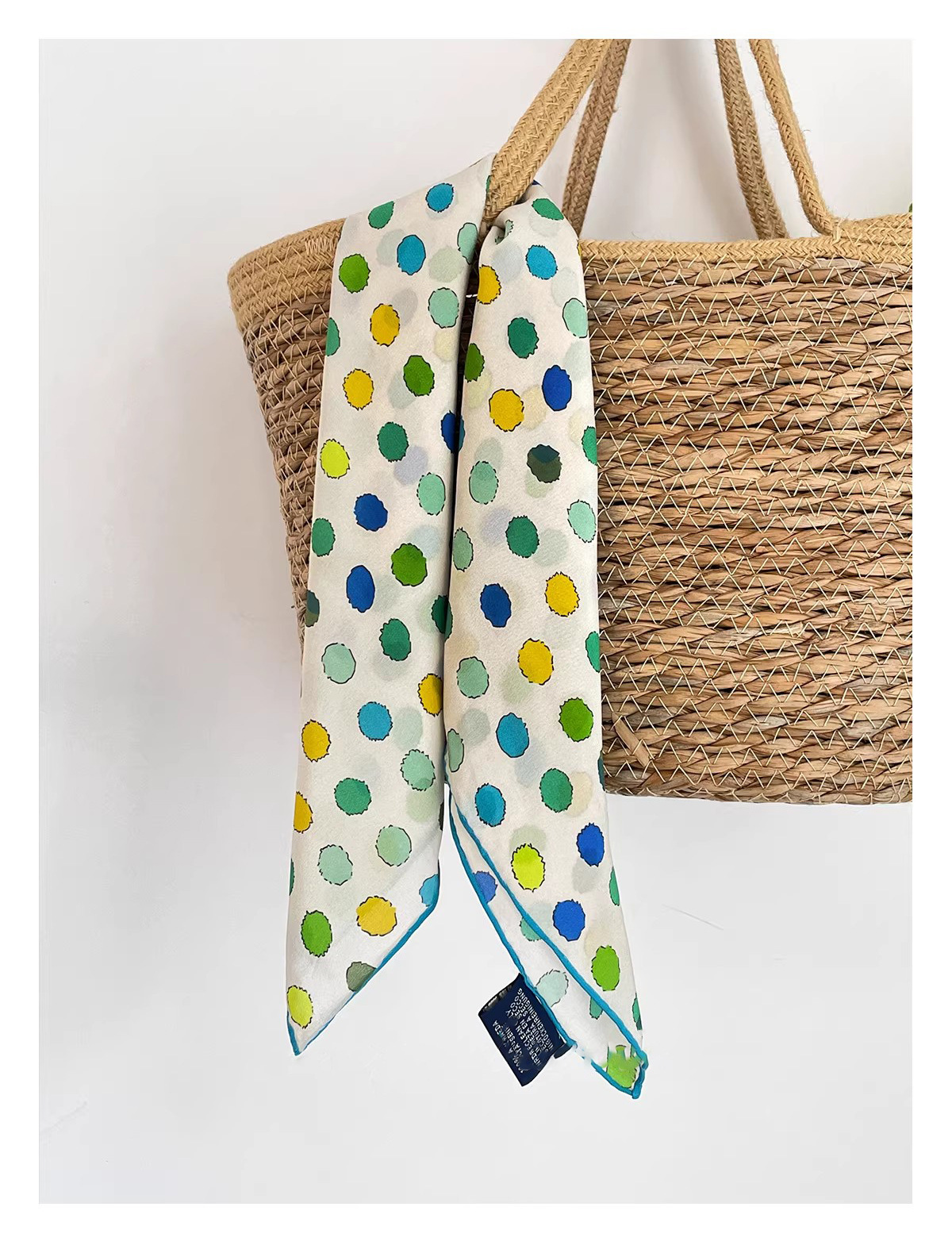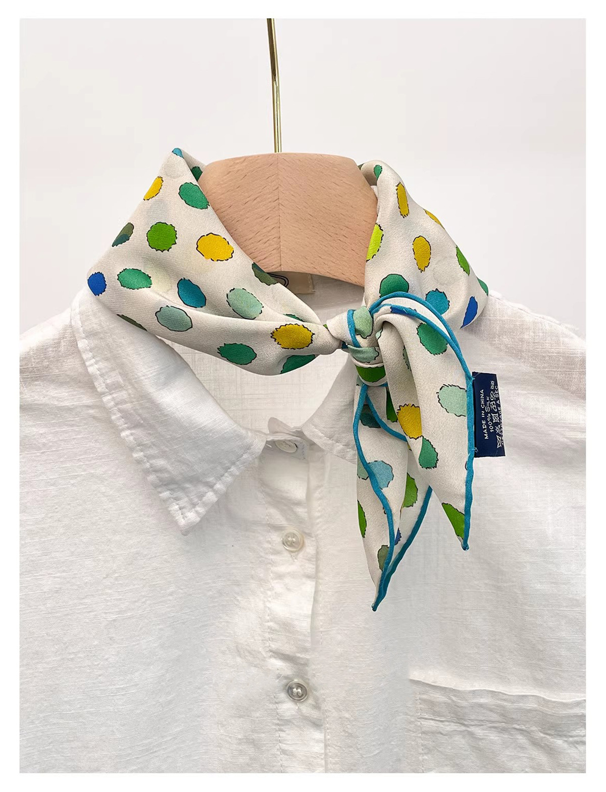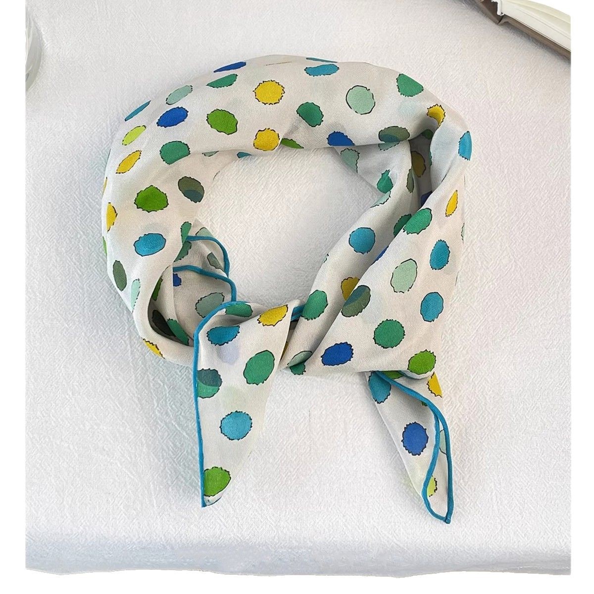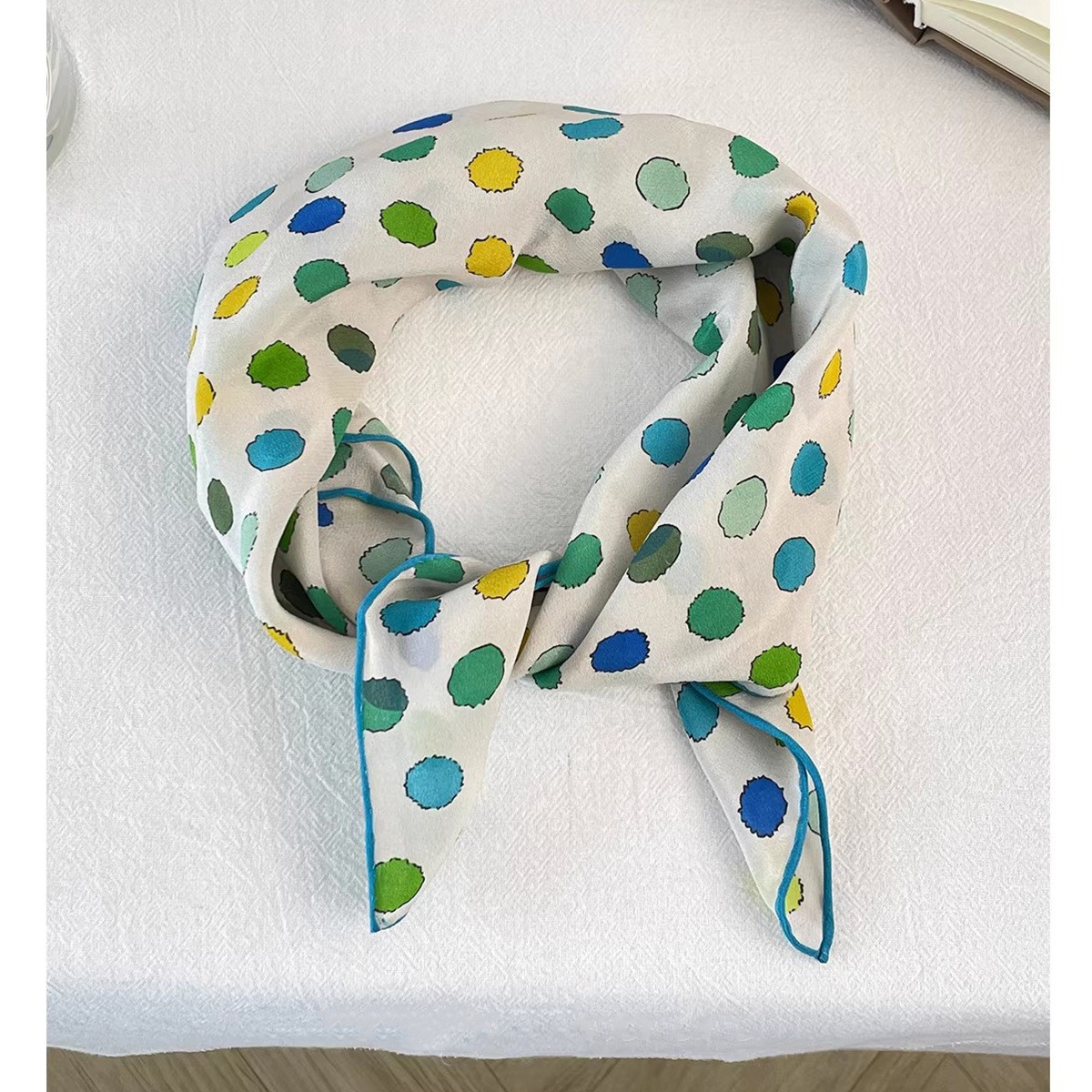 "손으로 그린 점" 일본 예술 레트로 뽕나무 실크 스카프 여름과 가을 장식 헤어 밴드 스카프 작은 신선한