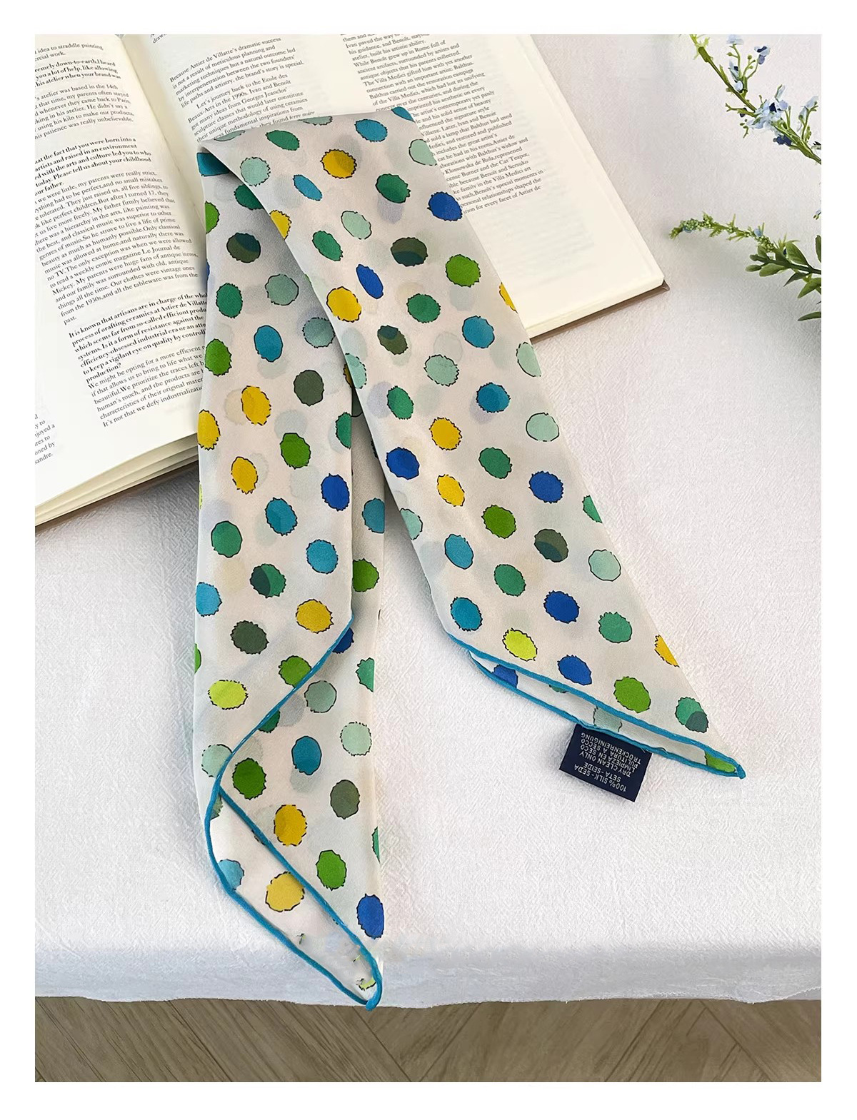 "손으로 그린 점" 일본 예술 레트로 뽕나무 실크 스카프 여름과 가을 장식 헤어 밴드 스카프 작은 신선한스토어 가기