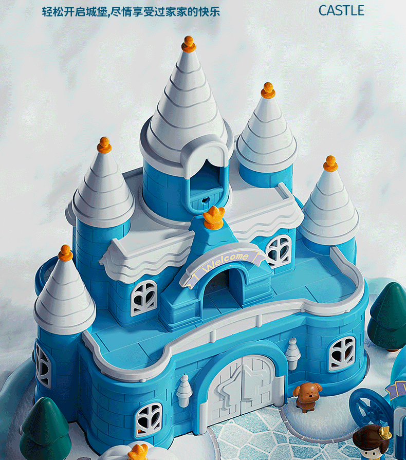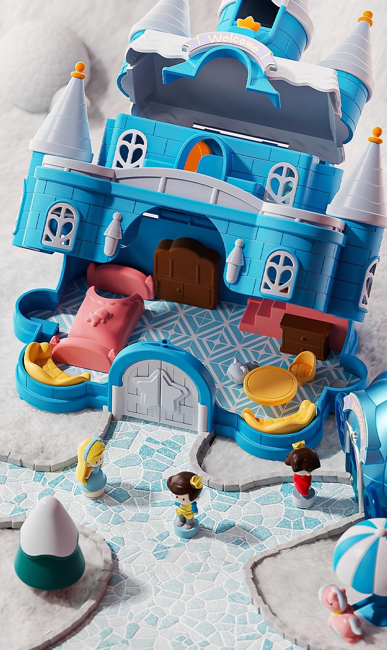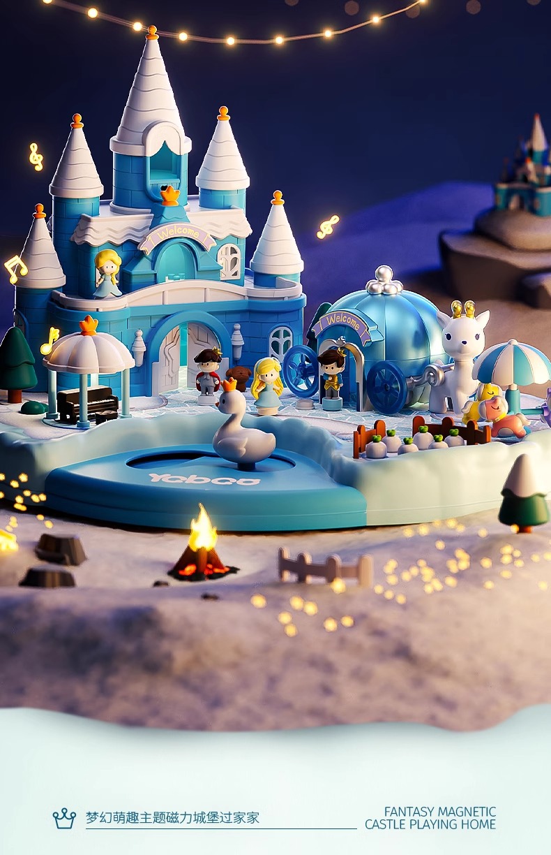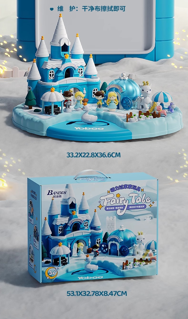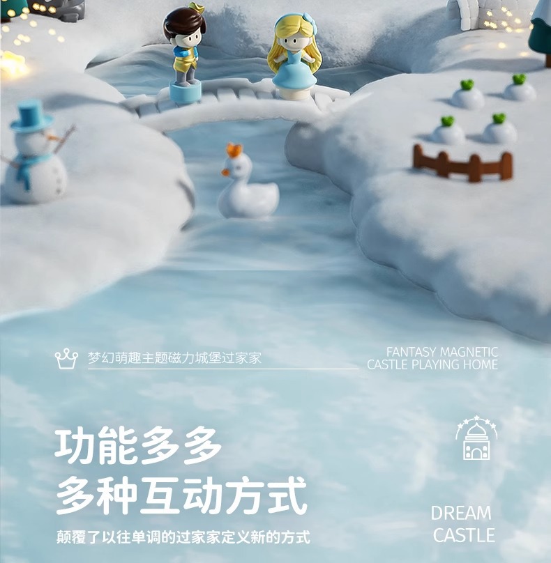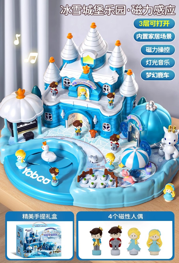 • [명품 휴대용 선물 상자] 소리와 빛의 얼음과 눈의 성 놀이터/자기 유도 [자기 인형 4개 포함]