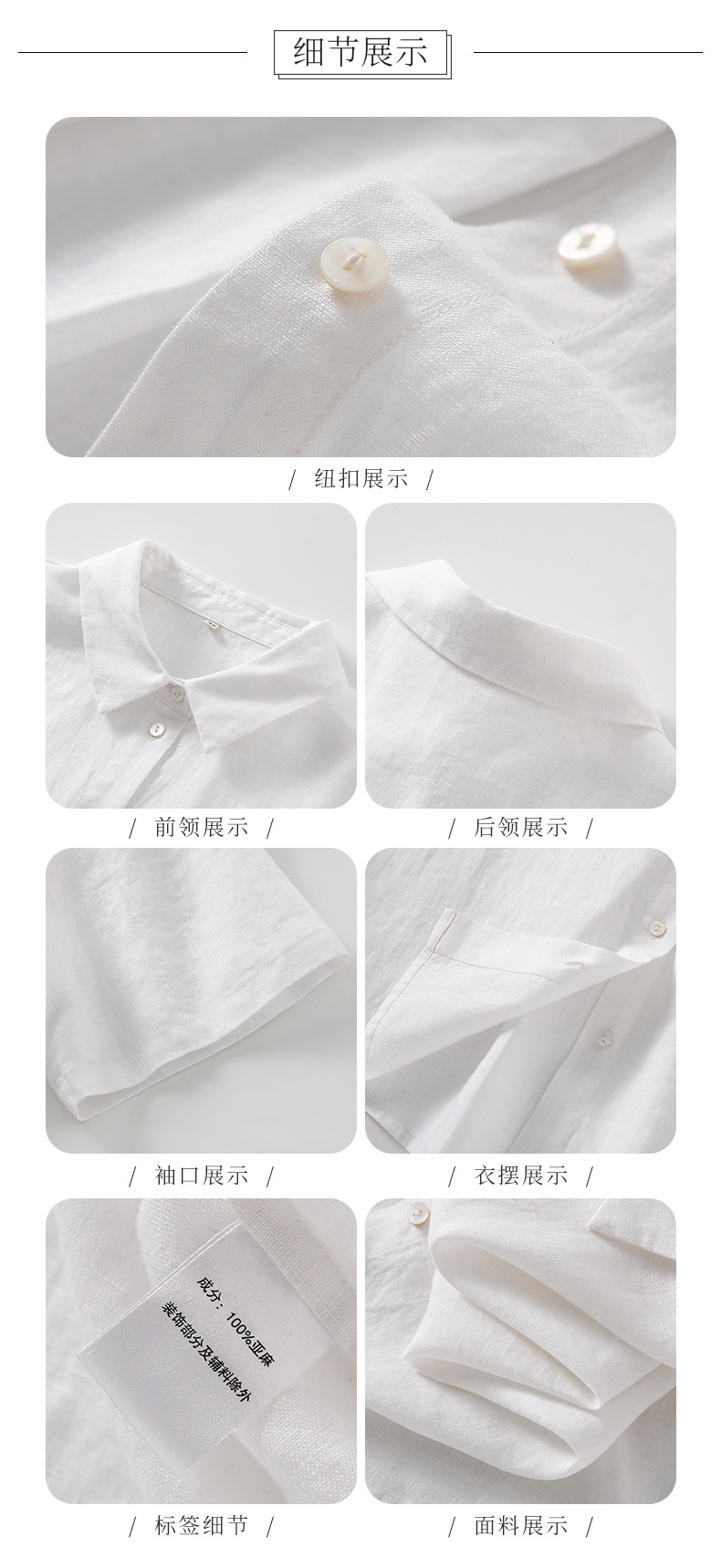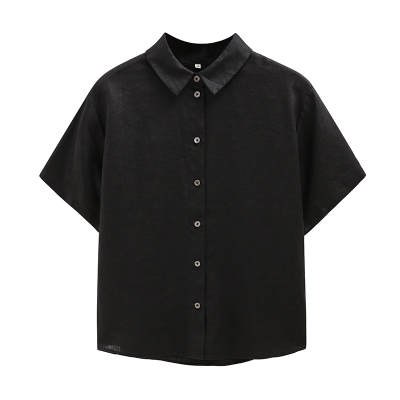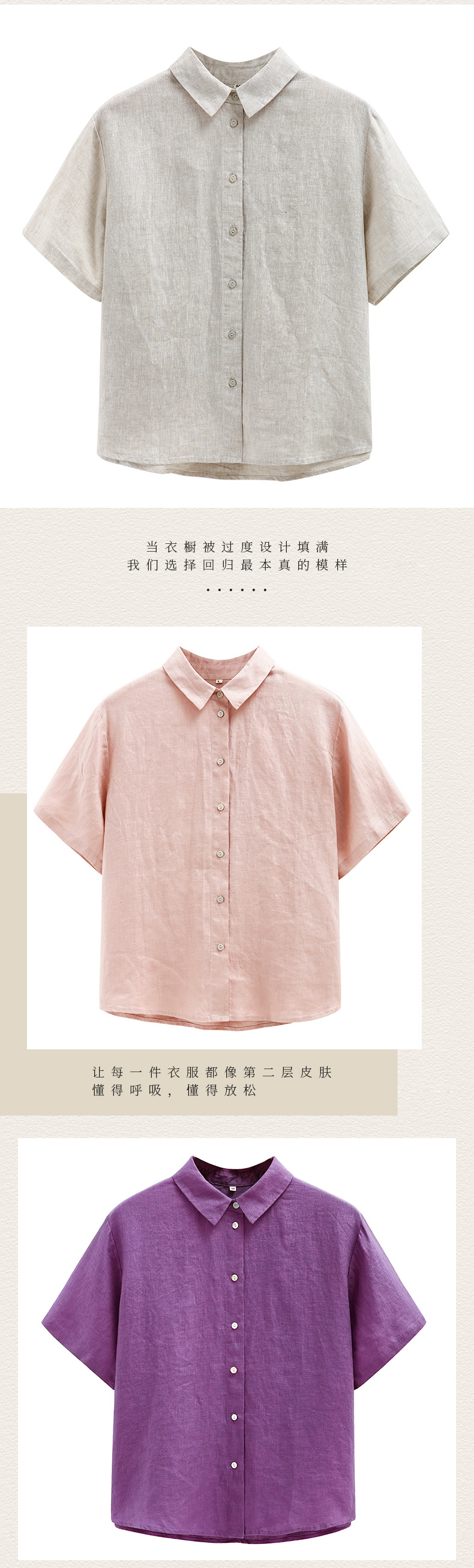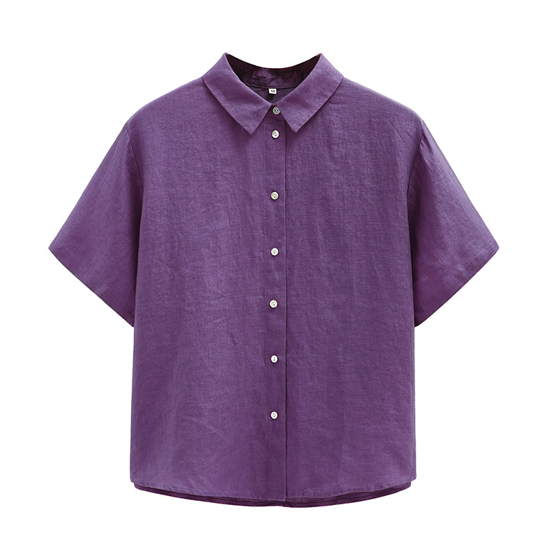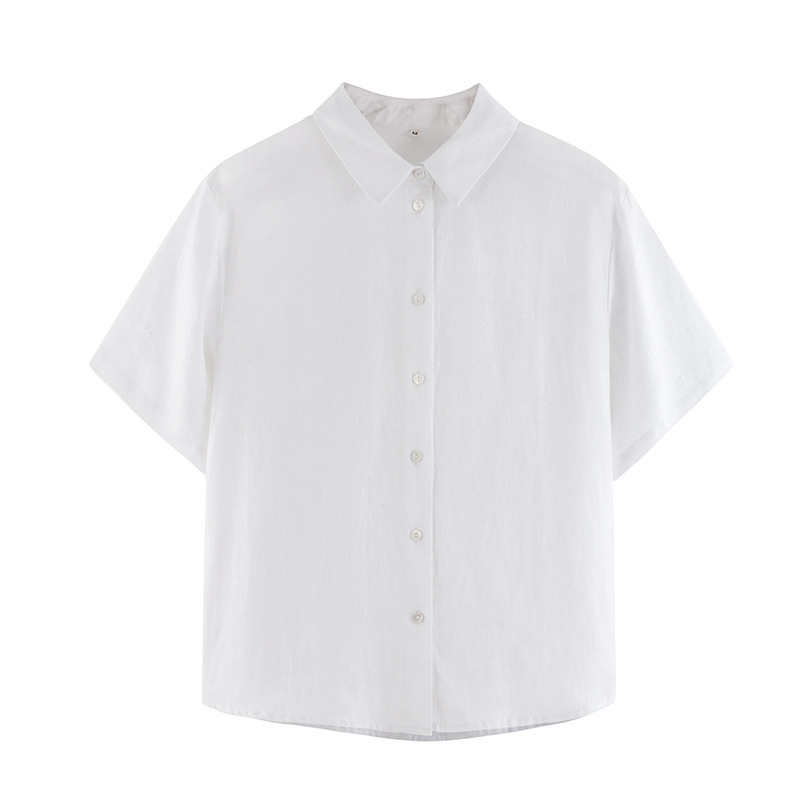 春夏新款短袖亚麻衬衫女2025宽松衬衫领夏天法国雨露麻女款上衣