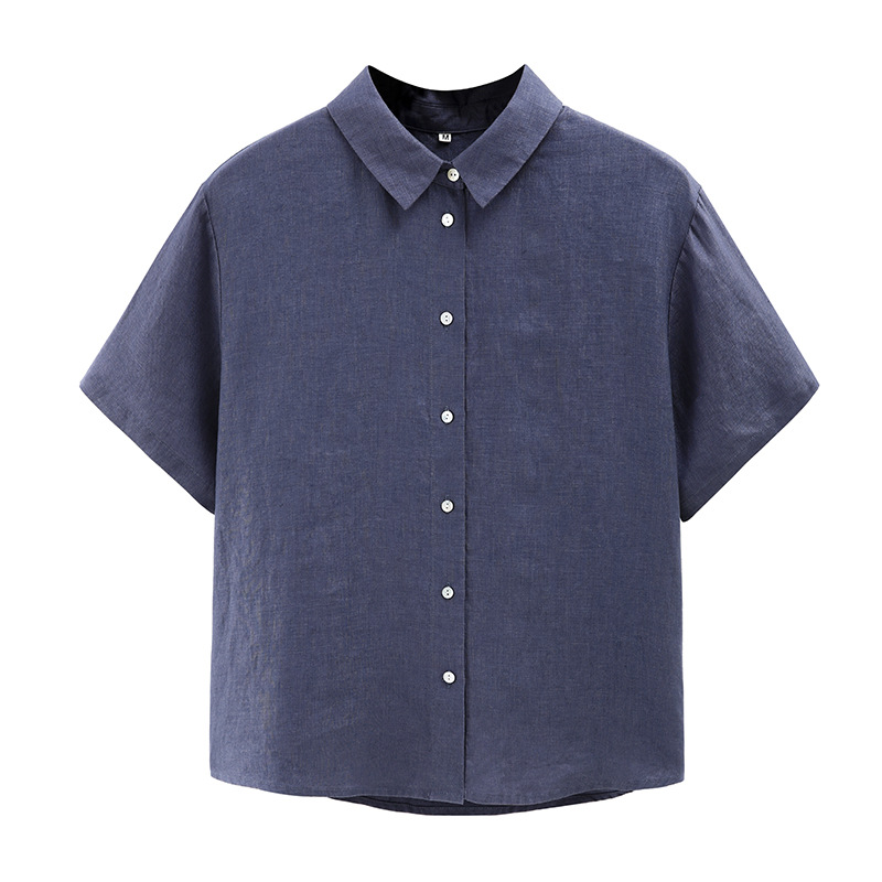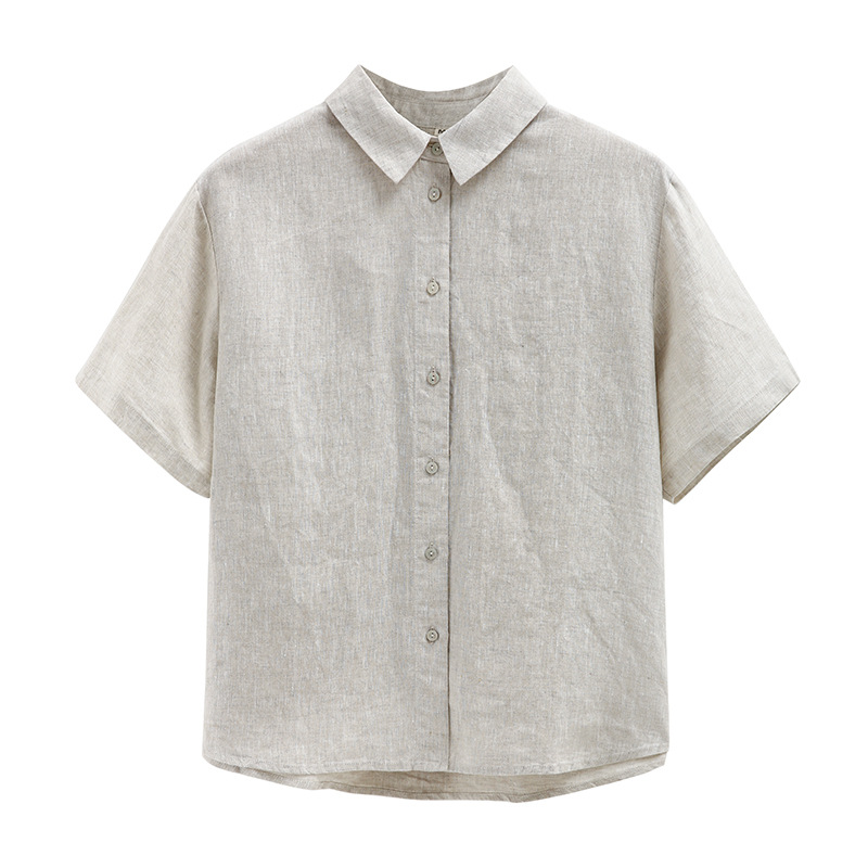 봄 여름 신상 여성용 반팔 린넨 셔츠 2026 루즈핏 셔츠 칼라 여름 프랑스 레인듀 린넨 여성용 상의