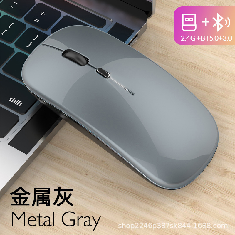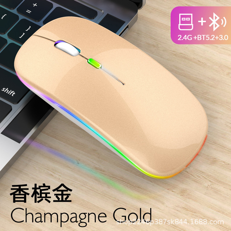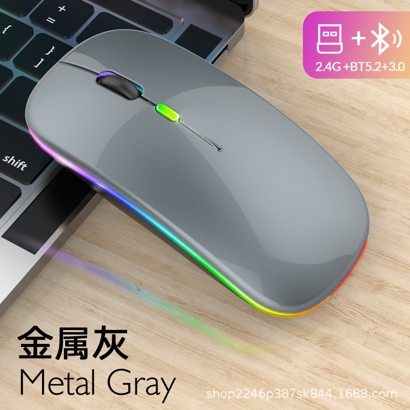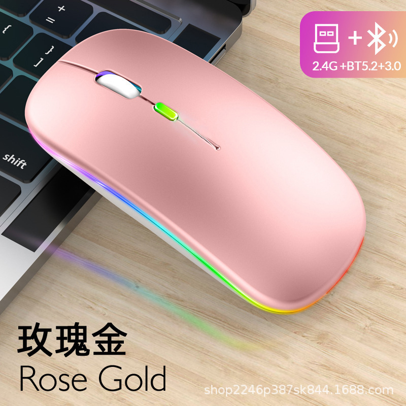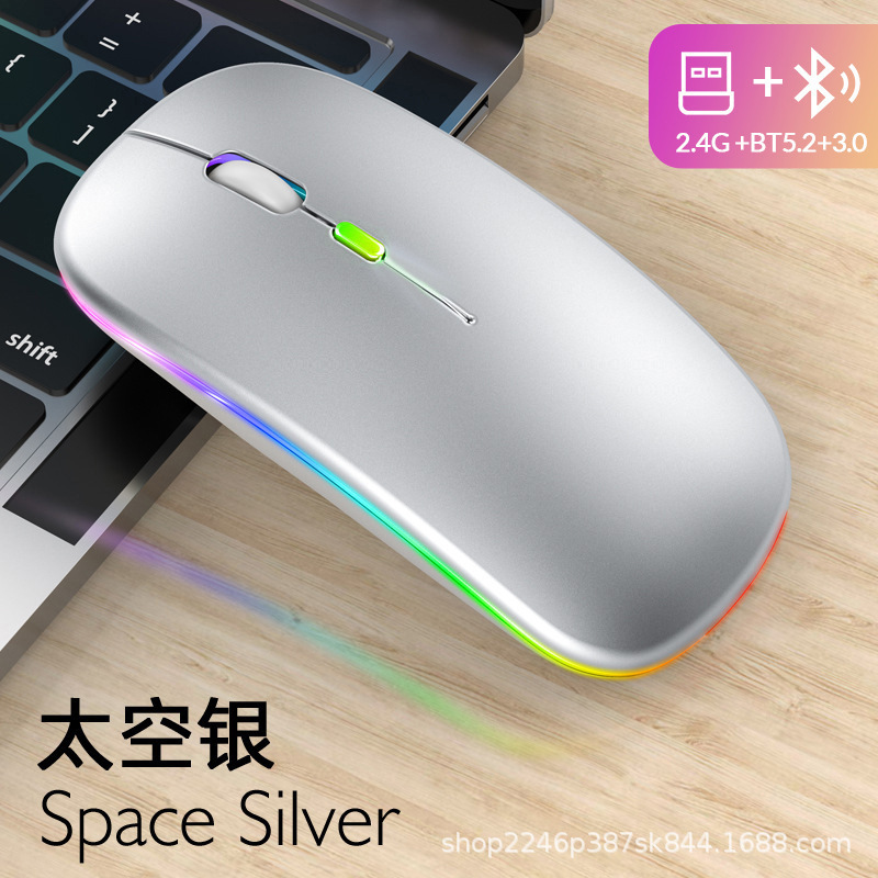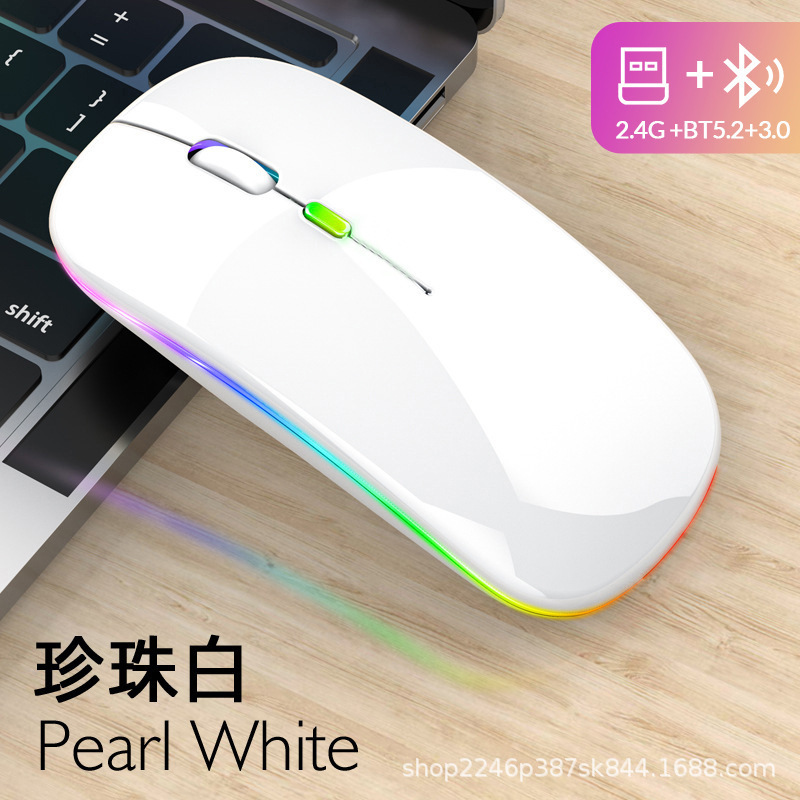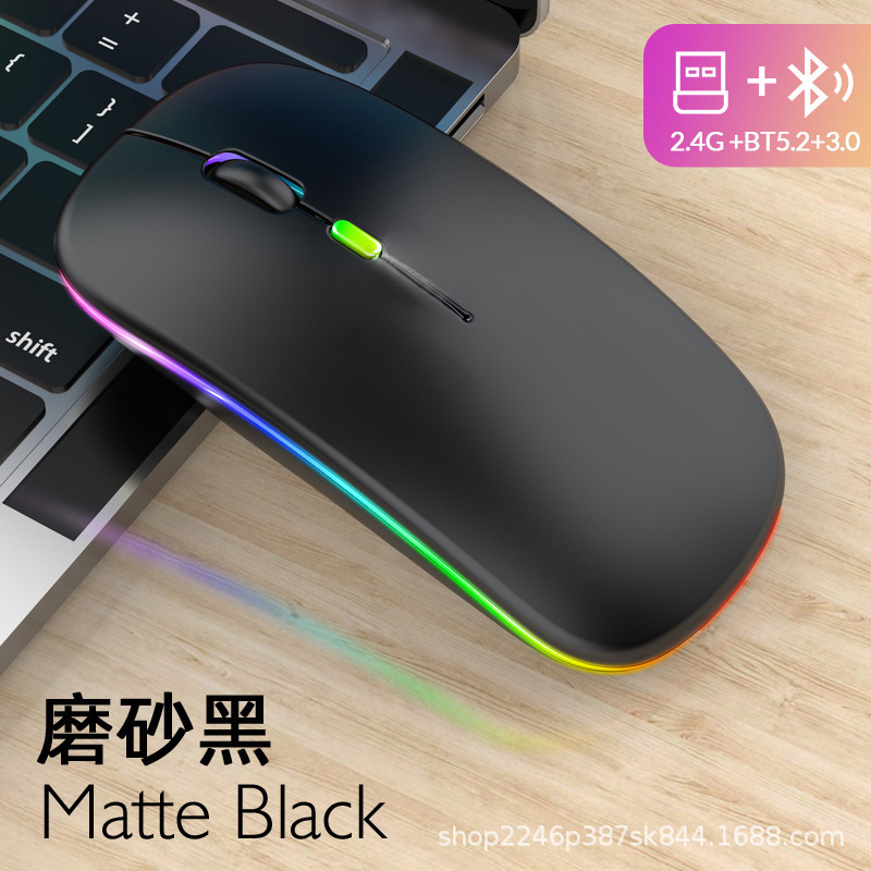 애플 및 화웨이 듀얼 모드 무선 블루투스 마우스에 적합, 7색 조명 충전식, 비즈니스 사무용 인체공학적 디자인