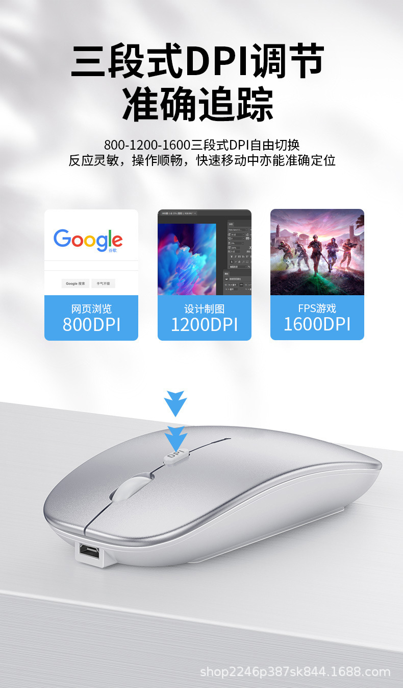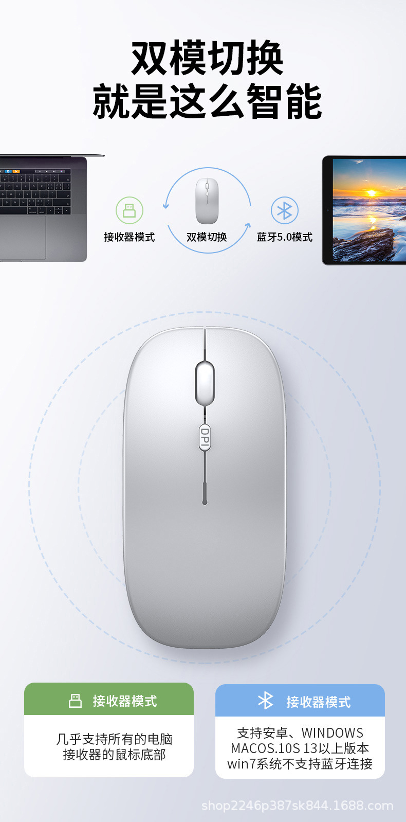애플 및 화웨이 듀얼 모드 무선 블루투스 마우스에 적합, 7색 조명 충전식, 비즈니스 사무용 인체공학적 디자인스토어 가기