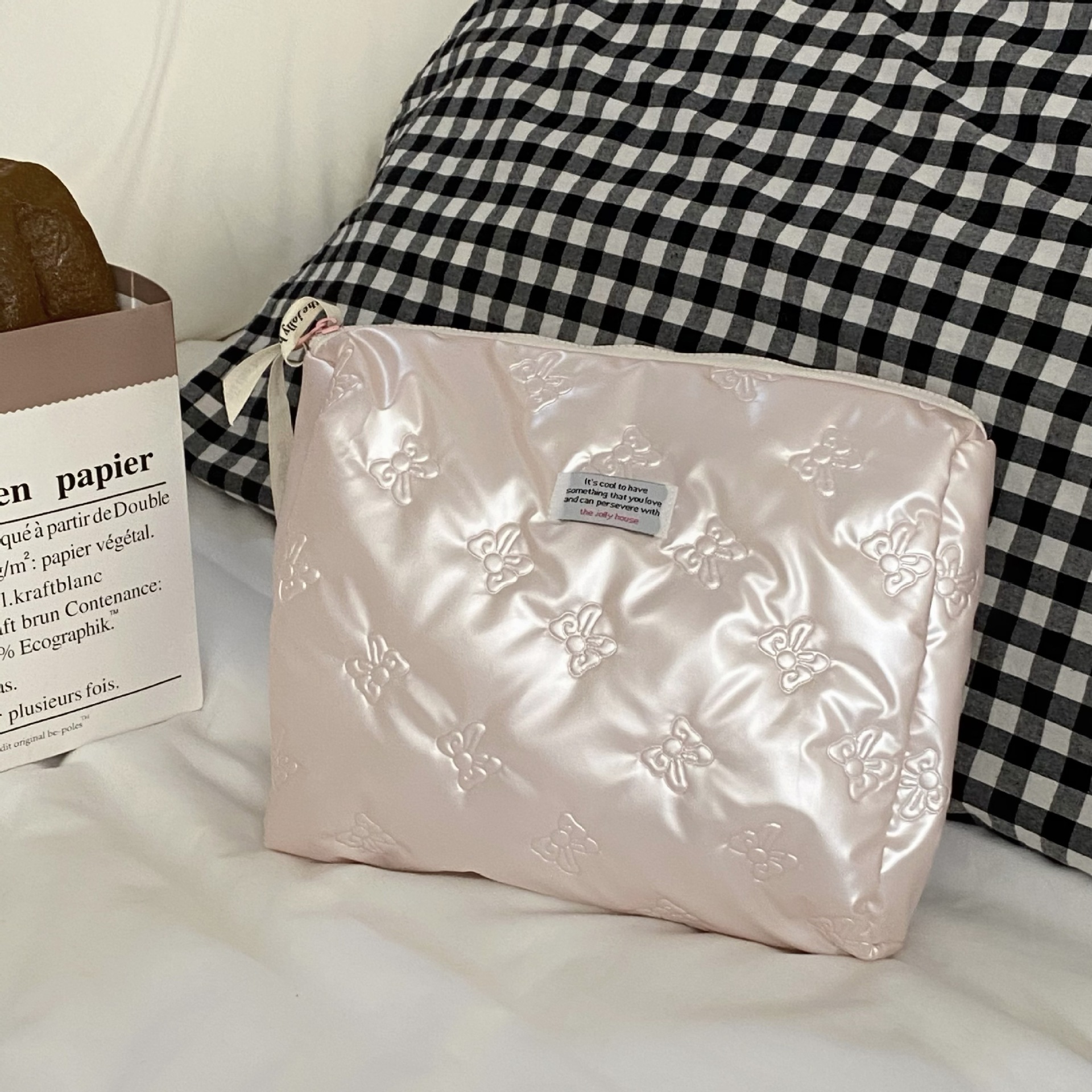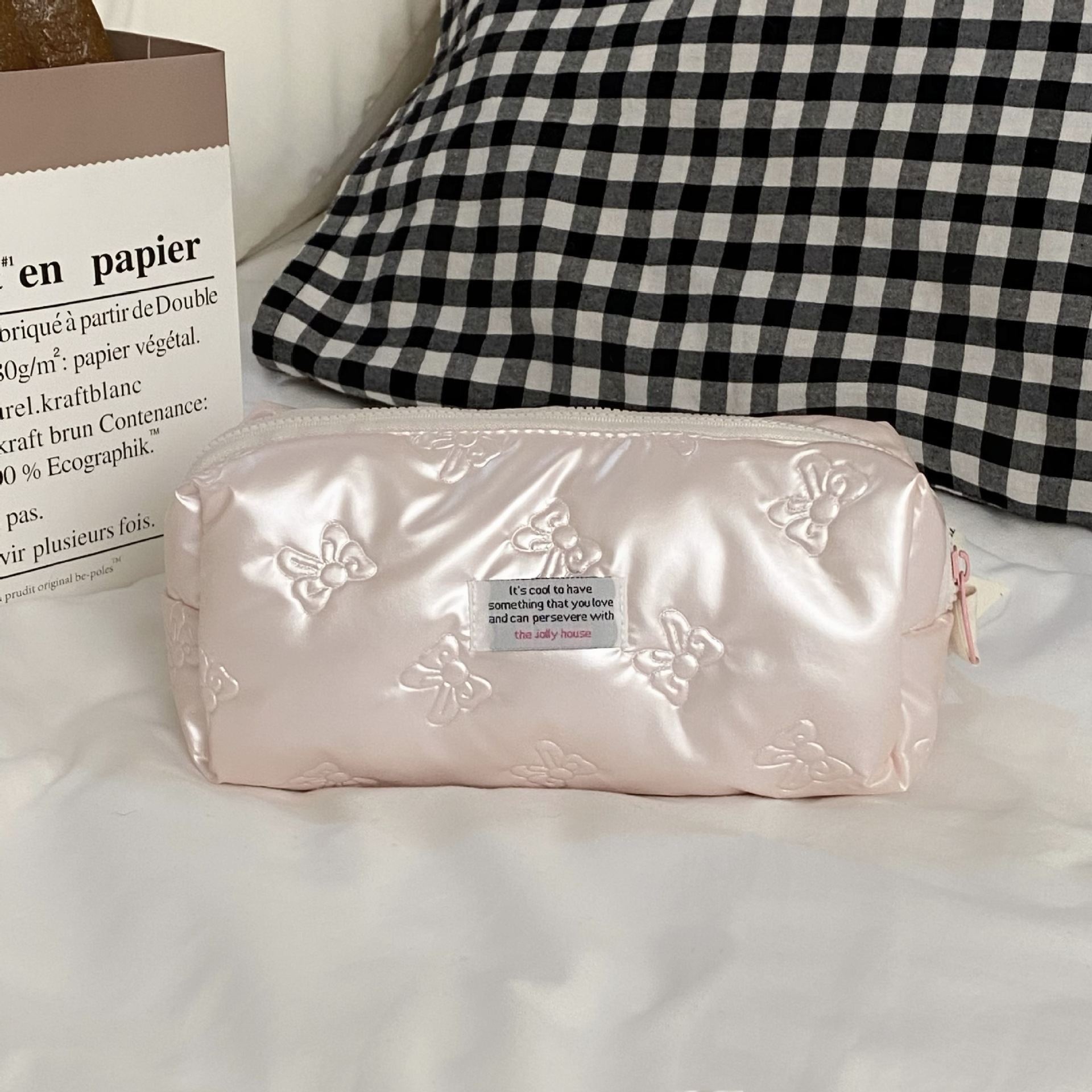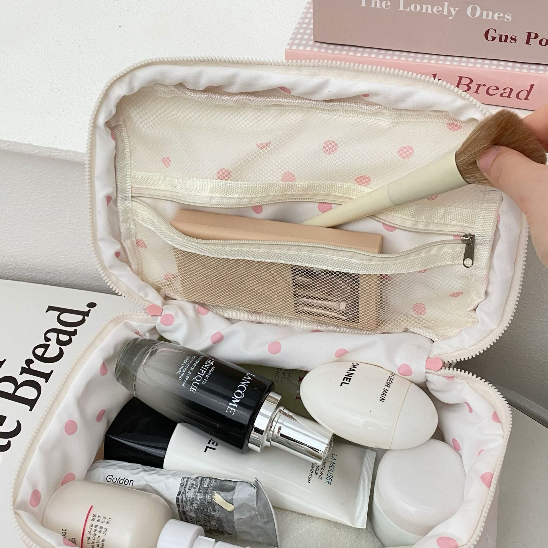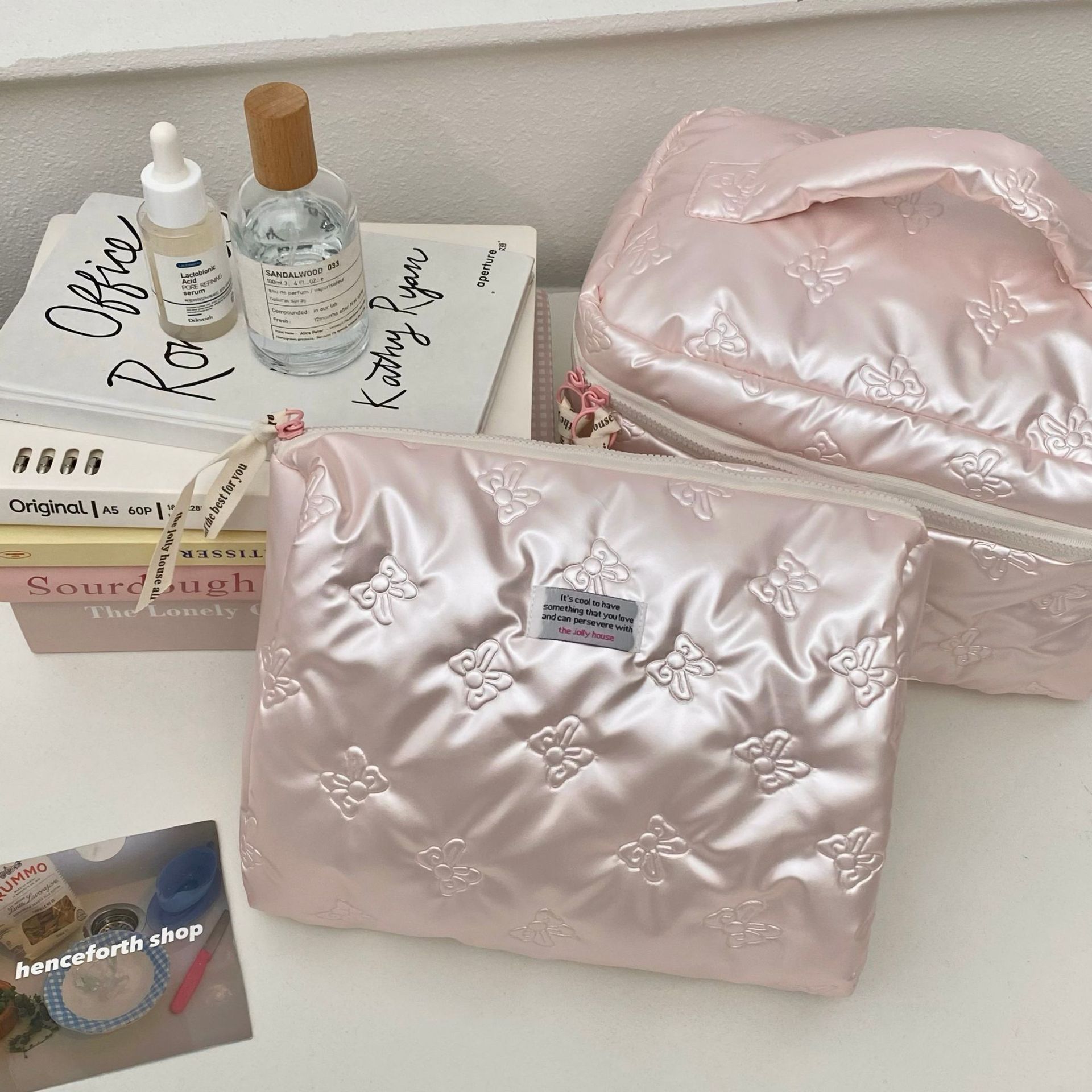 미모가 좋은 소녀들을 위한 대용량 화장품 가방, 리본 장식 화장품 수납 가방, 여성용 휴대용 외출용 세면도구 가방스토어 가기