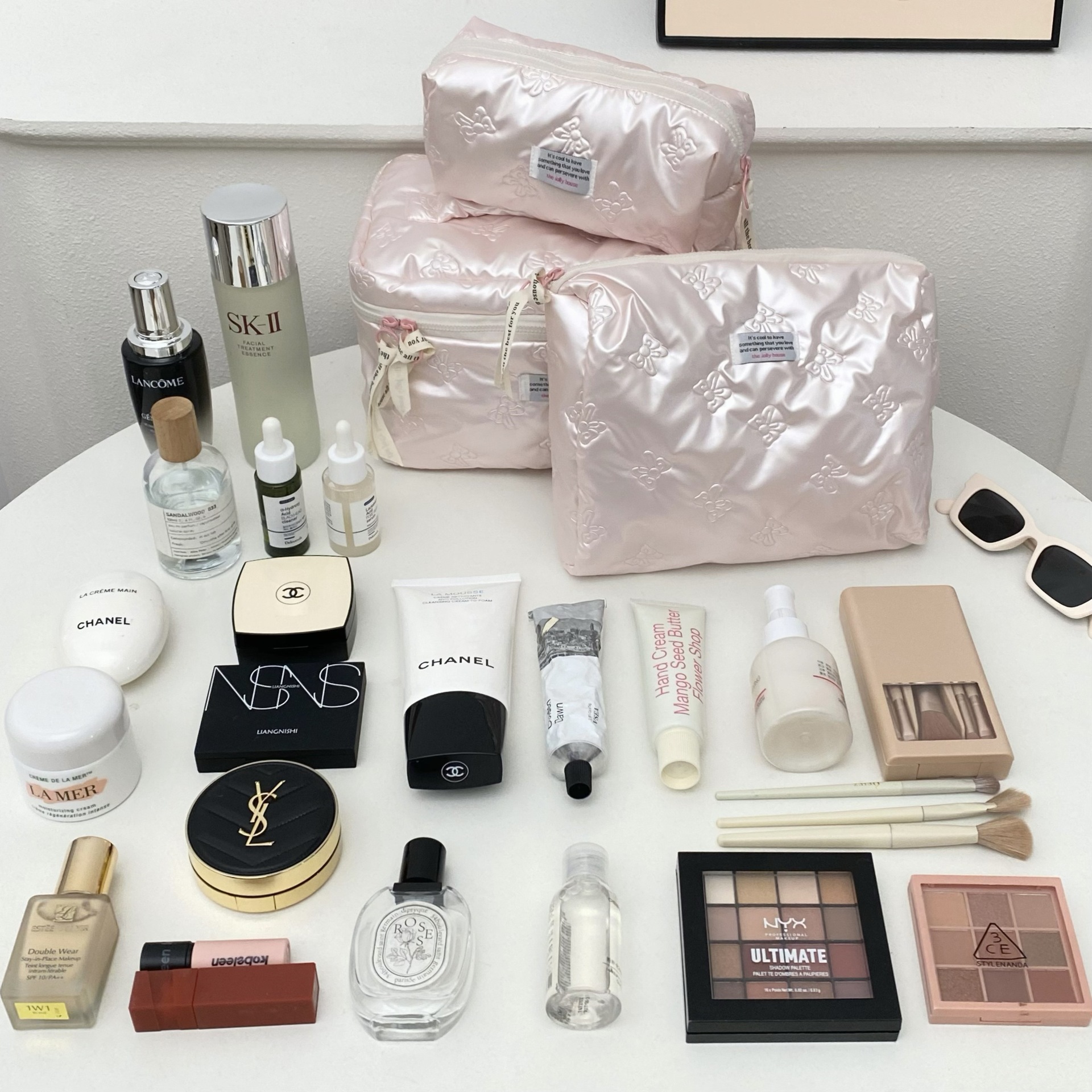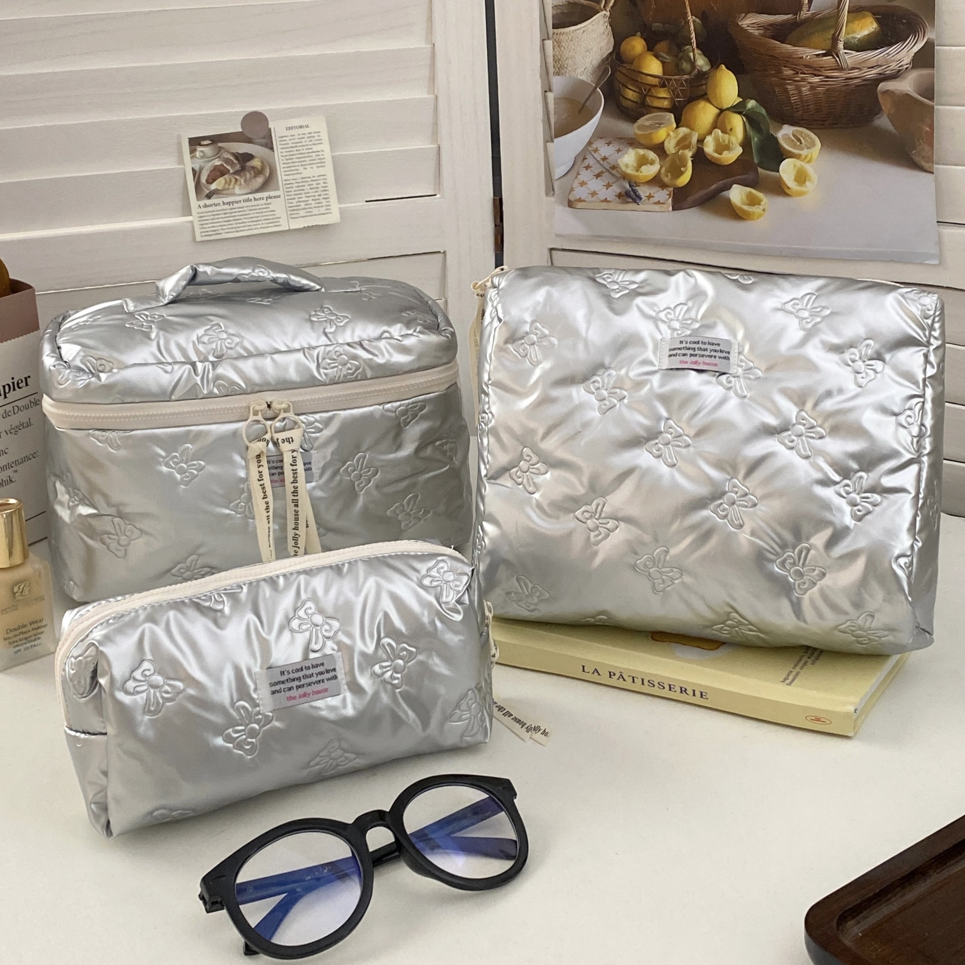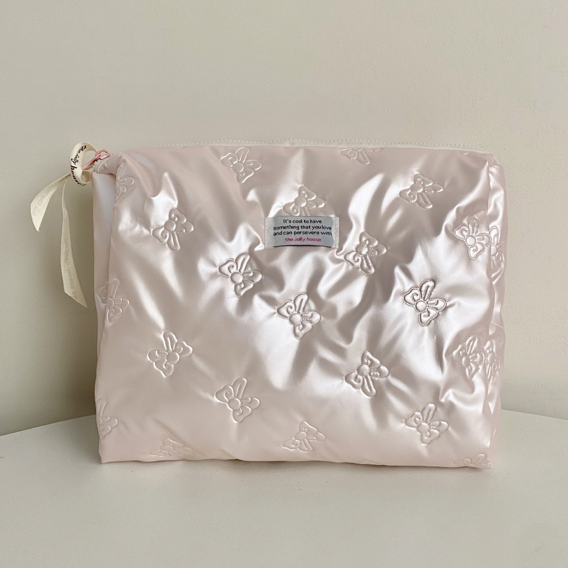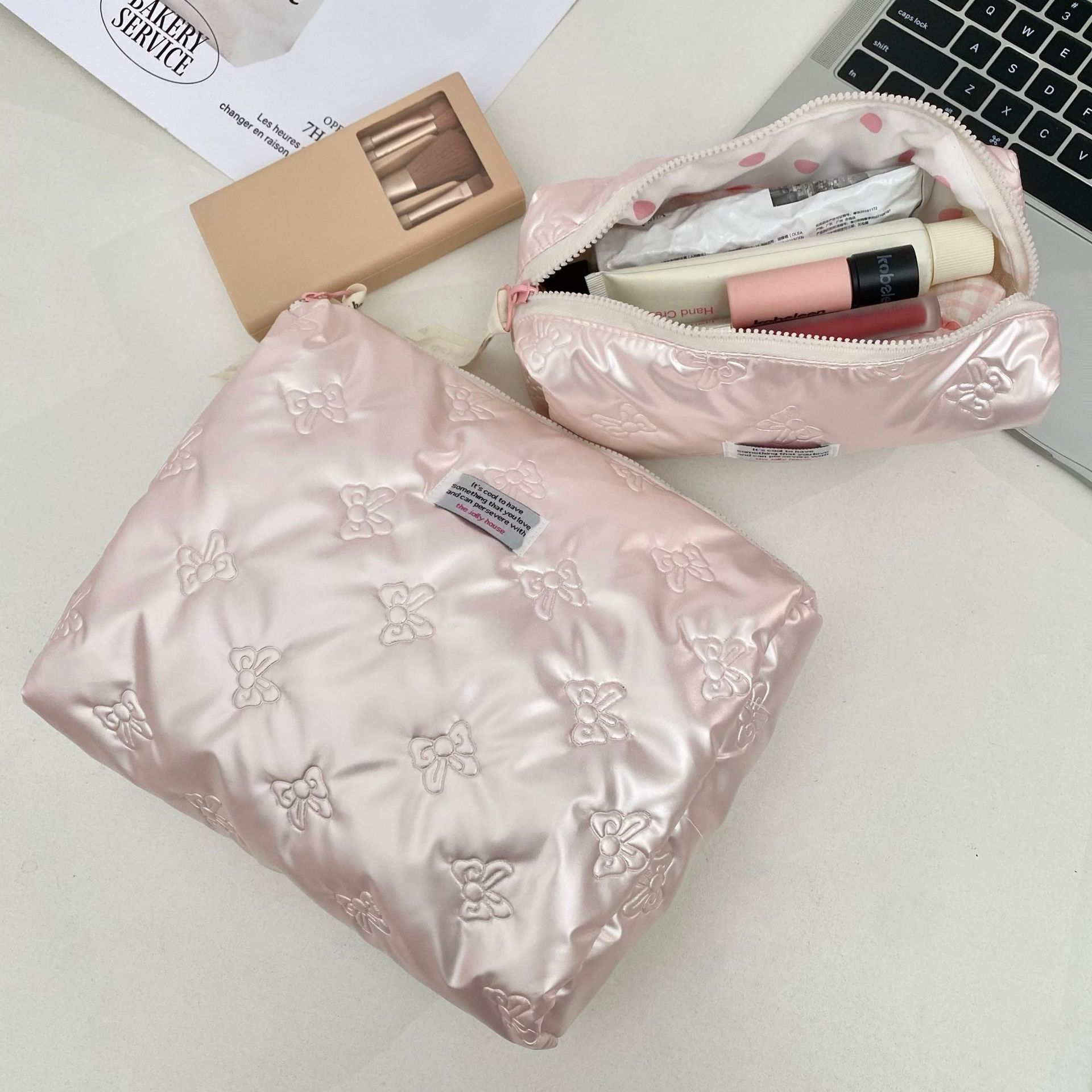 미모가 좋은 소녀들을 위한 대용량 화장품 가방, 리본 장식 화장품 수납 가방, 여성용 휴대용 외출용 세면도구 가방