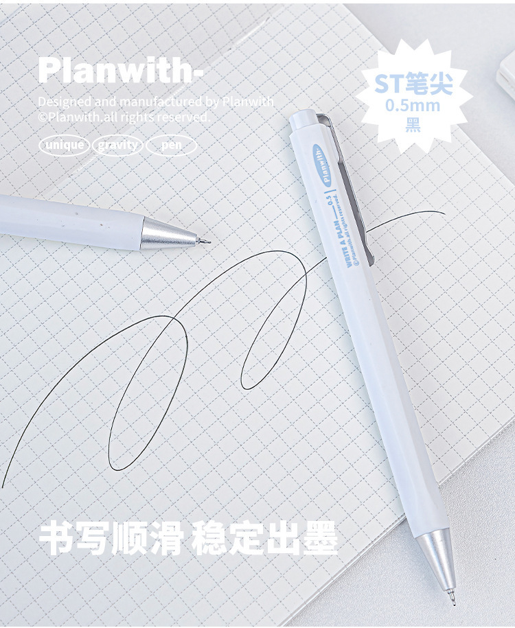 Planwith 헤비메탈 젤펜 미니멀리스트 고가치 0.5 프레스 브러쉬 펜 학생 시험용 검정색 펜