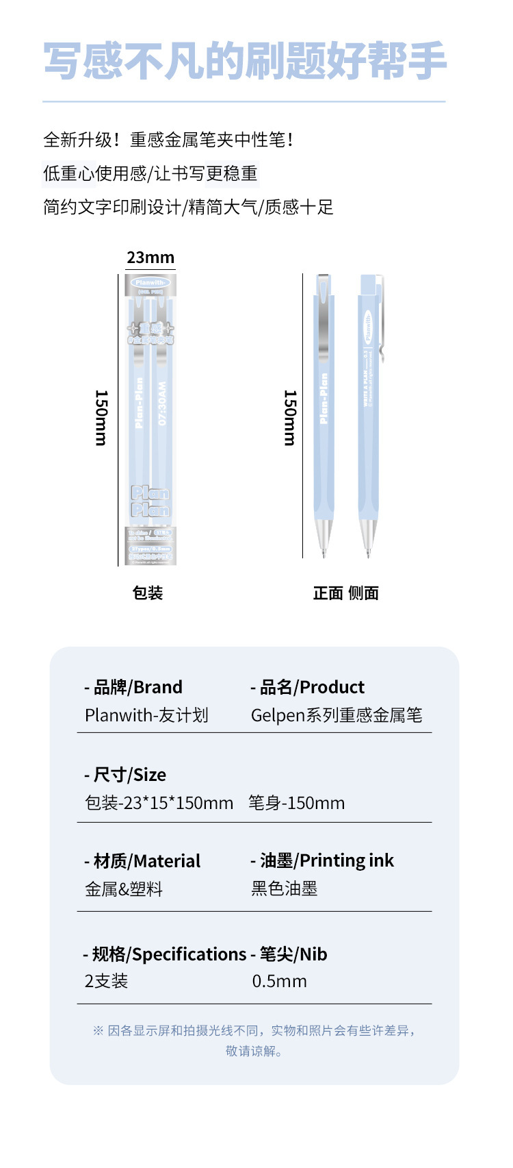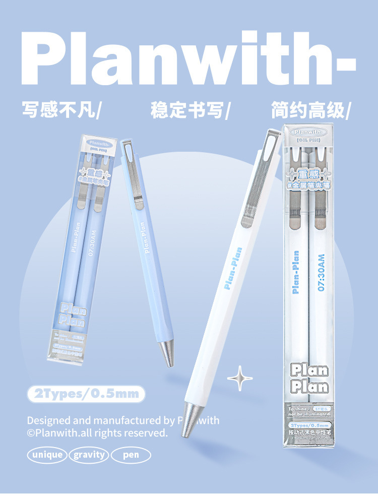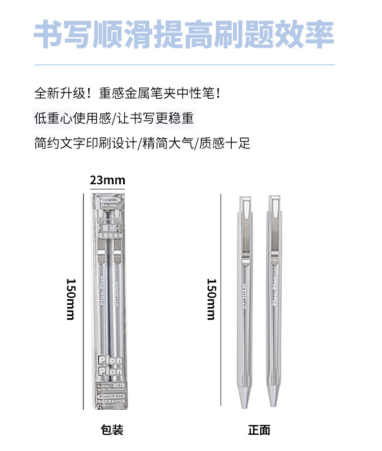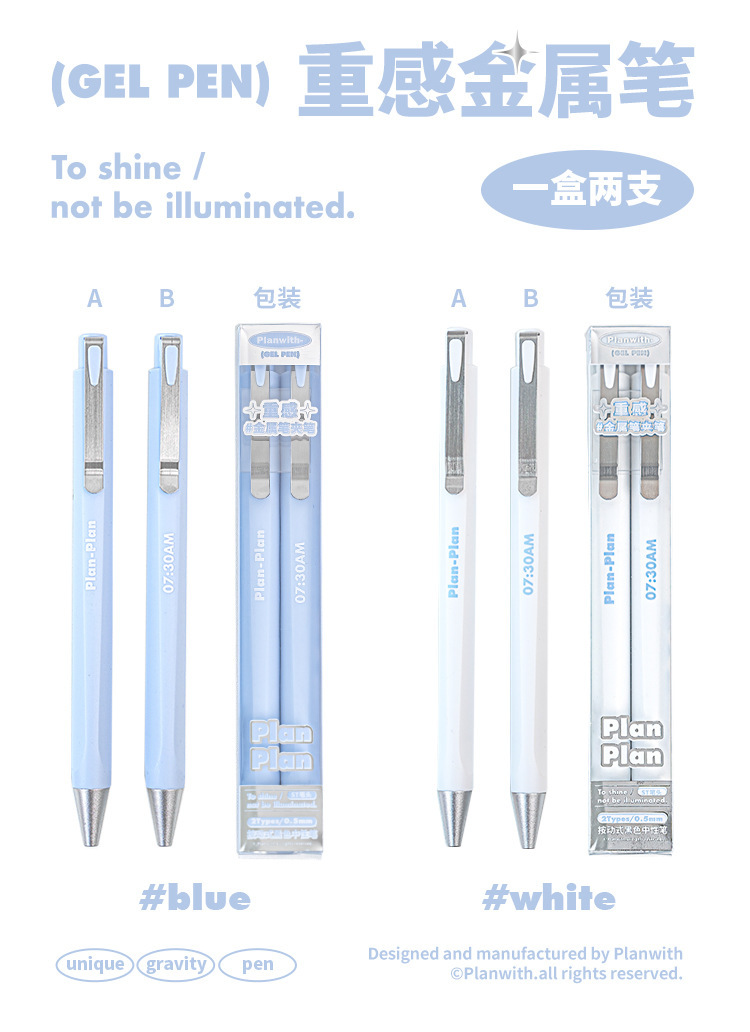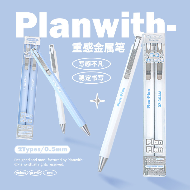 Planwith 헤비메탈 젤펜 미니멀리스트 고가치 0.5 프레스 브러쉬 펜 학생 시험용 검정색 펜스토어 가기