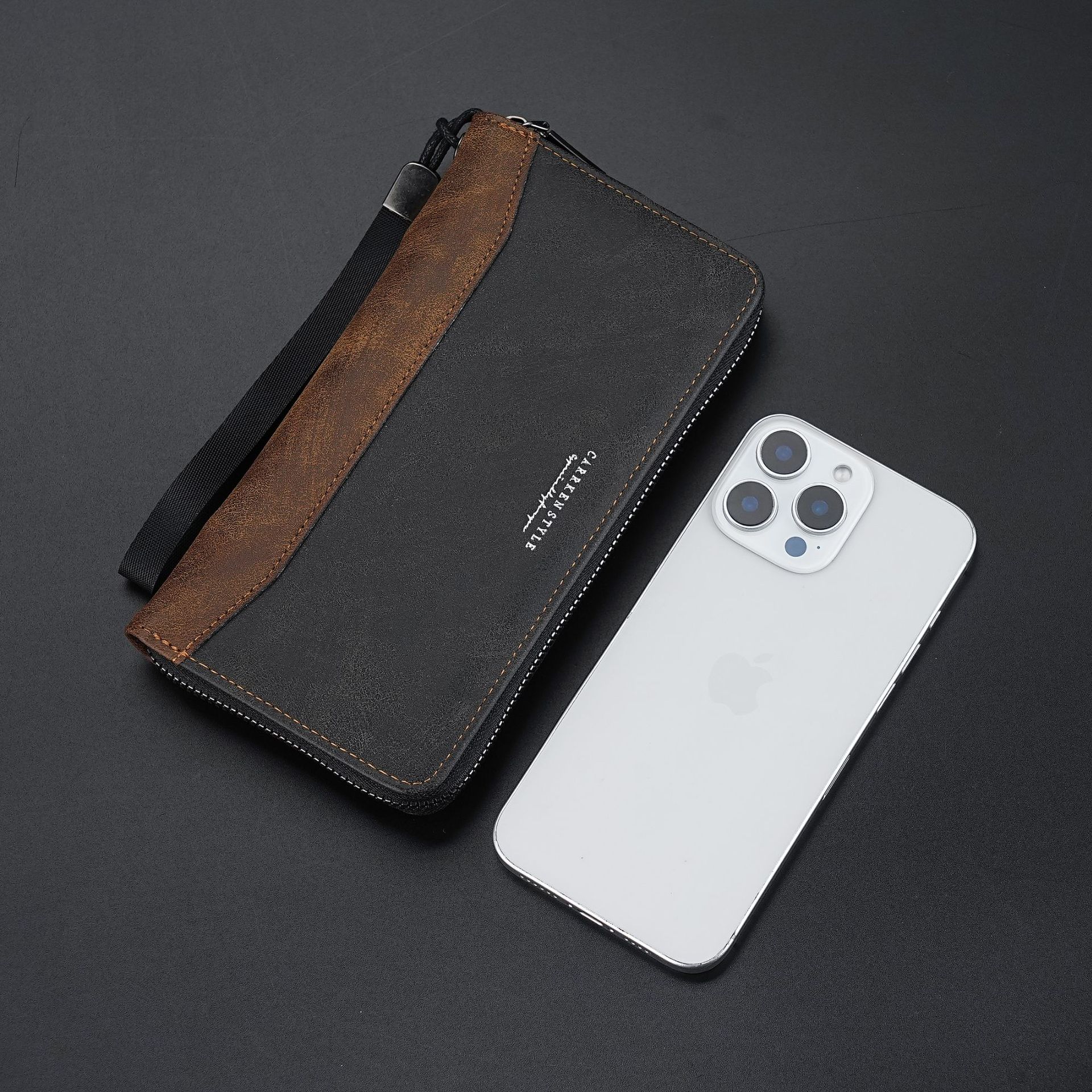새로운 남성의 긴 손목 밴드 클러치 백 유행 대용량 멀티 카드 기능 ID 가방 카드 가방 지퍼스토어 가기