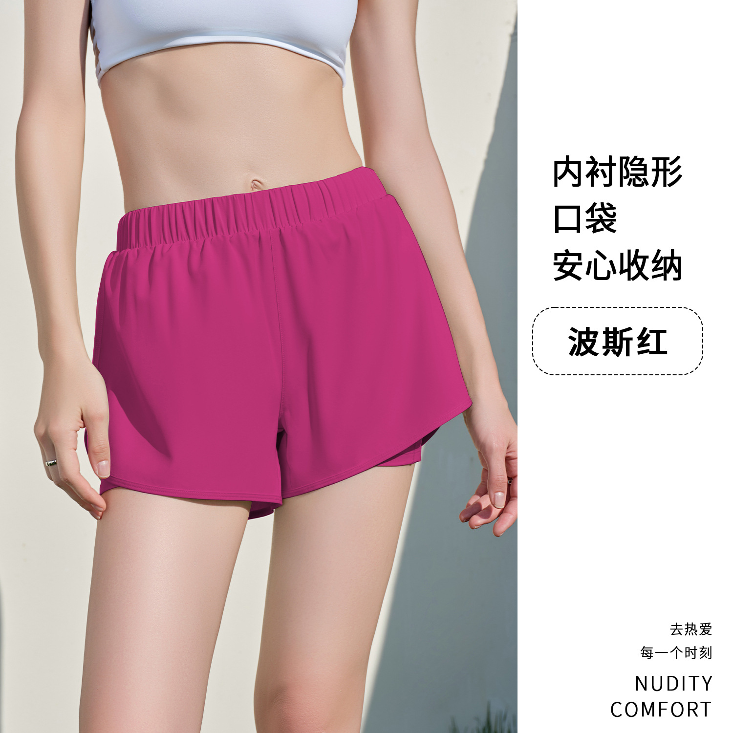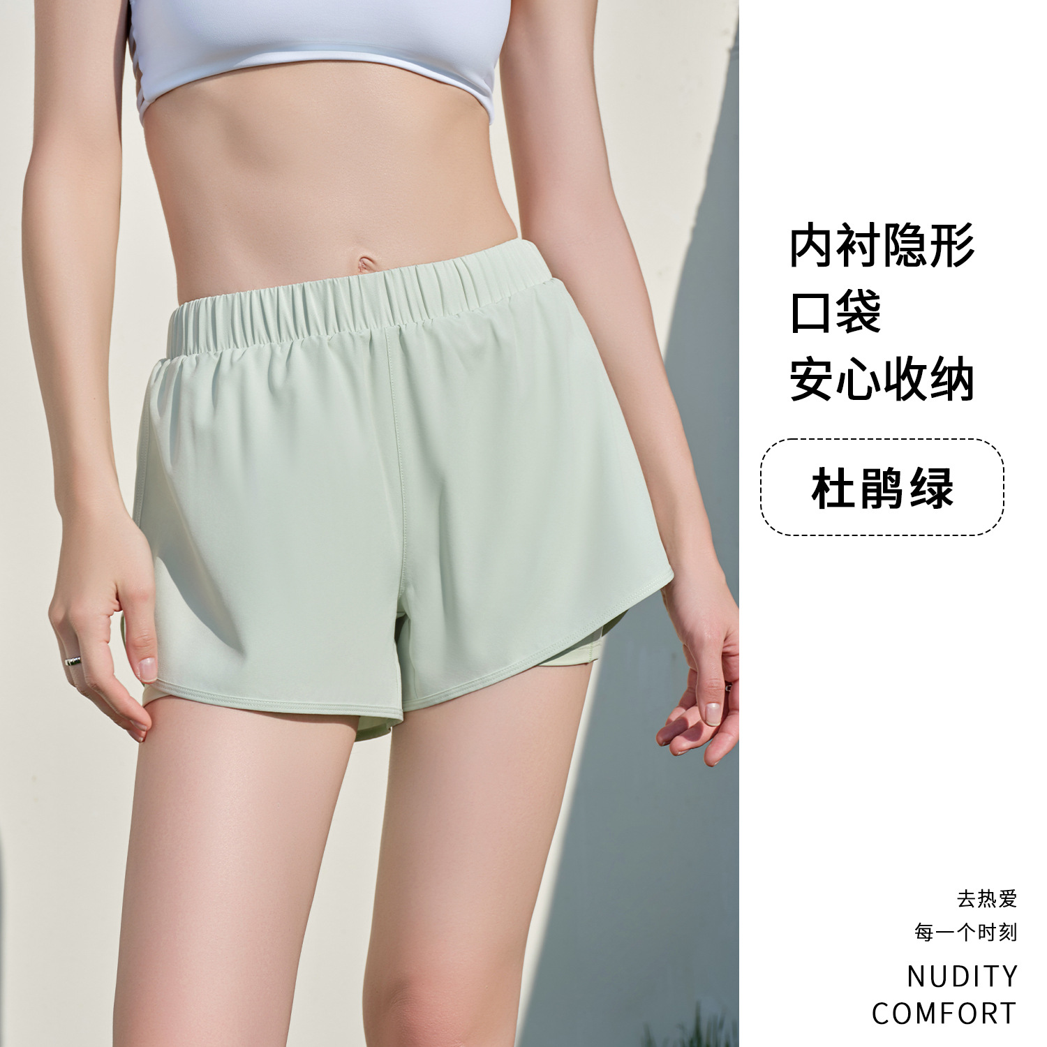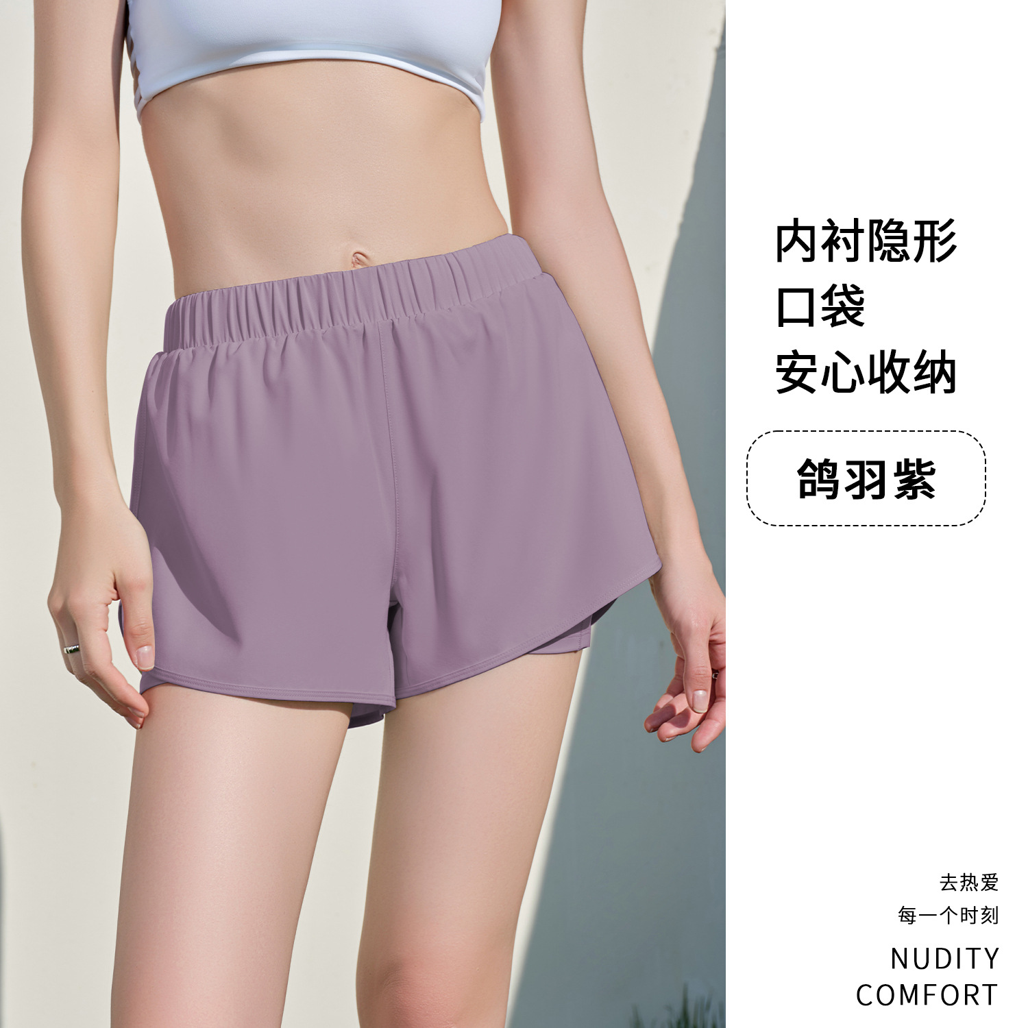 시원한 가짜 투피스 러닝 반바지 여성용 안티 라이트 3 점 바지 포켓 휴대 전화 피트니스 요가 반바지 여름스토어 가기
