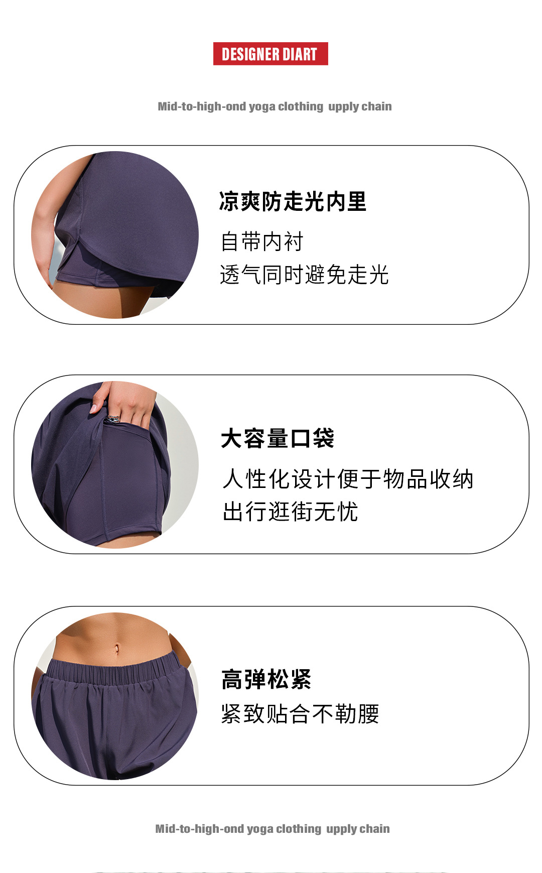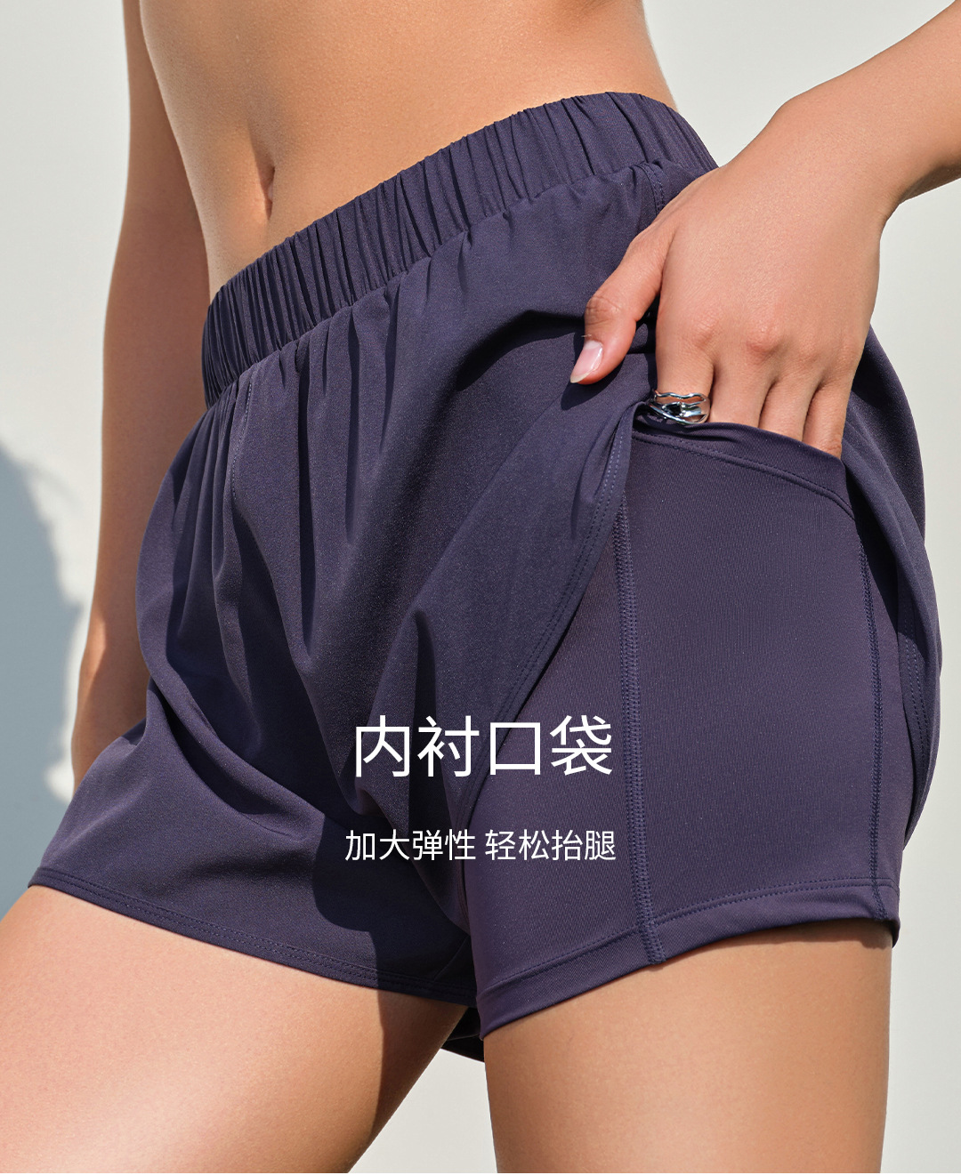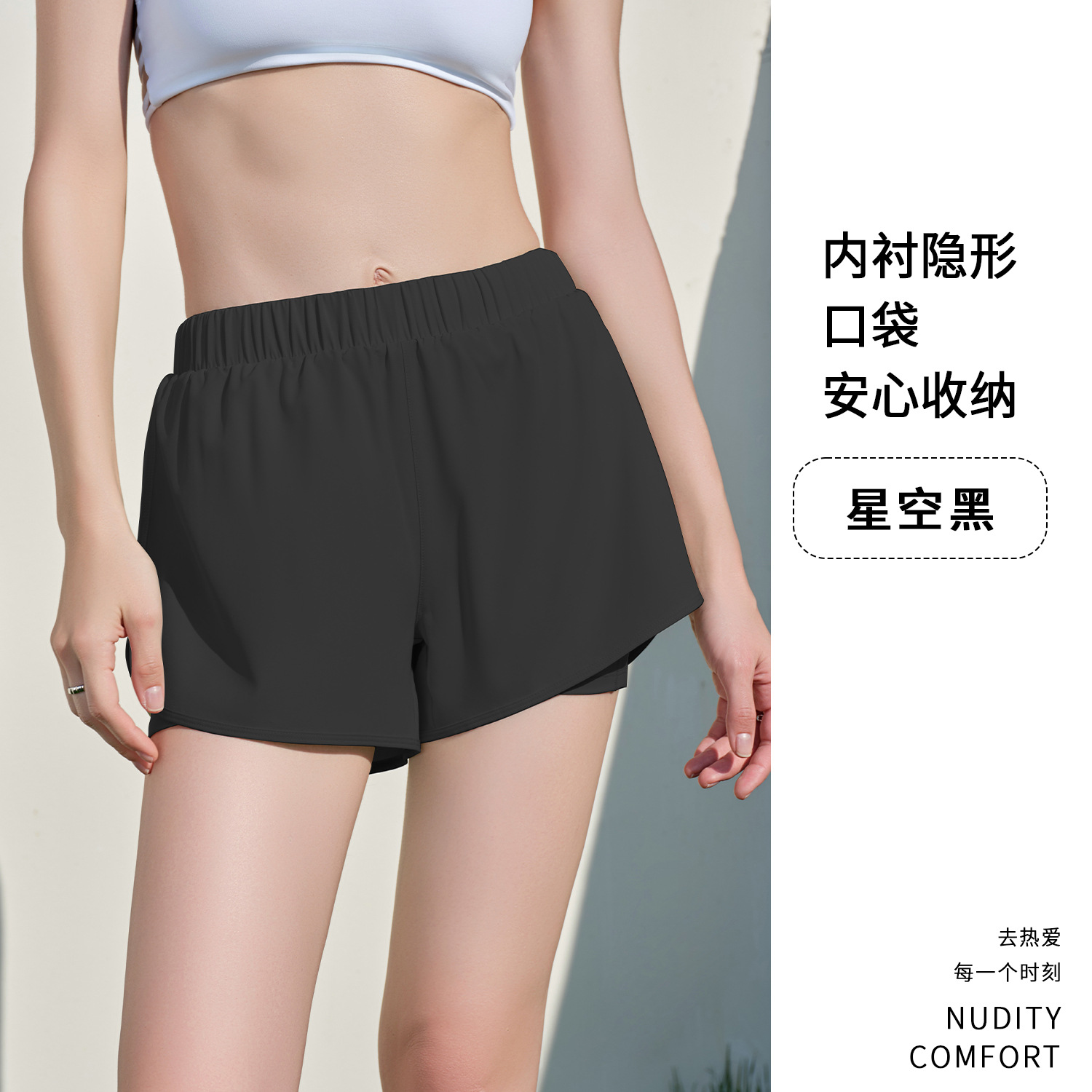 시원한 가짜 투피스 러닝 반바지 여성용 안티 라이트 3 점 바지 포켓 휴대 전화 피트니스 요가 반바지 여름스토어 가기