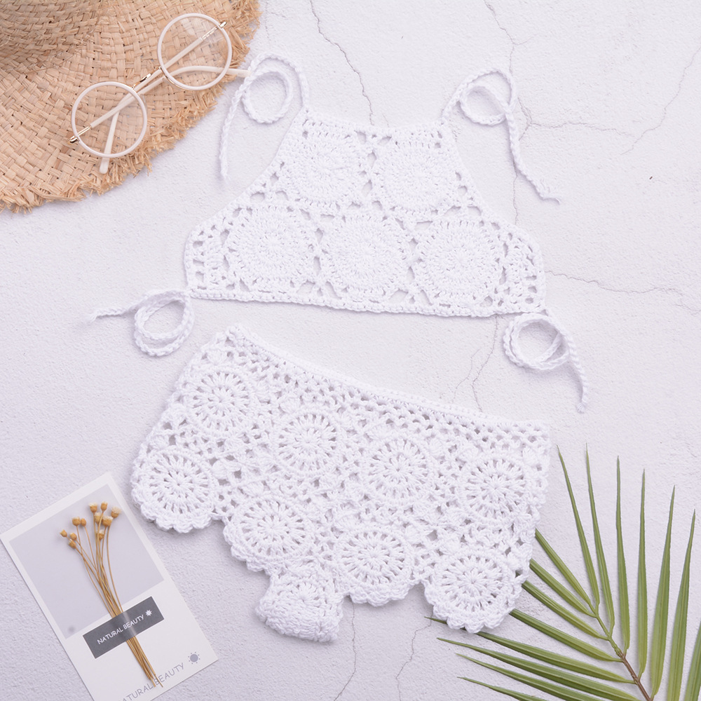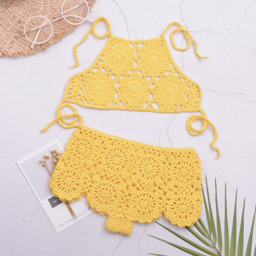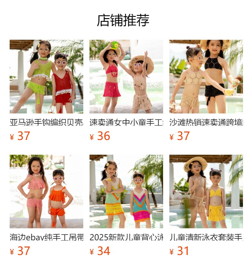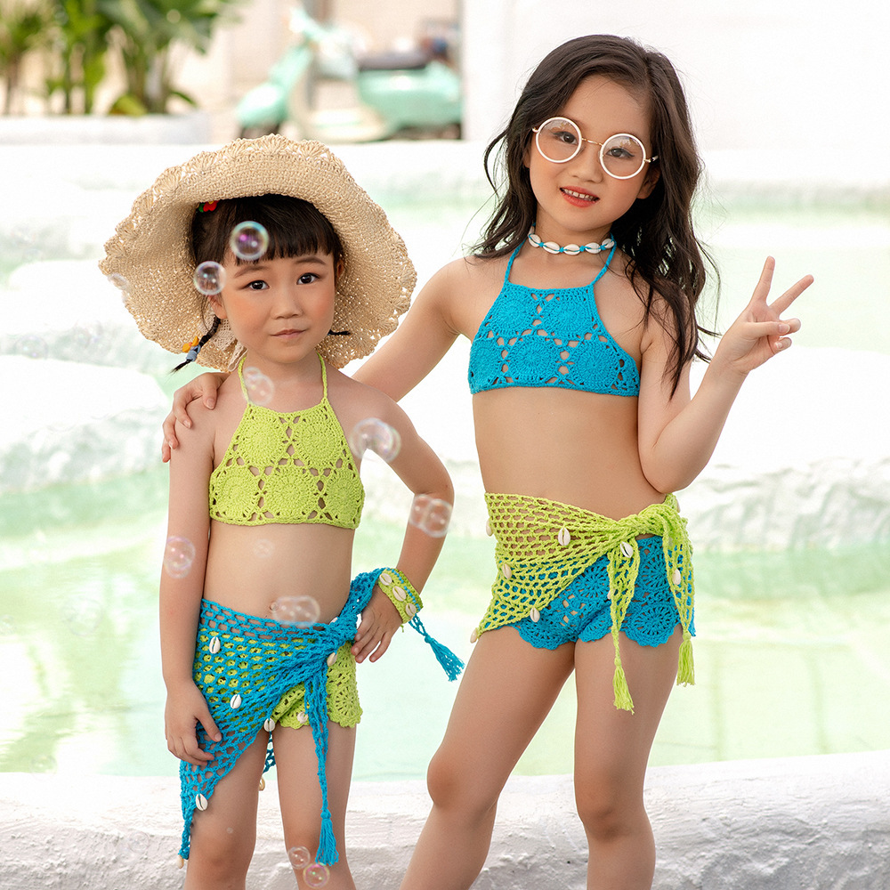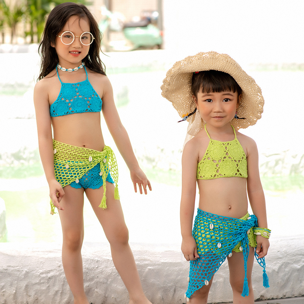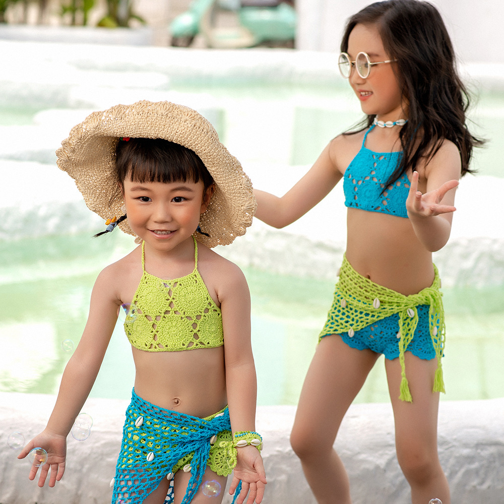 eBay 솔리드 컬러 핸드 크로 셰 뜨개질 비치 중공 스플릿 수영복 소녀 비키니 수영복 중소형 어린이 제조 업체 도매스토어 가기