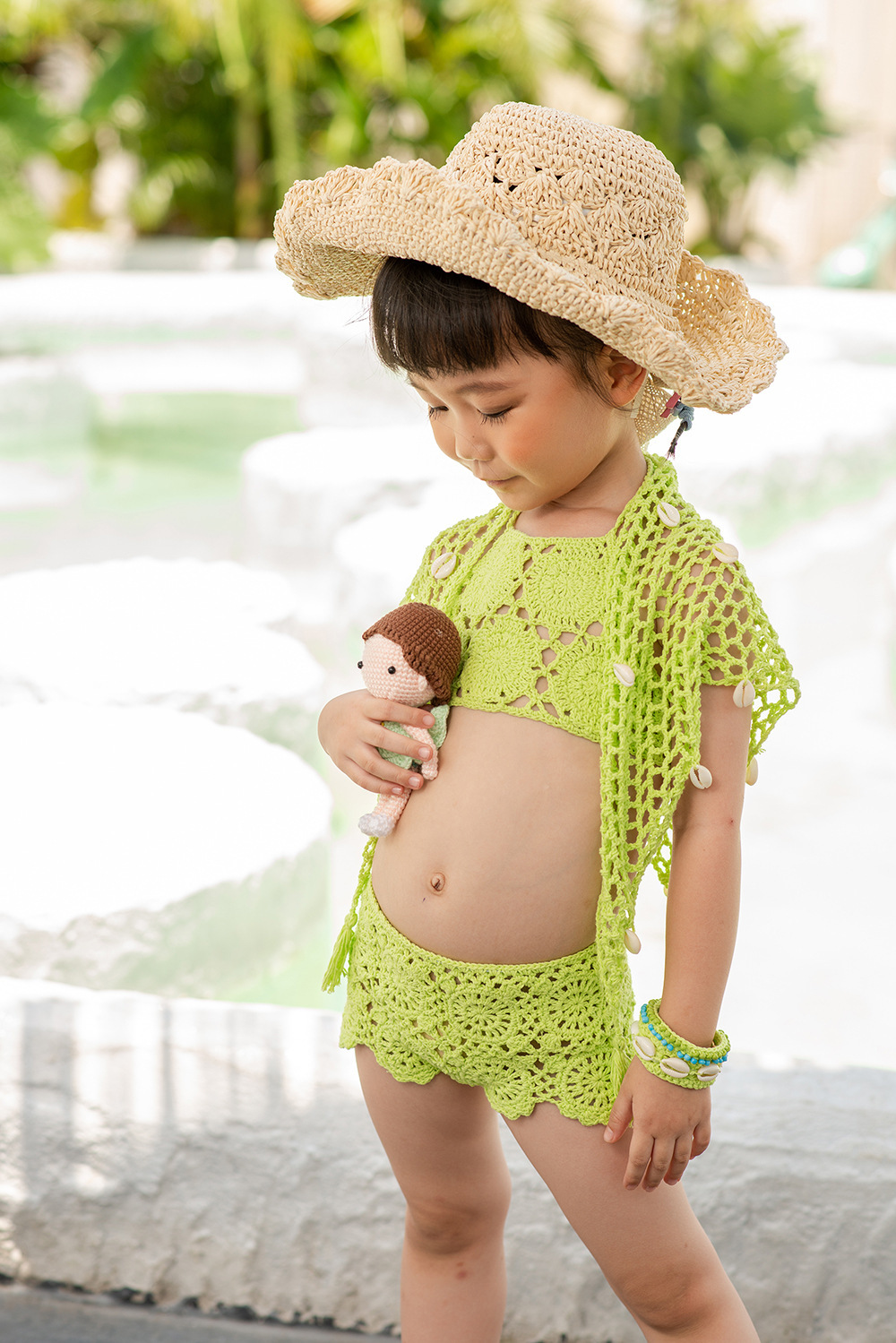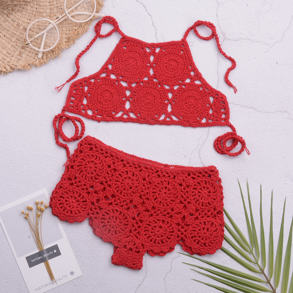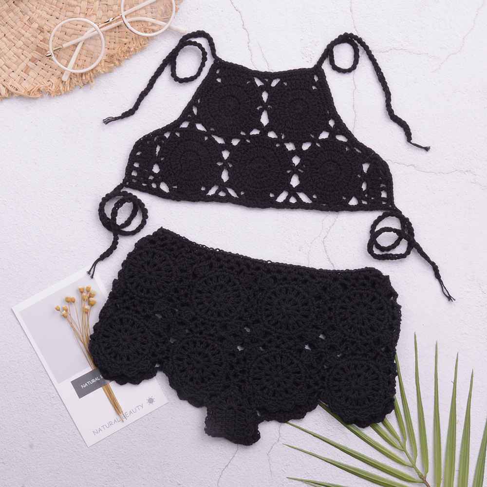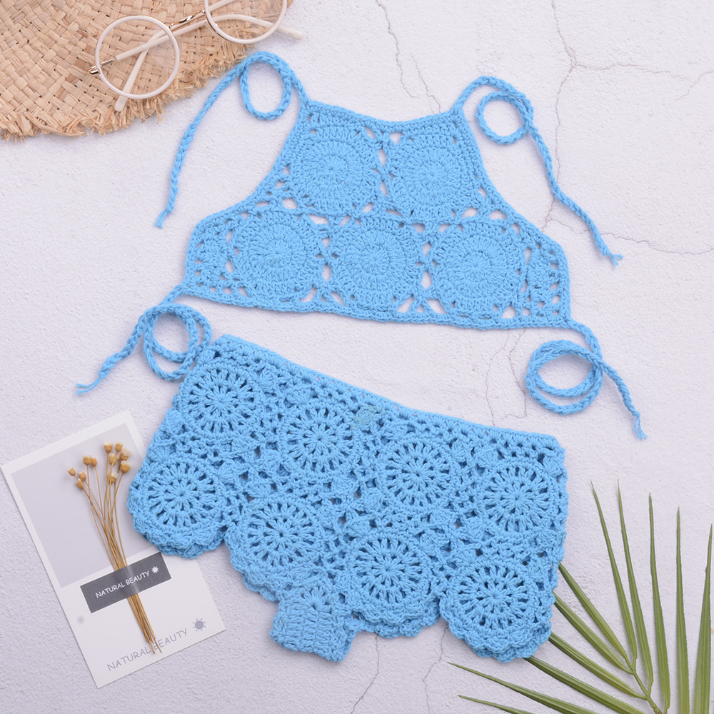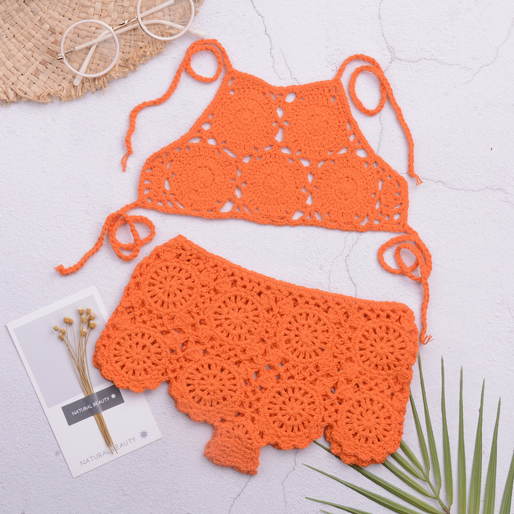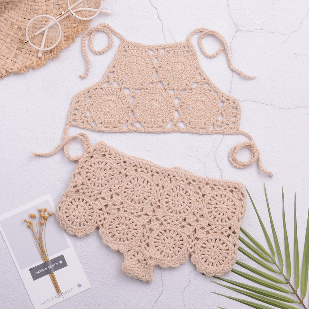 eBay 솔리드 컬러 핸드 크로 셰 뜨개질 비치 중공 스플릿 수영복 소녀 비키니 수영복 중소형 어린이 제조 업체 도매스토어 가기