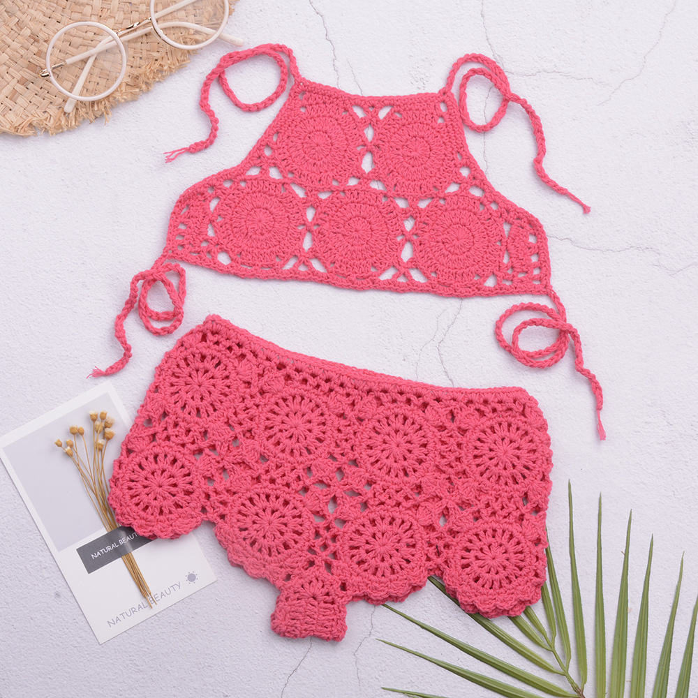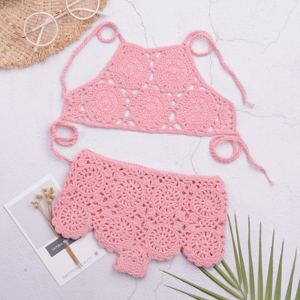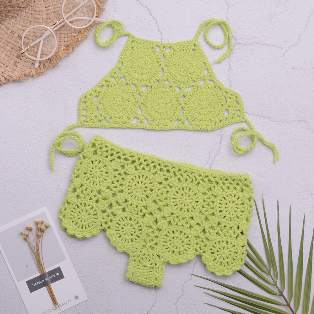 eBay 솔리드 컬러 핸드 크로 셰 뜨개질 비치 중공 스플릿 수영복 소녀 비키니 수영복 중소형 어린이 제조 업체 도매
