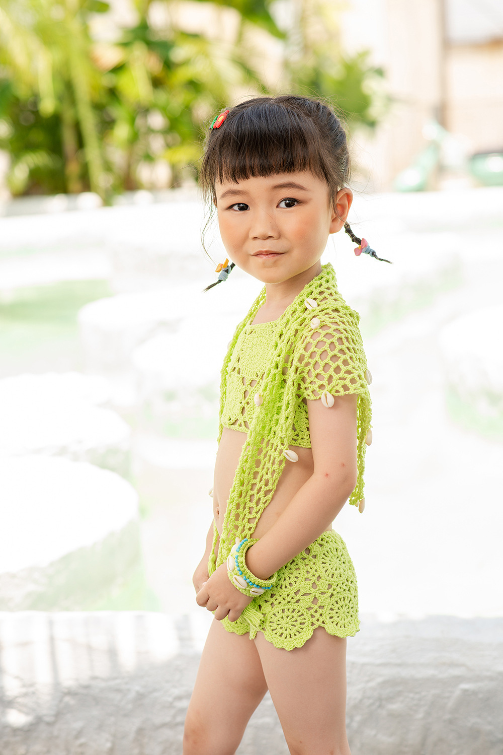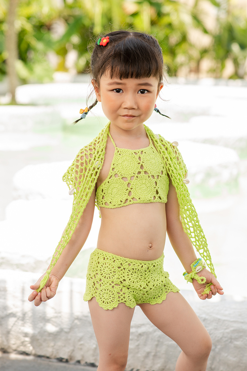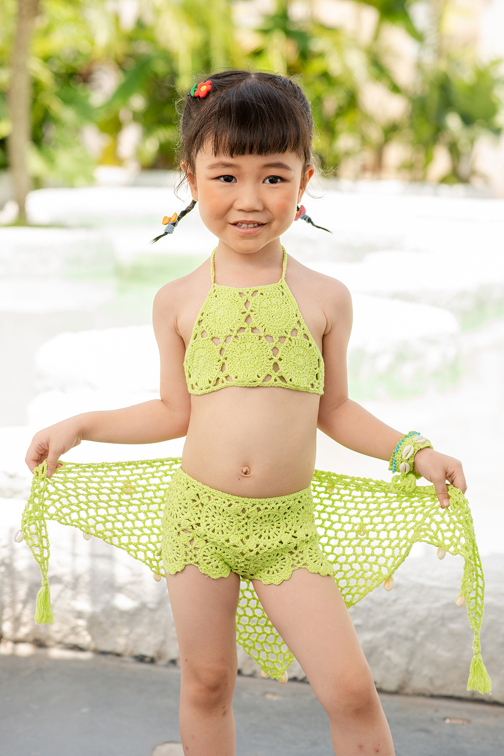 eBay 솔리드 컬러 핸드 크로 셰 뜨개질 비치 중공 스플릿 수영복 소녀 비키니 수영복 중소형 어린이 제조 업체 도매