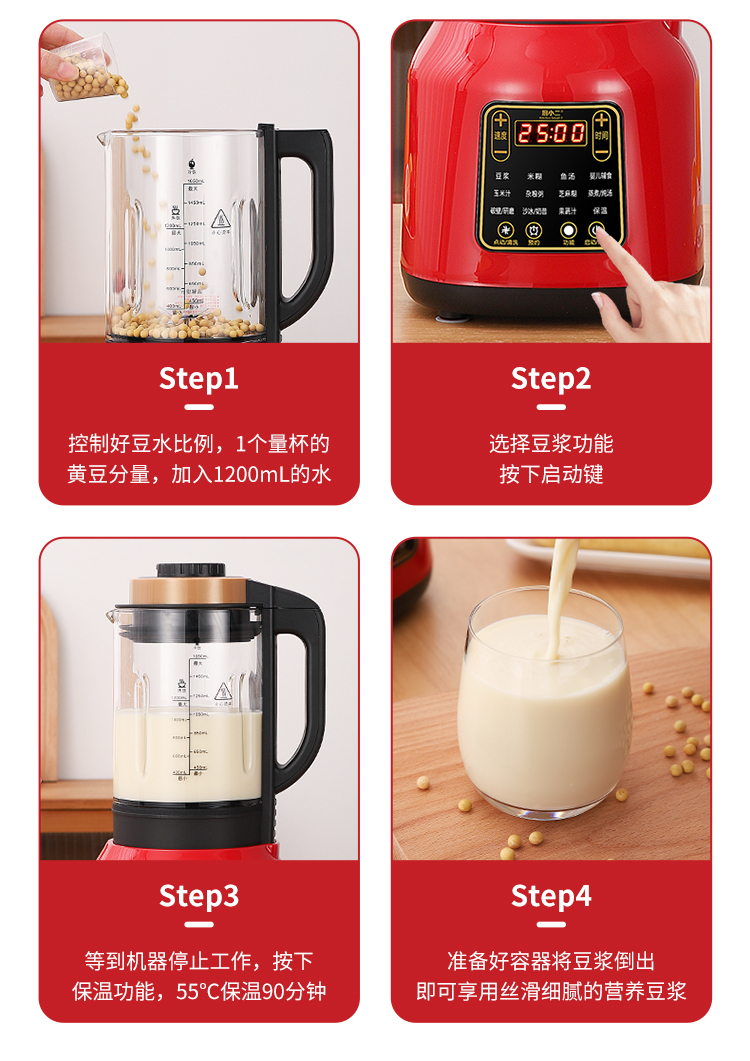 독일 셰프 다기능 벽 파괴 기계 가정용 가열 두유 기계 완전 자동 필터 프리 주스 건강 조리 기계