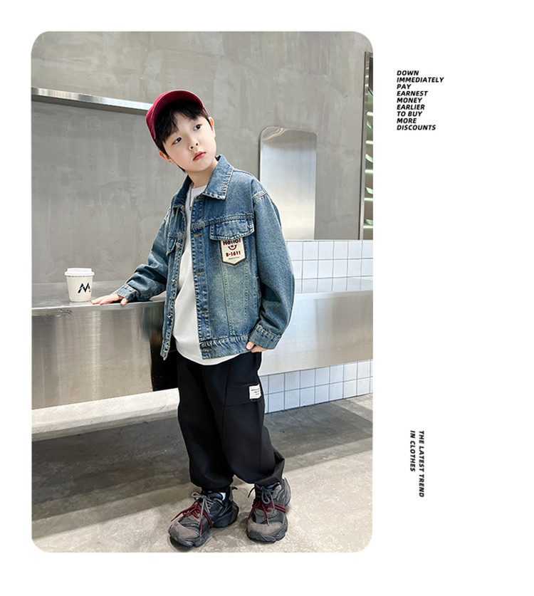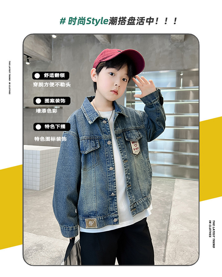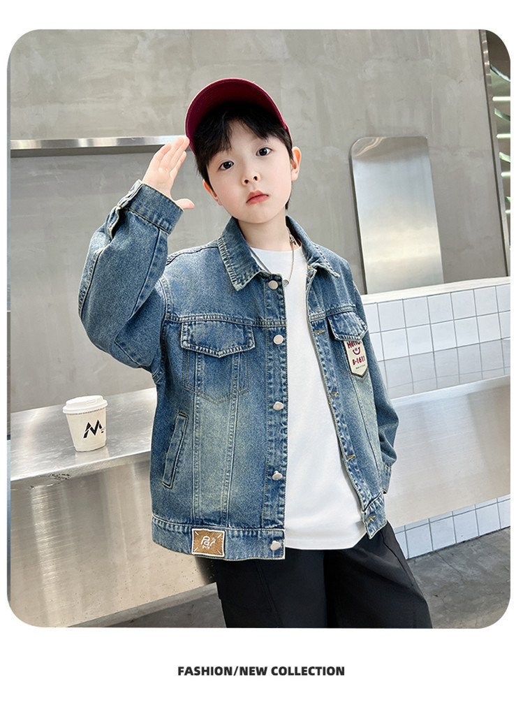 소년 코트 가을 2025 어린이 새 소년 데님 재킷 한국 스타일 외국 스타일 소년 중대형 어린이 유행