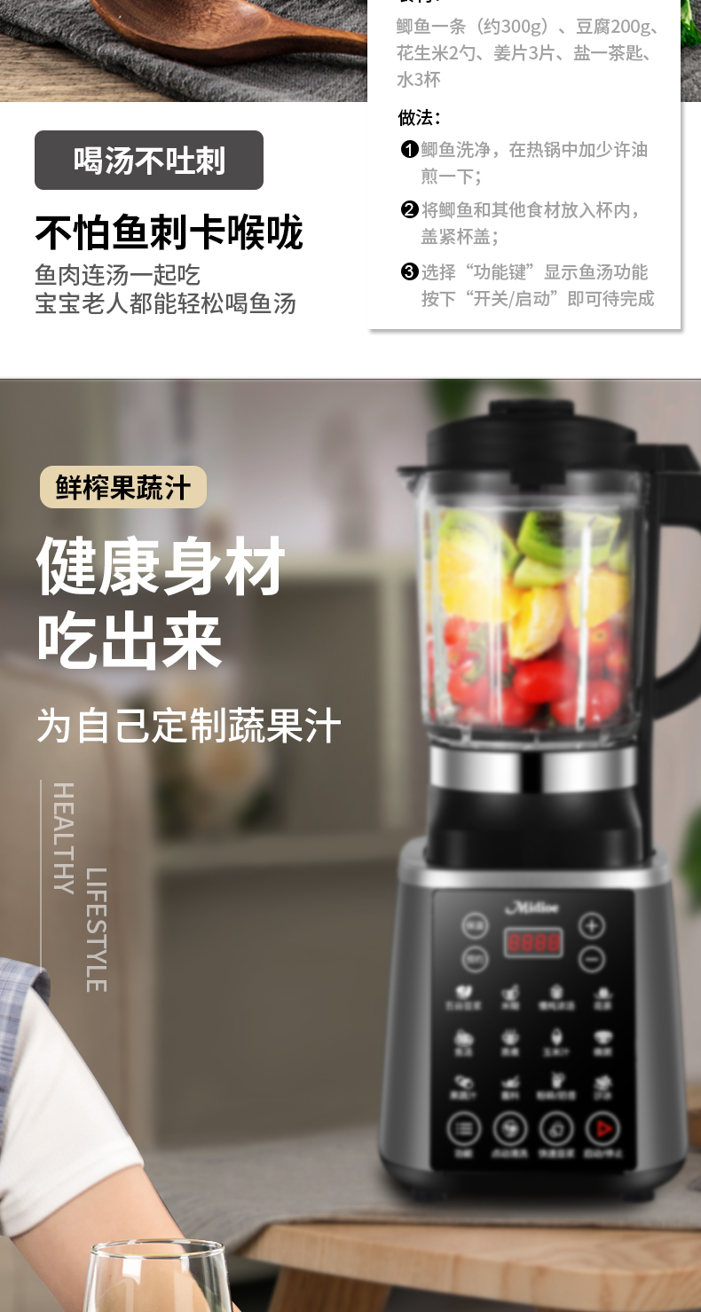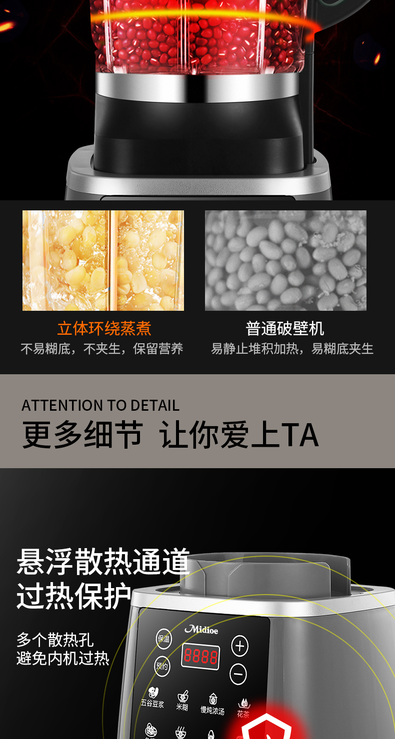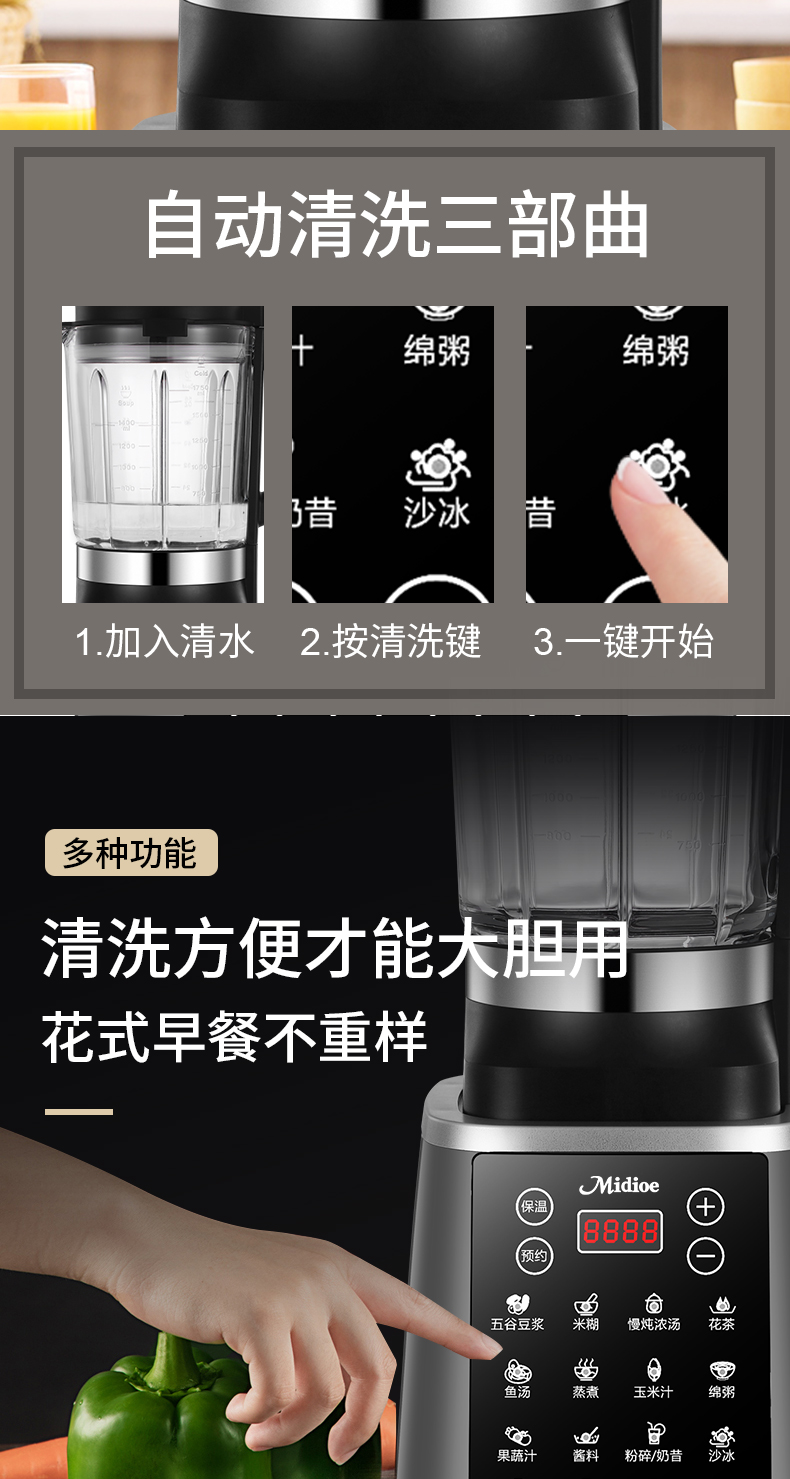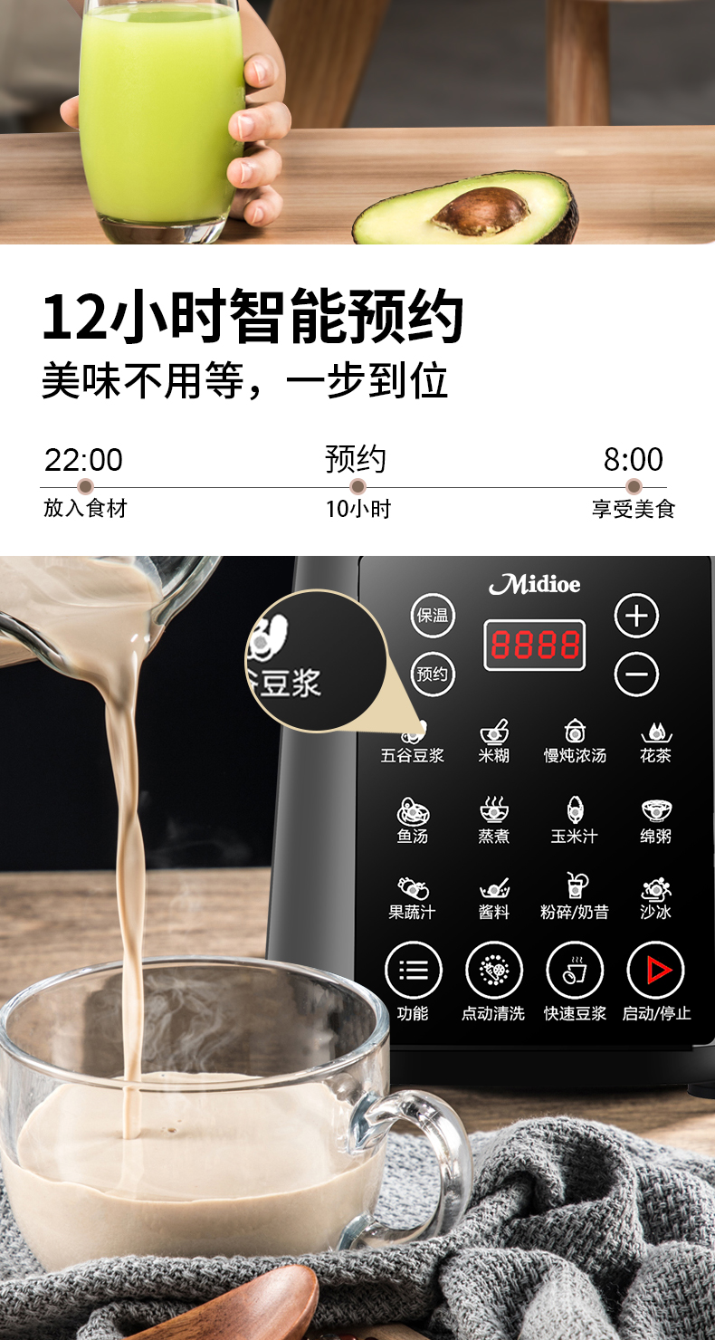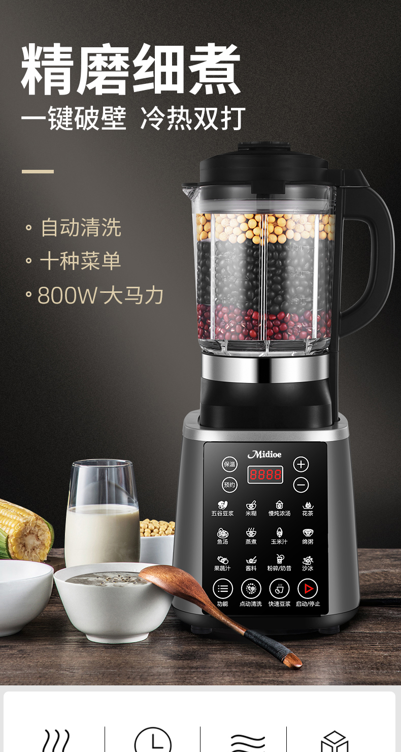 Meibo Wall Breaker 가정용 완전 자동 두유 기계 2025 새로운 다기능 잔류물없는 주스 추출기 식품 보충 조리 기계