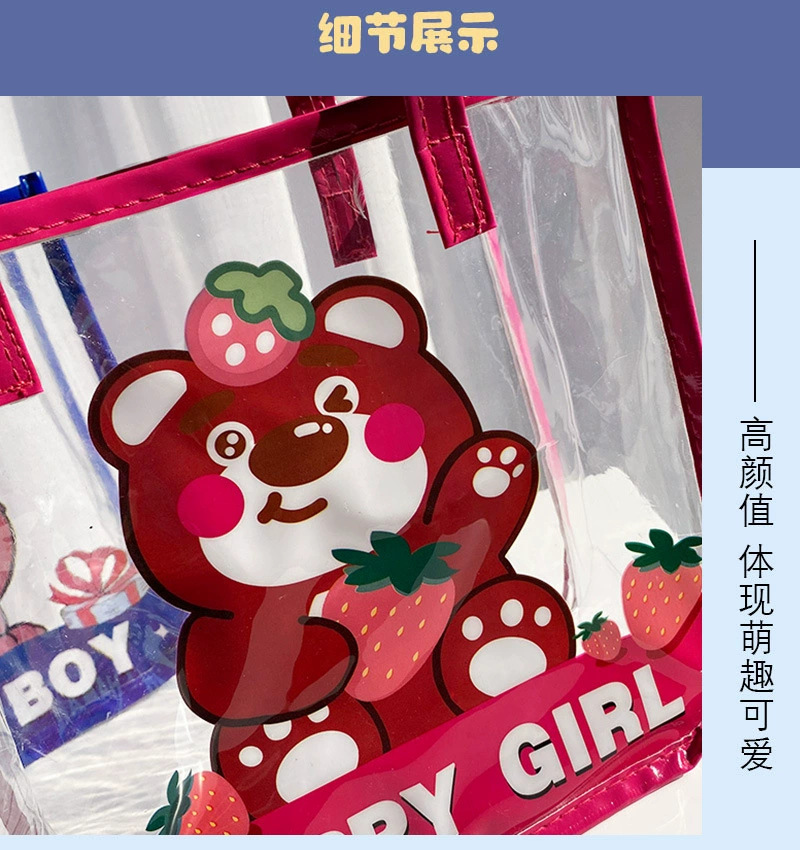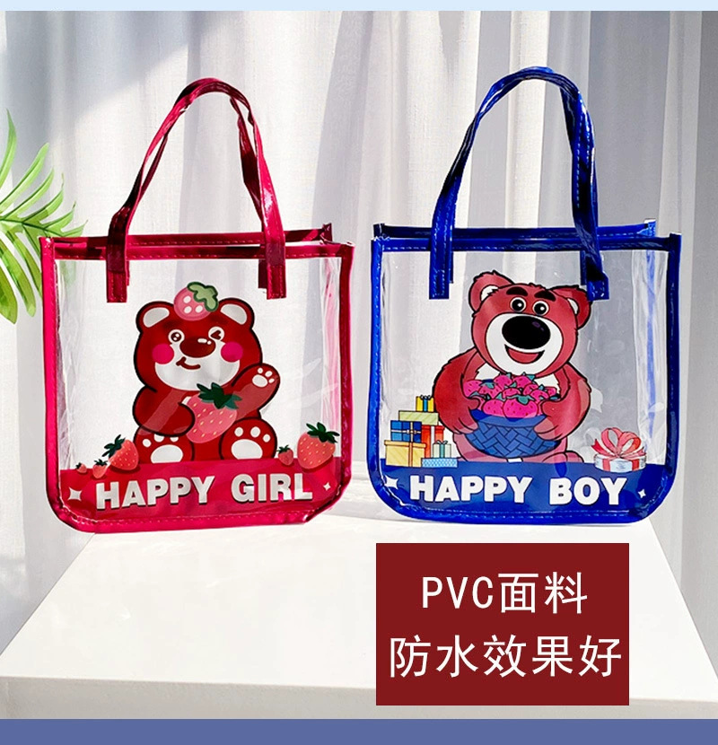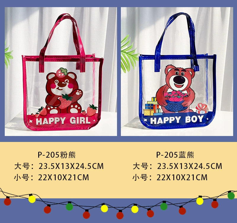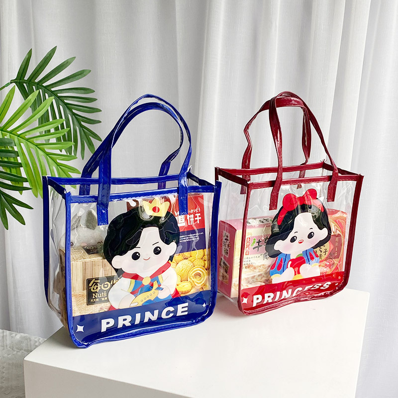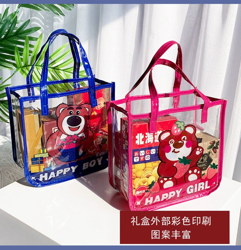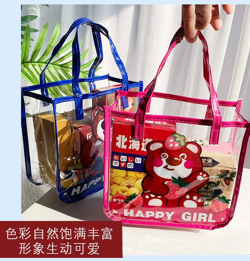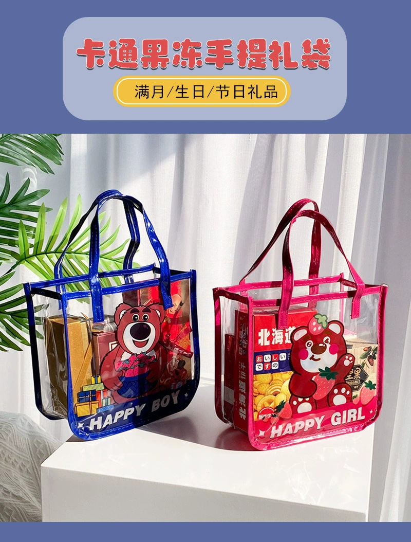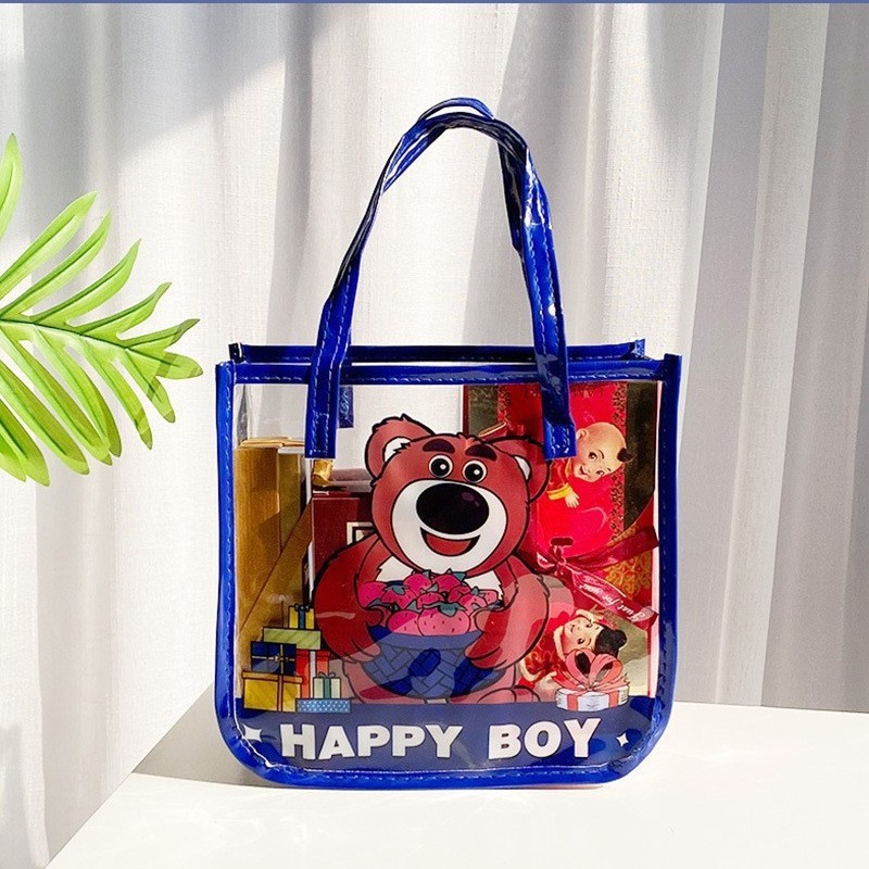 무료 배송 공장 가격 재고 어린이 날 선물 가방 투명 가방 만화 토트 생일 선물 포장 수 있습니다
