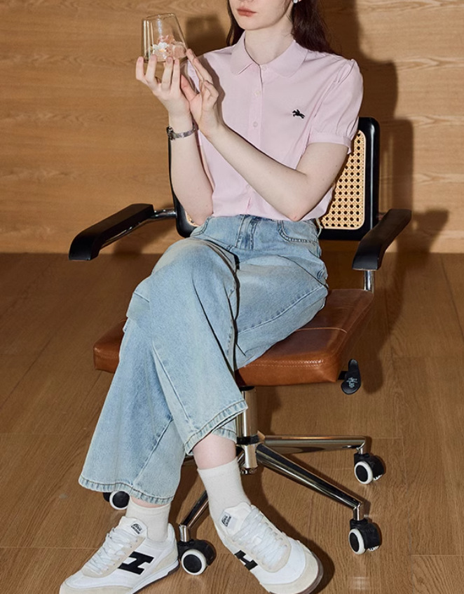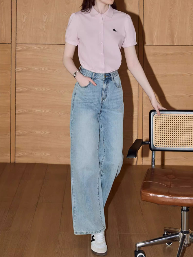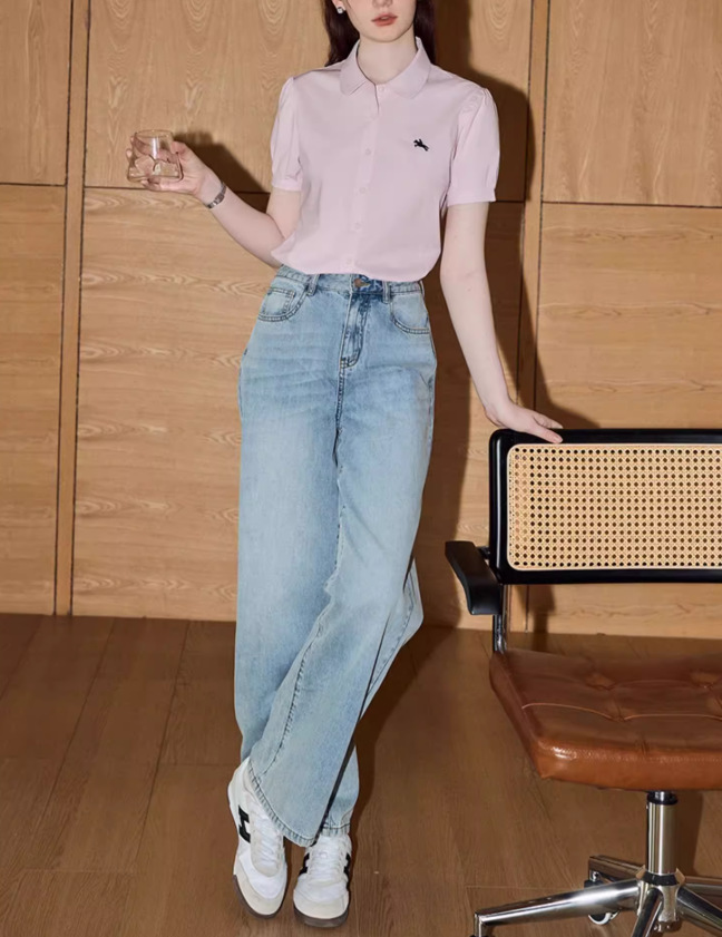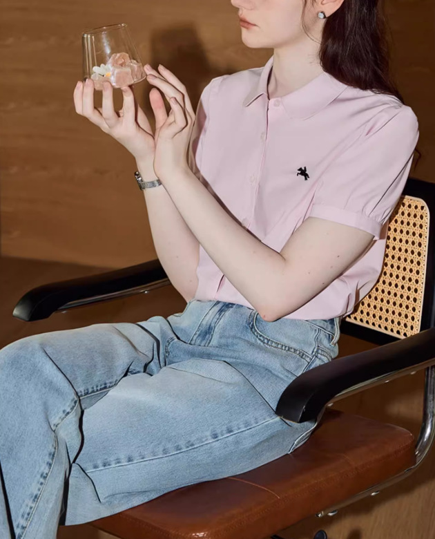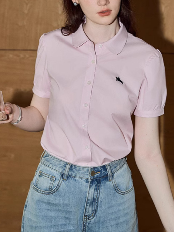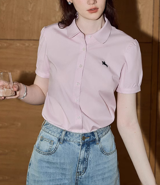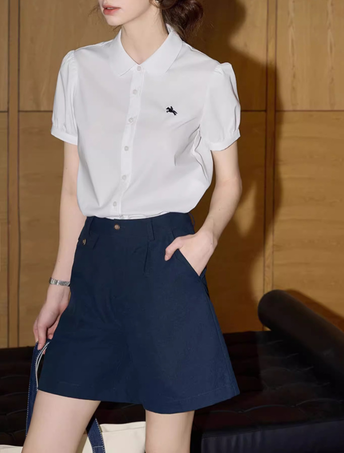 솔리드 컬러 반팔 셔츠 여성 2025 여름 새로운 틈새 디자인 센스 슬림 셔츠스토어 가기