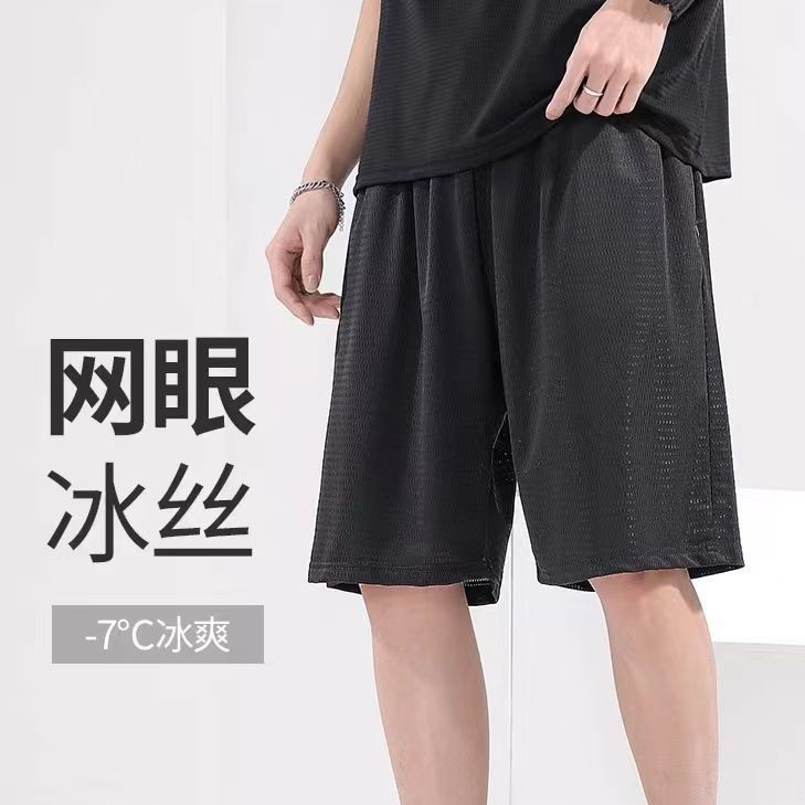 여름 얇은 아이스 실크 메쉬 바지 남성용 탄성 느슨한 플러스 사이즈 바지 스포츠 반바지 피트니스 비치 바지