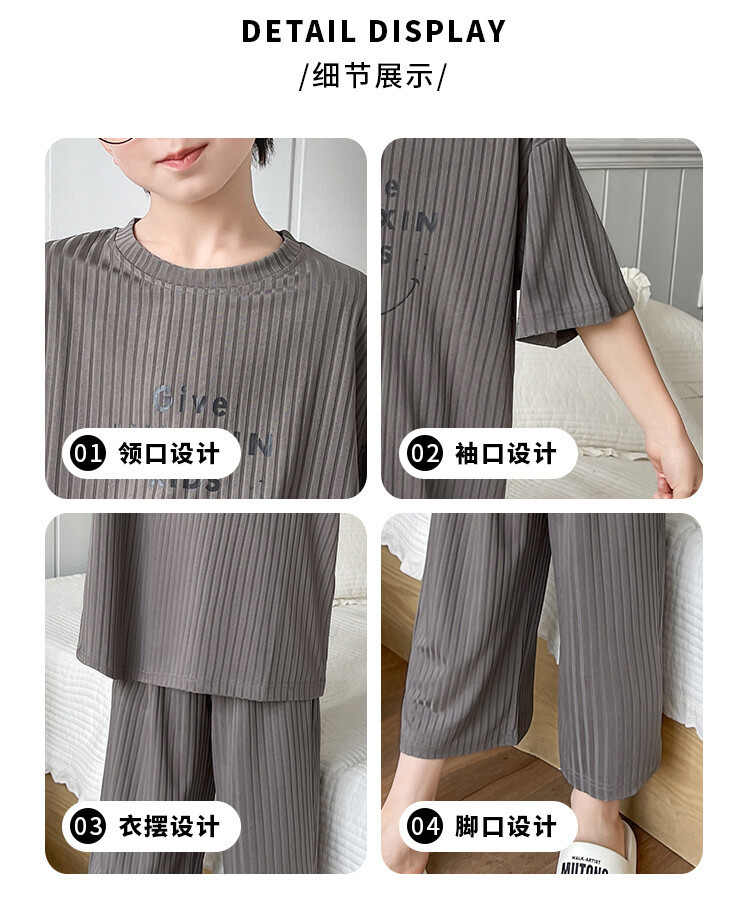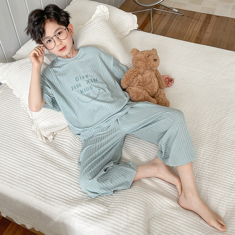 아동 잠옷 소년 여름 가정 의류 세트 2024 새로운 스타일 소년 여름 반팔 얼음 실크 에어컨 의류스토어 가기
