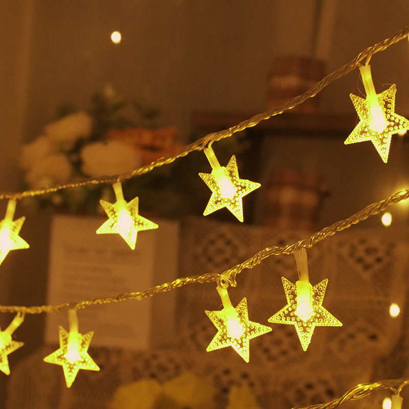 국경 간 인기 판매 LED 별 오각형 별이 빛나는 하늘 빛 문자열 배터리 랜턴 웨딩 침실 장식 휴일 크리스마스스토어 가기