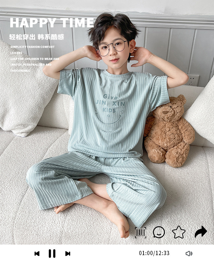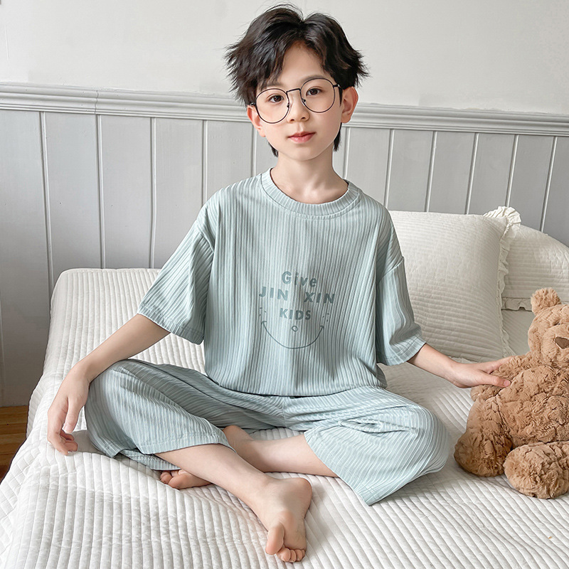 아동복, 남아 잠옷, 여름 가정복, 여름 얇은 중대형 아동 여름 남아 에어컨 의류 도매스토어 가기