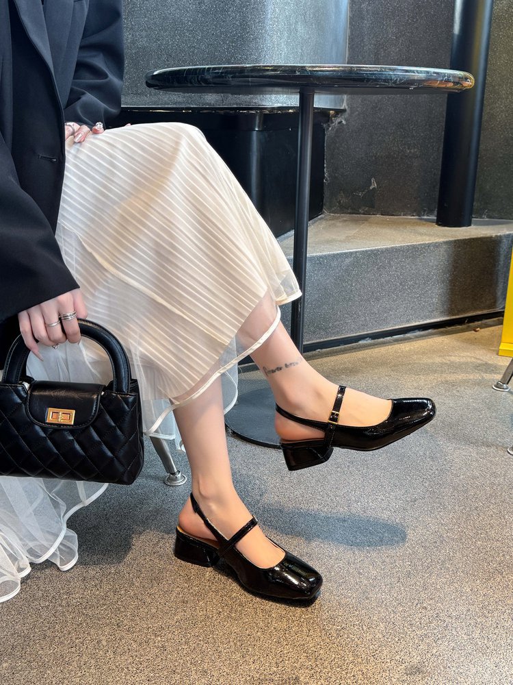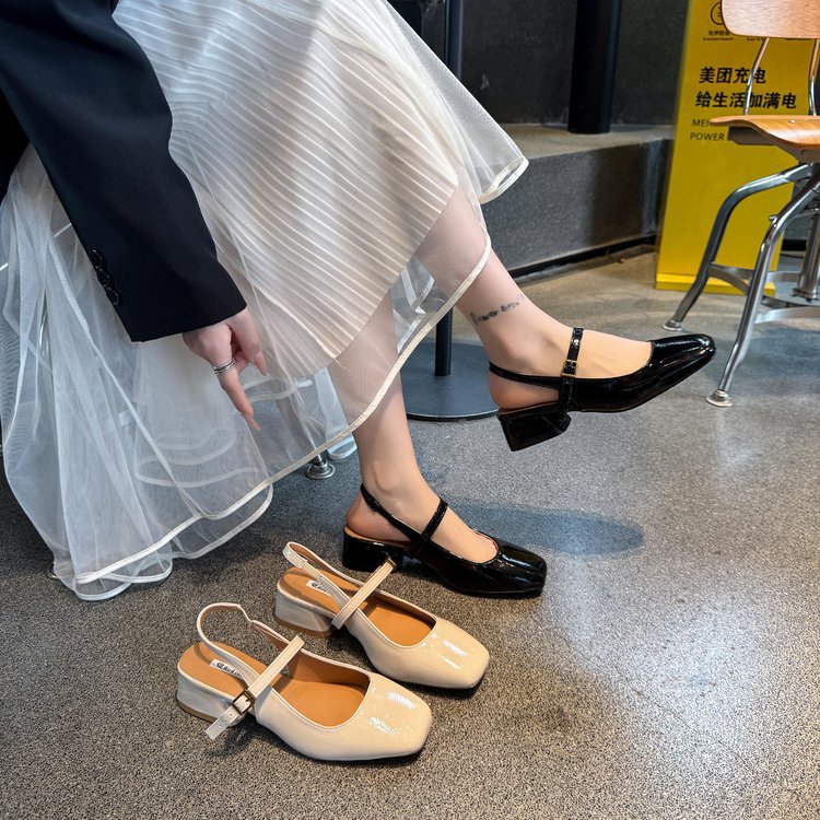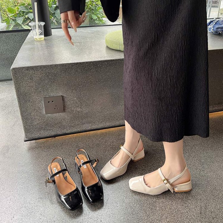 여름 여성용 프렌치 메리제인 토캡 샌들, 패셔너블한 스퀘어토, 미드힐, 두꺼운 굽, 스커트와 어울리는 우아한 이브닝 슈즈스토어 가기