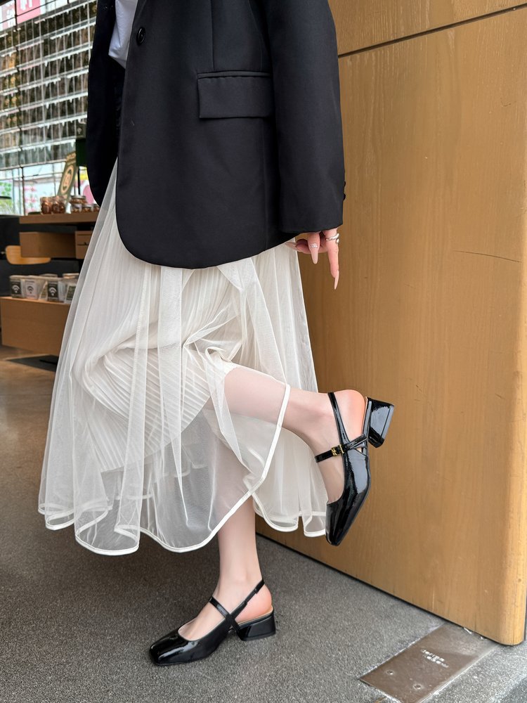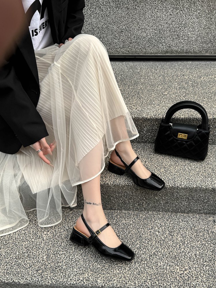 여름 여성용 프렌치 메리제인 토캡 샌들, 패셔너블한 스퀘어토, 미드힐, 두꺼운 굽, 스커트와 어울리는 우아한 이브닝 슈즈