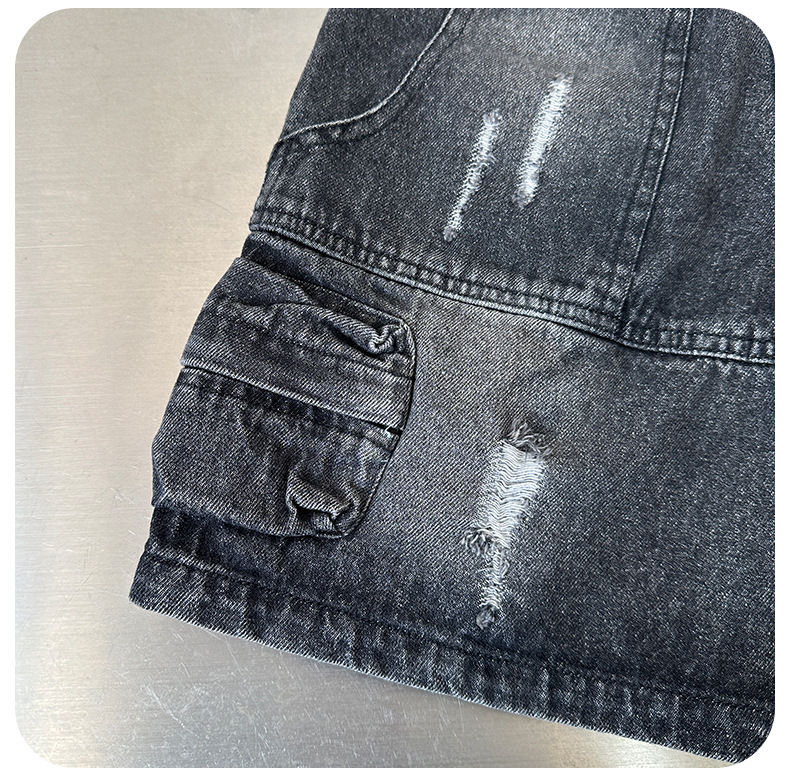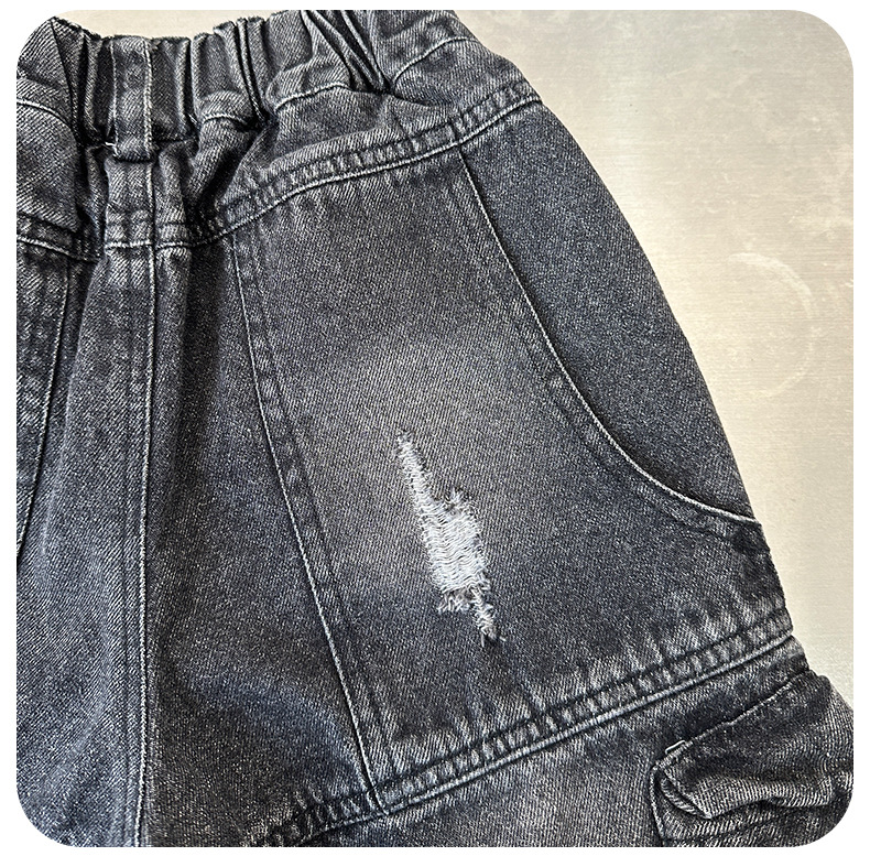 2025 새로운 어린이 아메리칸 스타일 레트로 멀티 포켓 착용 데님 반바지 여름 중공업 느슨한 바지스토어 가기