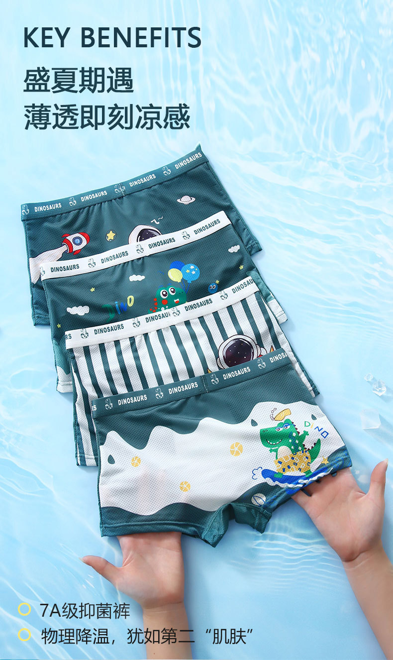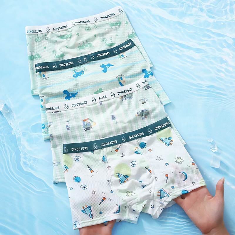 어린이 속옷 소년의 얼음 실크 통기성 메쉬 박스 여름 항균 만화 복서 반바지스토어 가기