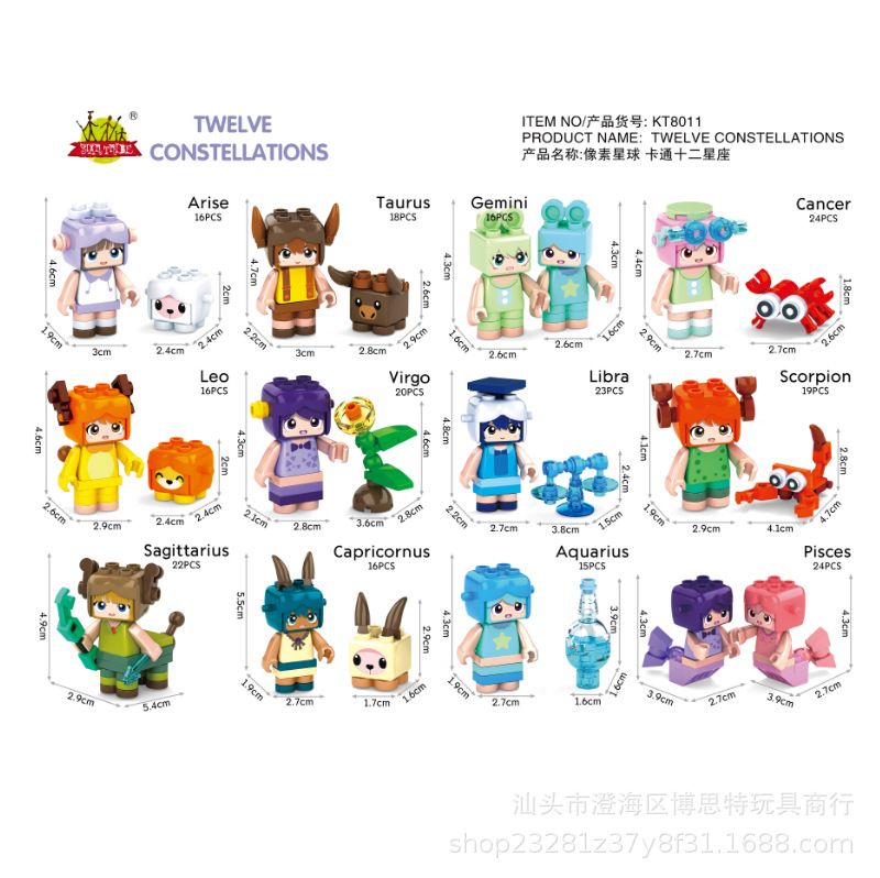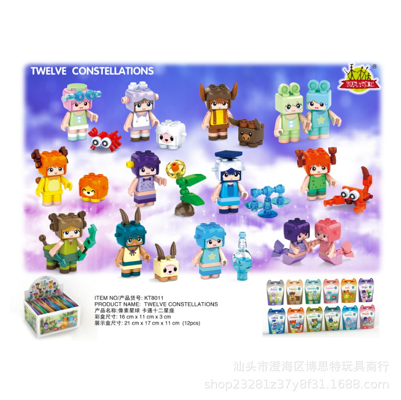 12 별자리 빌딩 블록 조립 장난감 교육 소녀 인형 세트 어린이 생일 선물 장식품 모델 빌딩 블록스토어 가기