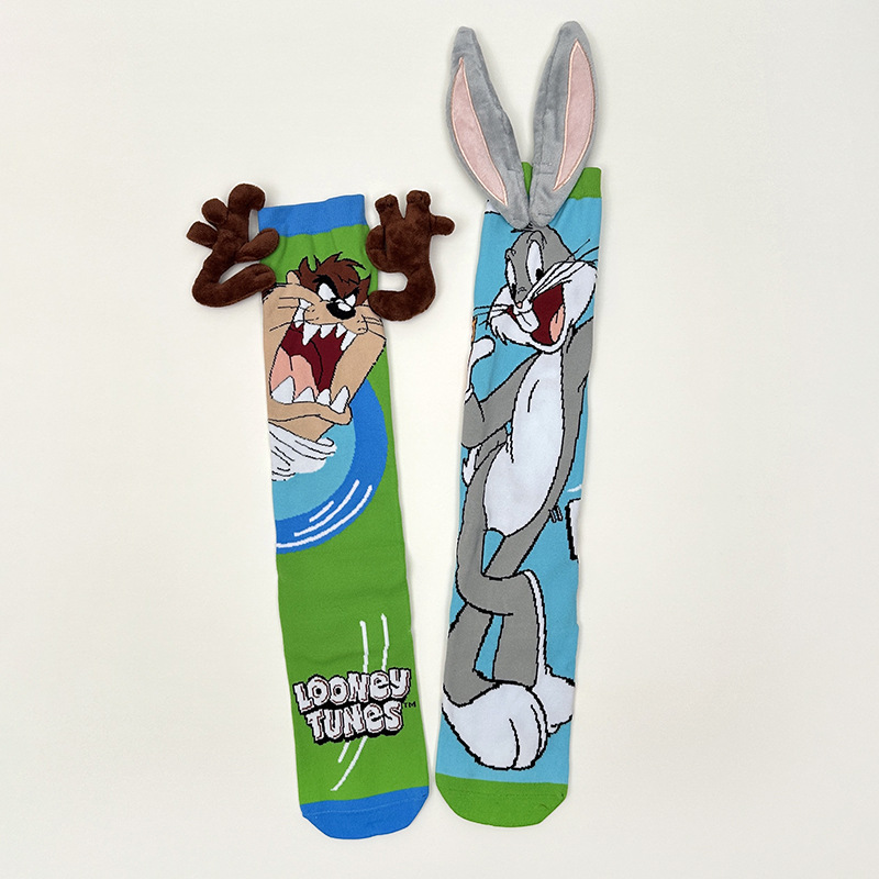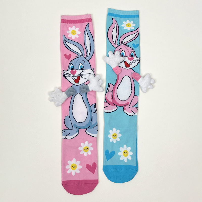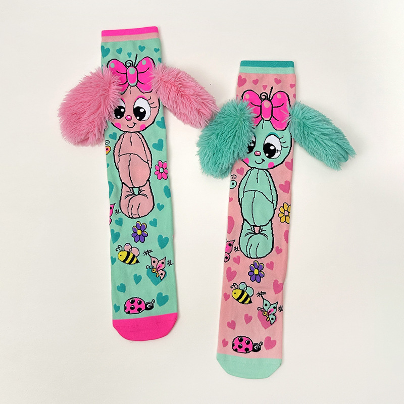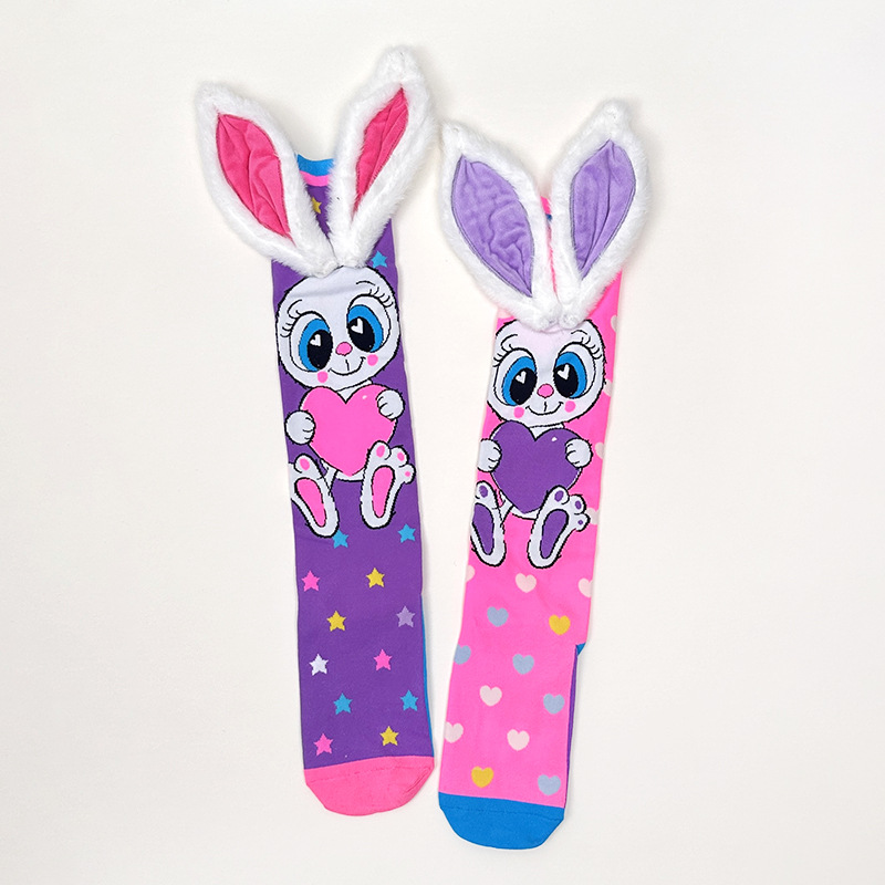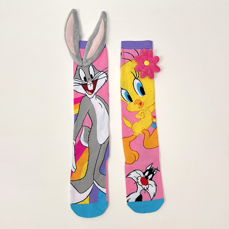 크로스보더 버니버그 만화 소녀용 긴 양말 패션 액세서리 양말 어린이용 귀여운 강아지 귀 수제 양말 토끼 귀