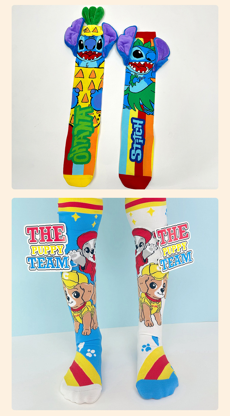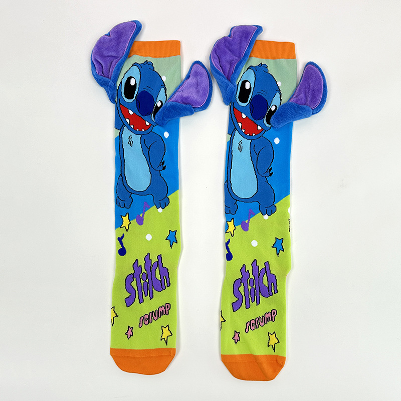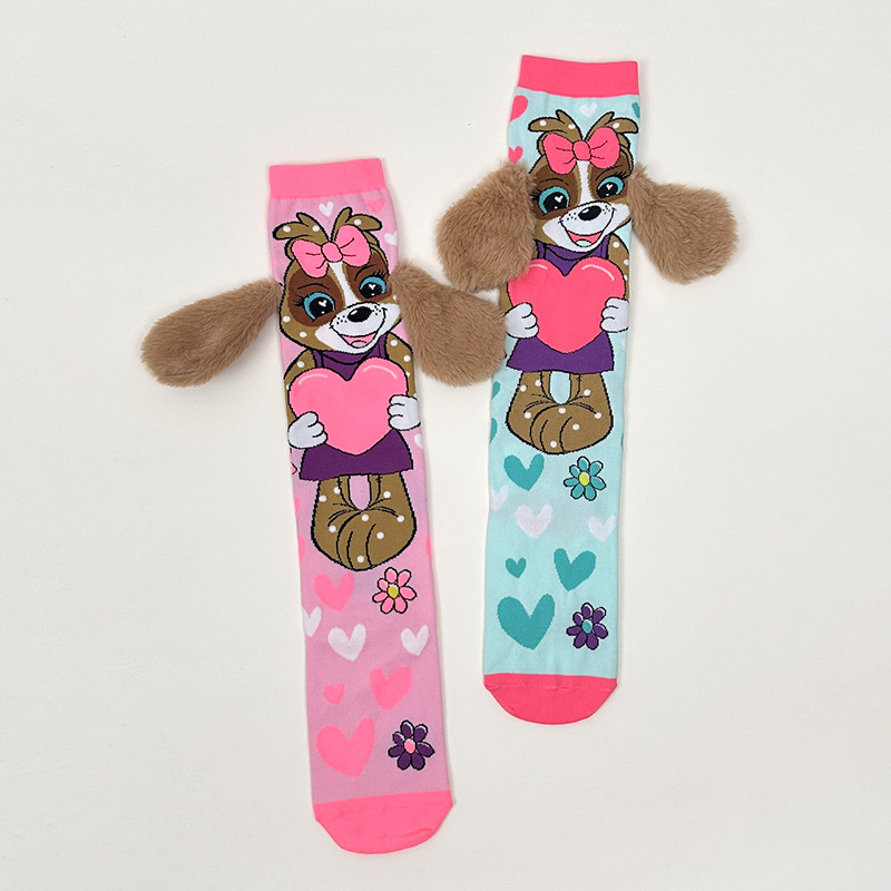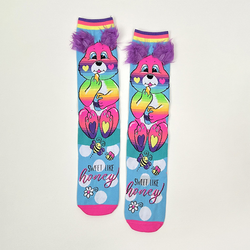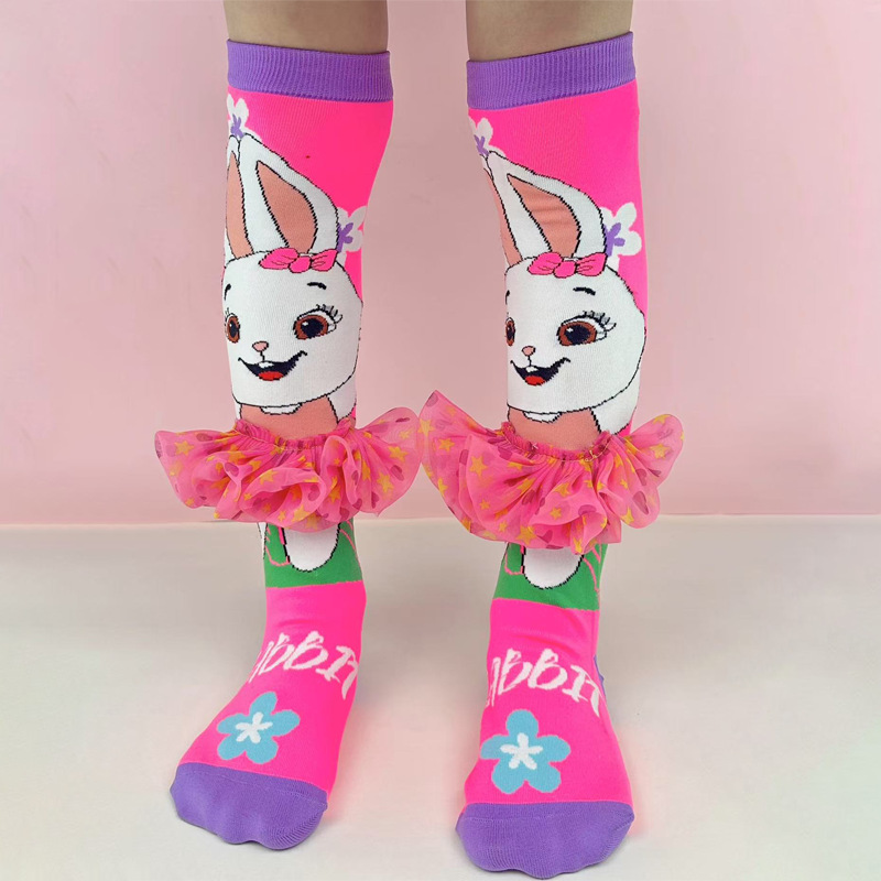 크로스보더 버니버그 만화 소녀용 긴 양말 패션 액세서리 양말 어린이용 귀여운 강아지 귀 수제 양말 토끼 귀