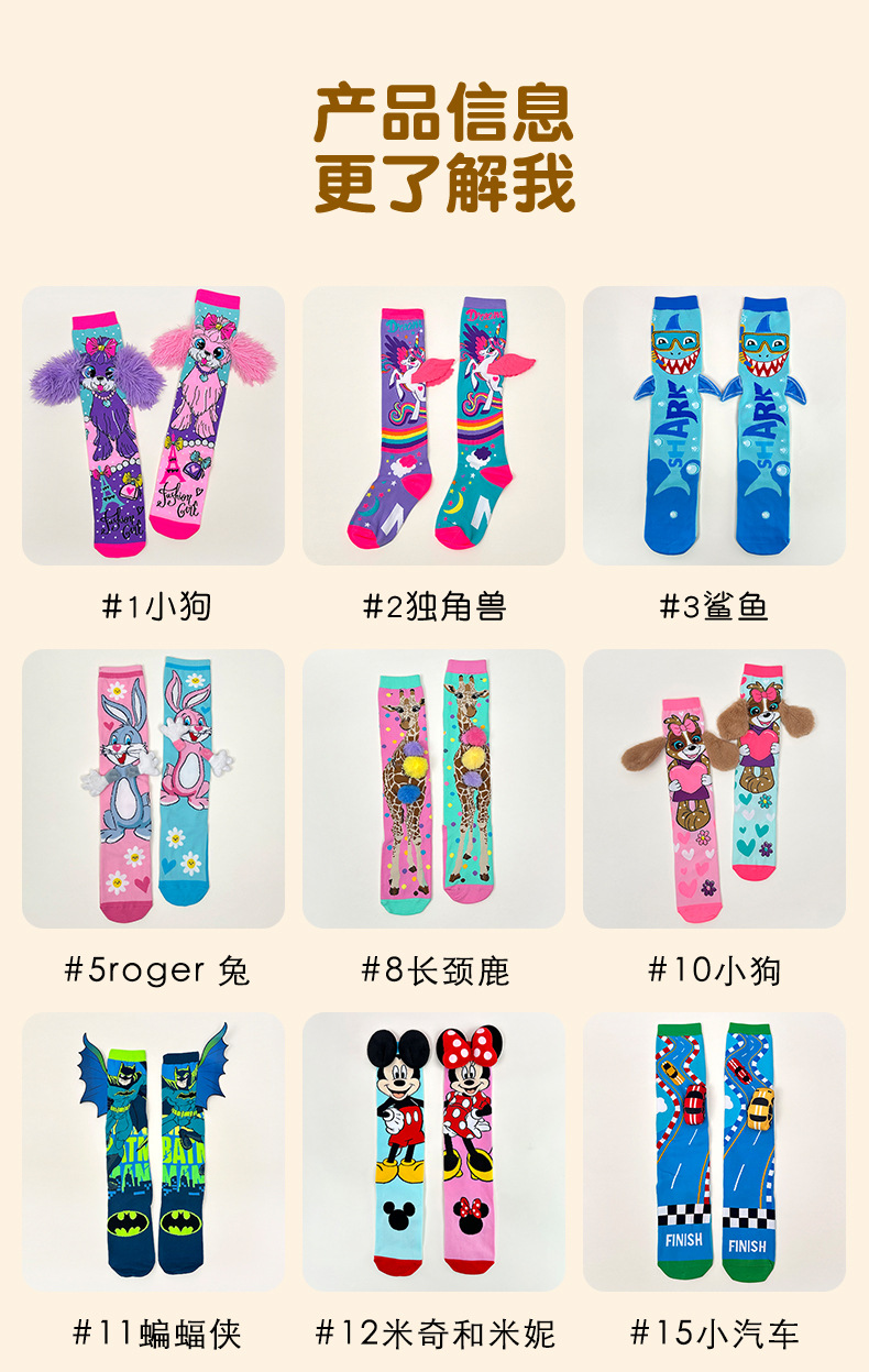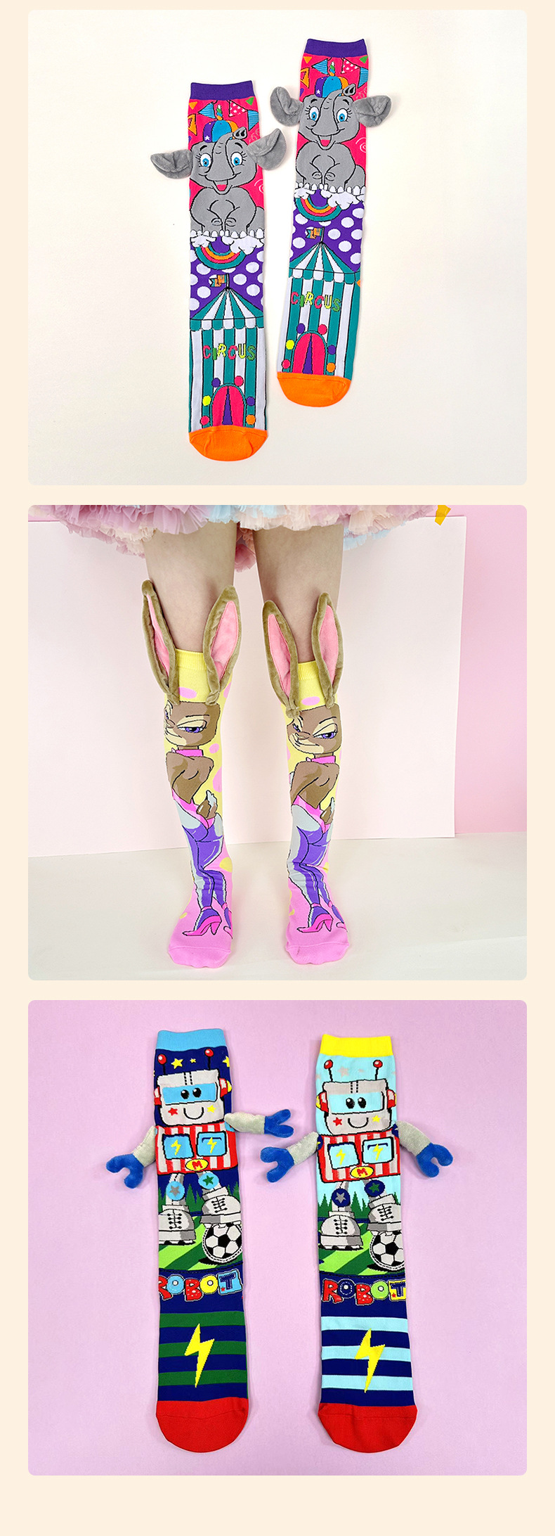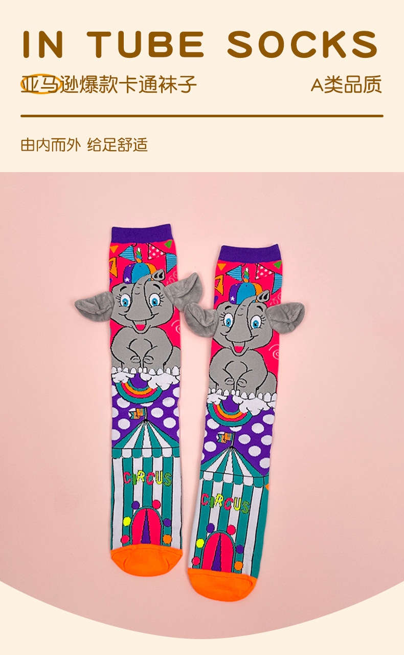 크로스보더 버니버그 만화 소녀용 긴 양말 패션 액세서리 양말 어린이용 귀여운 강아지 귀 수제 양말 토끼 귀스토어 가기