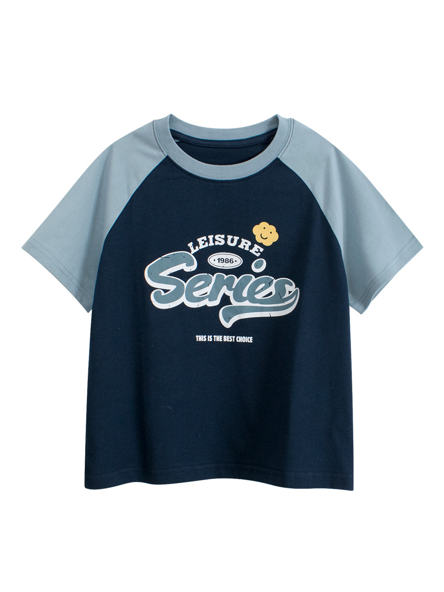 GRrr 트렌디 브랜드 Raglan 소매 반팔 티셔츠 2025 여름 새로운 명암 인쇄 탑 큰 소년 소녀 옷