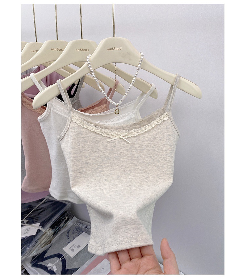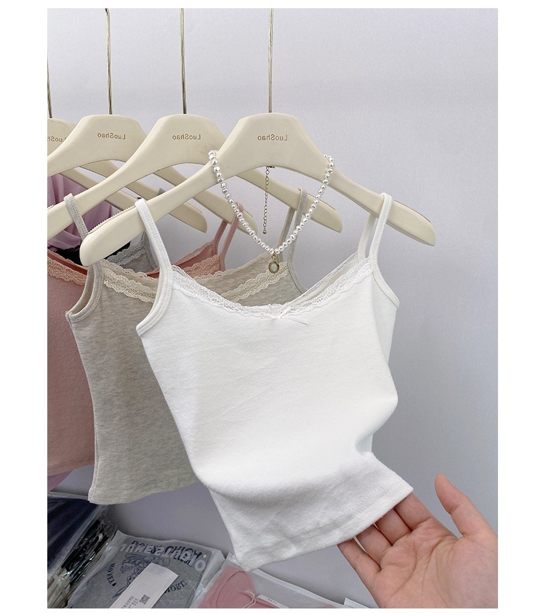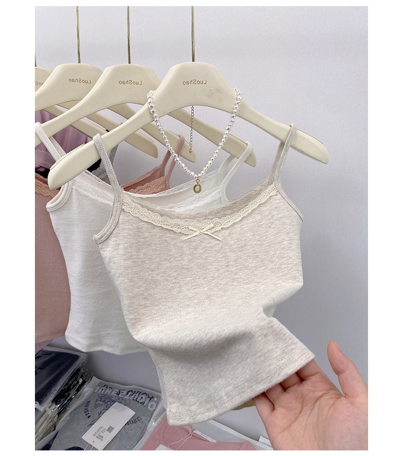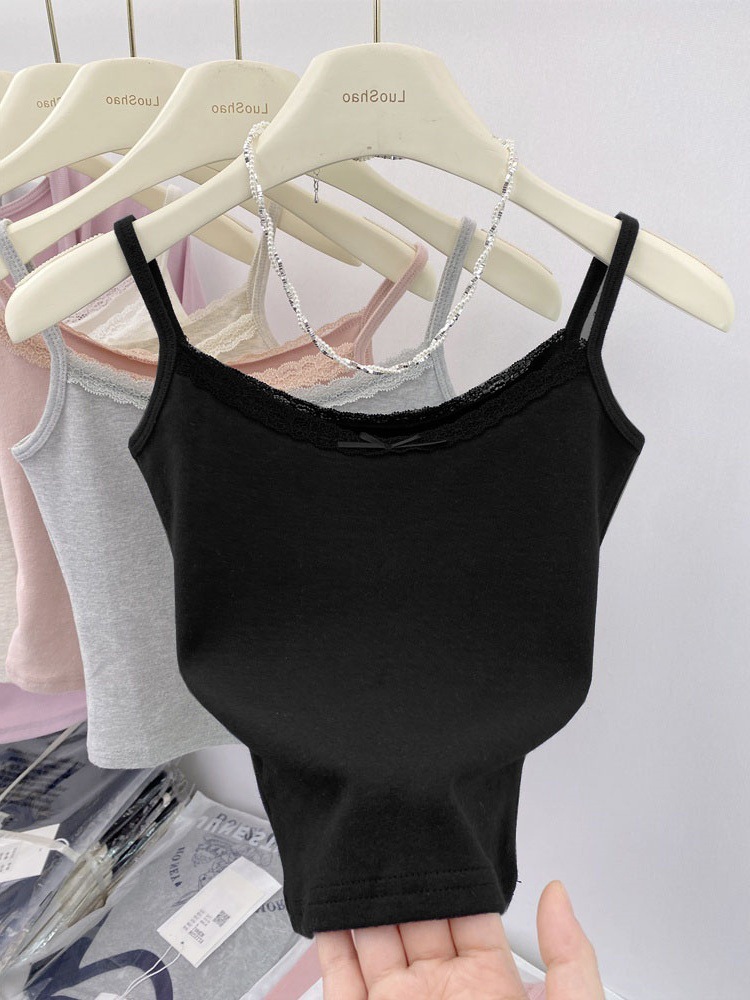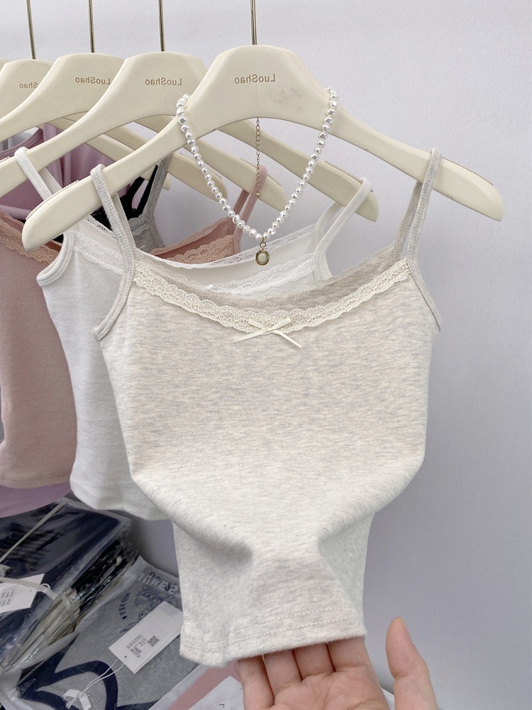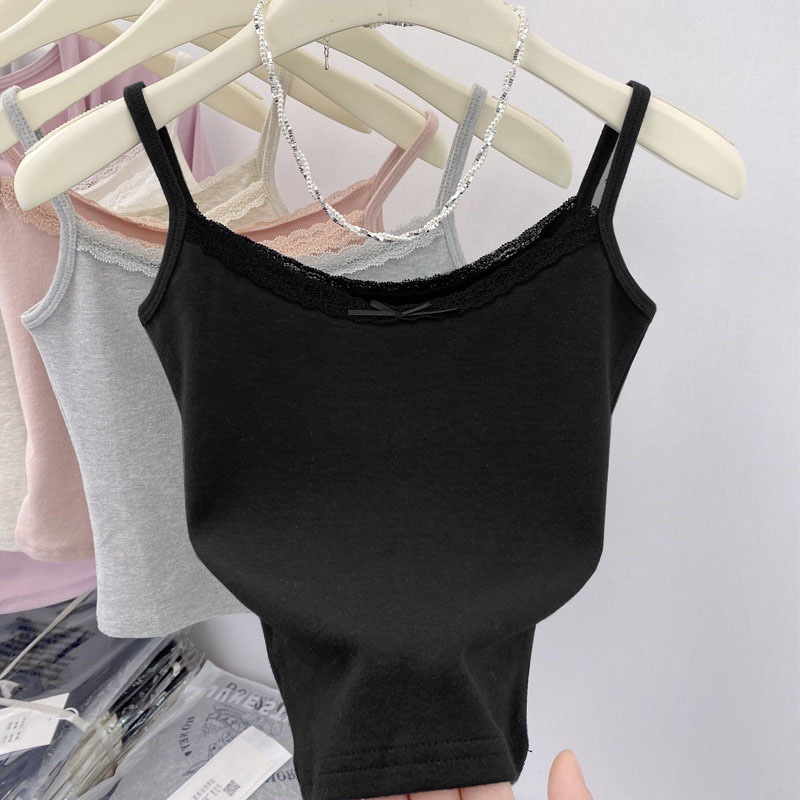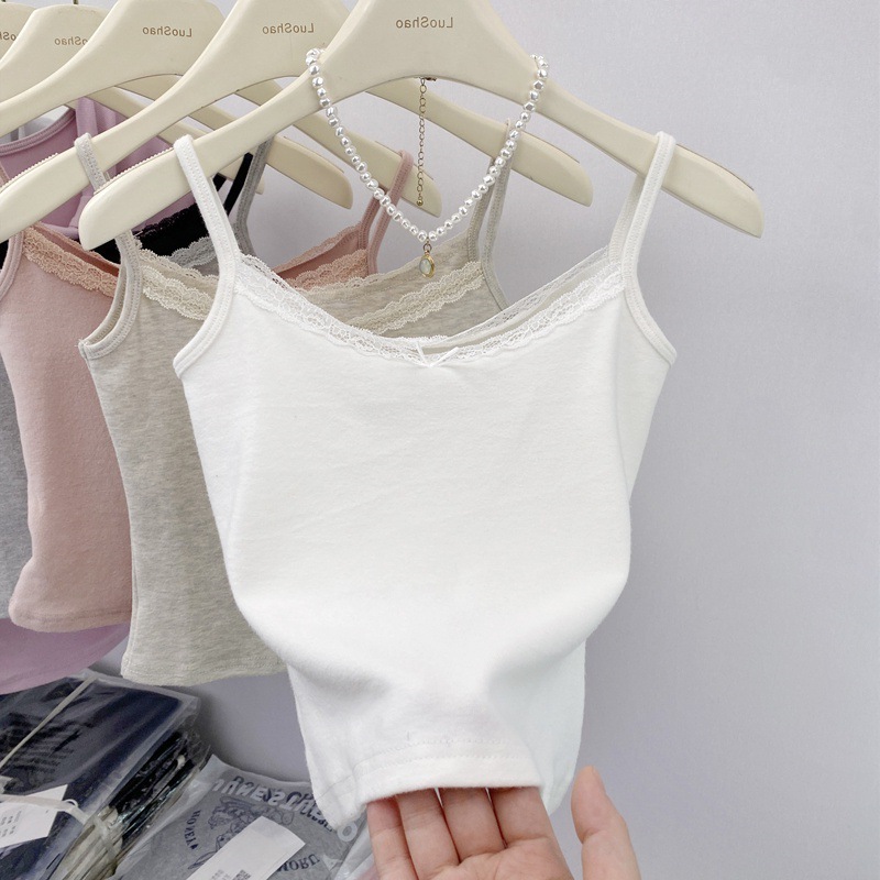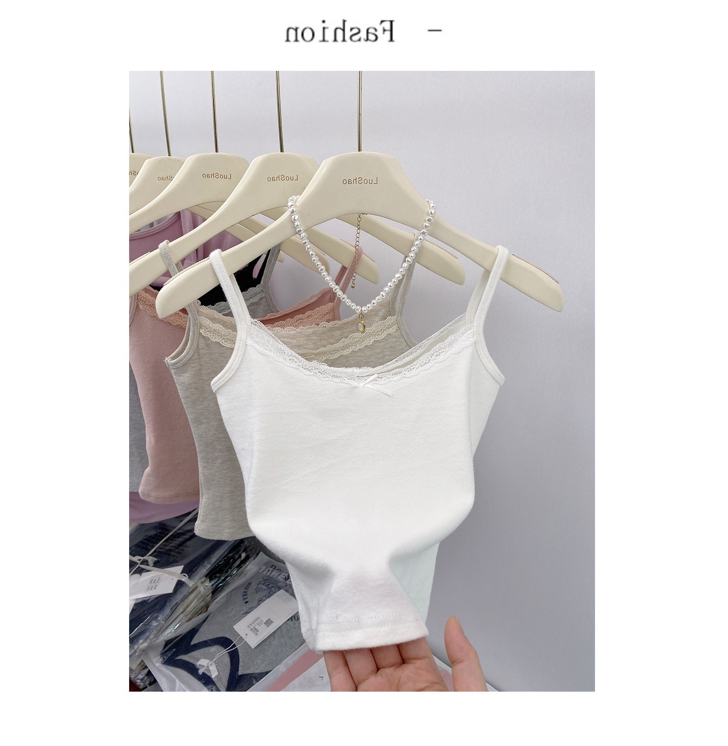 화이트 레이스 카미 솔 여자 여름 2025 여름 새로운 순수 의상 쇼트베이스 탑