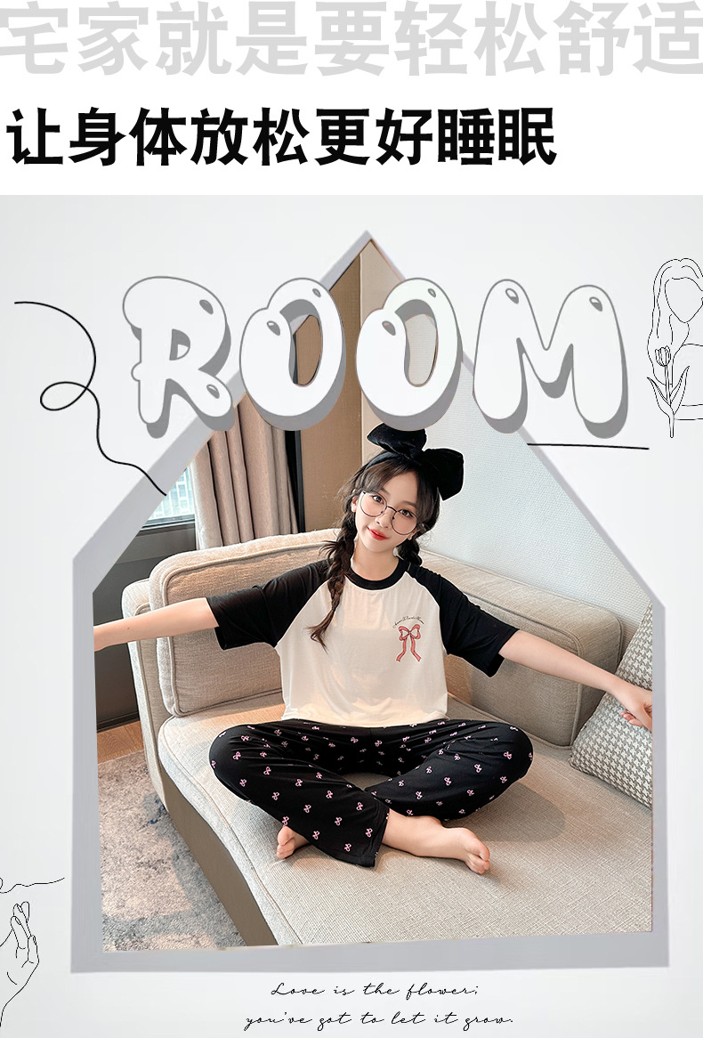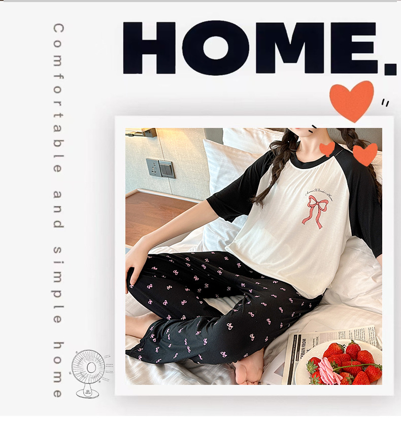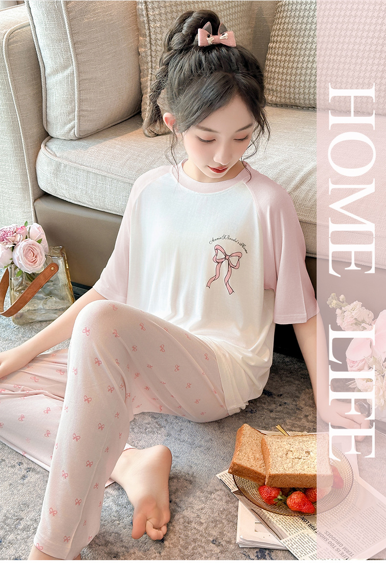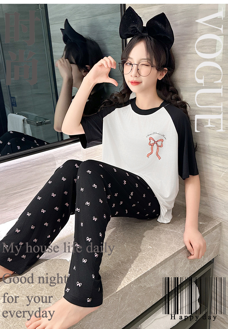 여아 잠옷 모달 여름 2025 신입생 중학생 여아 패션 홈웨어 얇은 반팔 3종 세트스토어 가기
