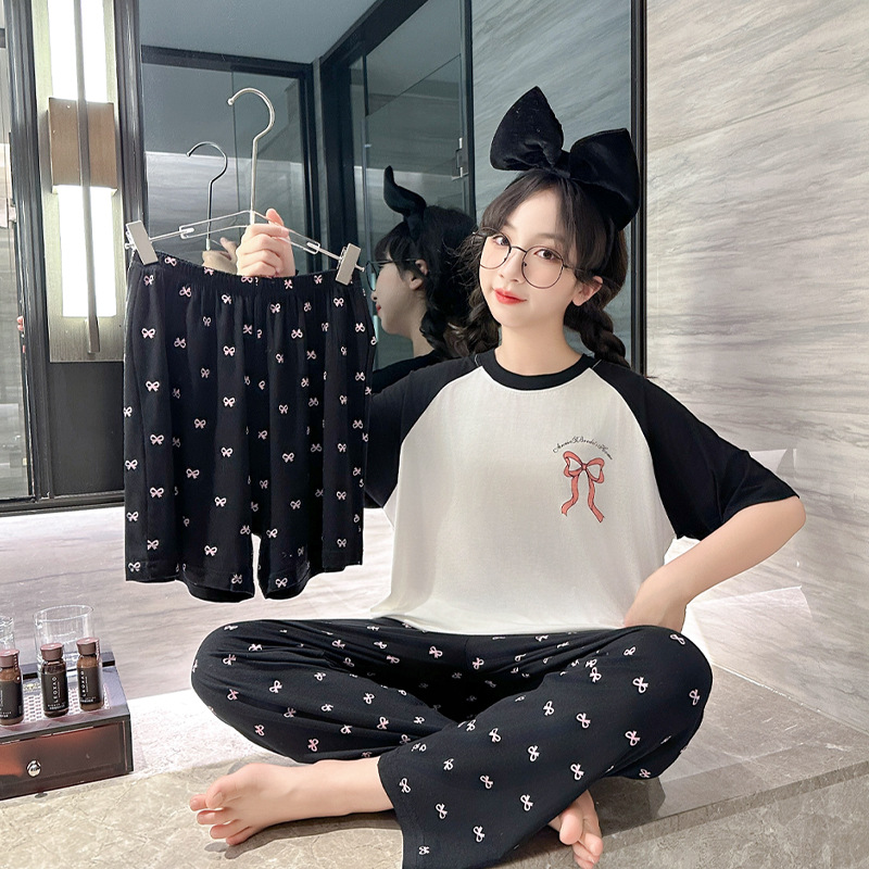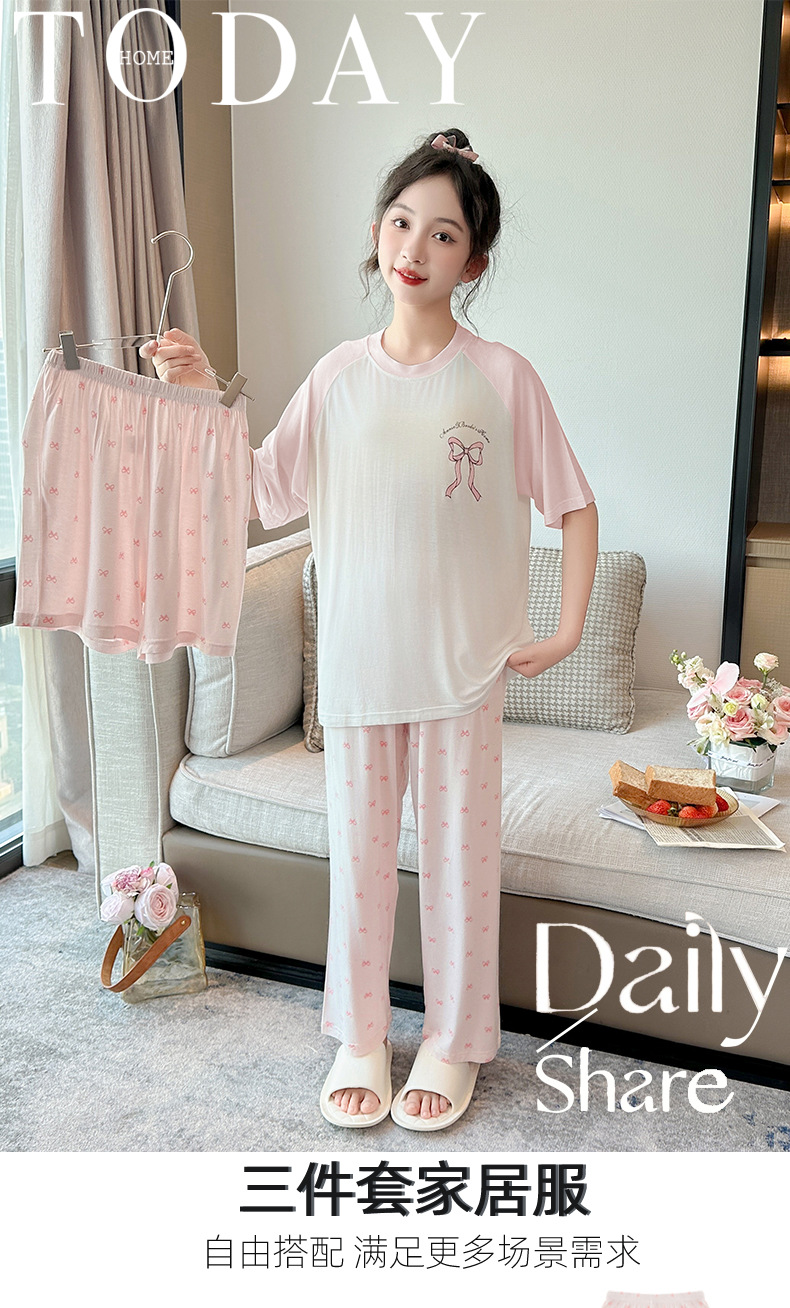여아 잠옷 모달 여름 2025 신입생 중학생 여아 패션 홈웨어 얇은 반팔 3종 세트