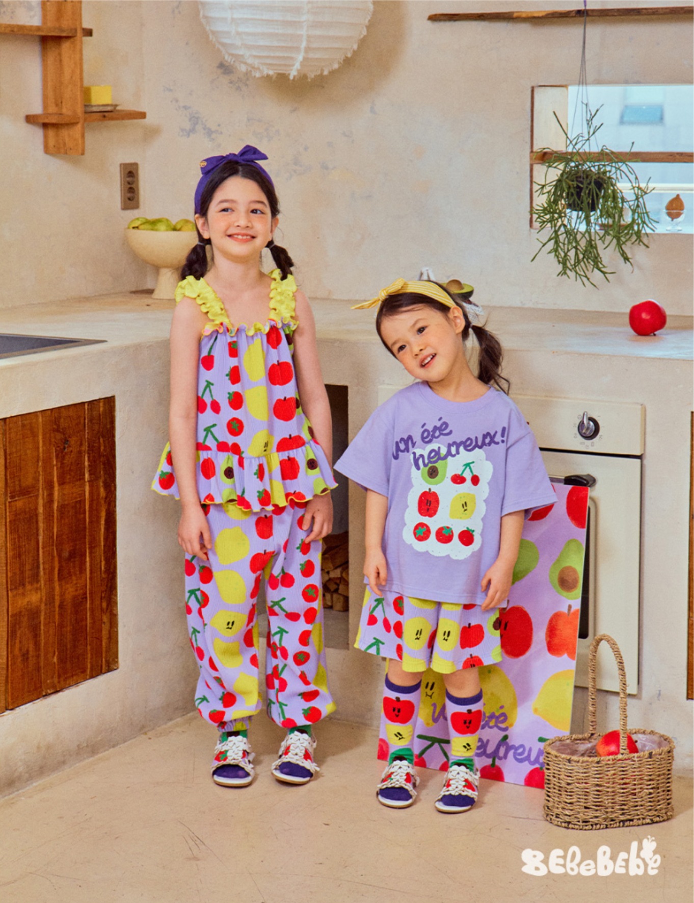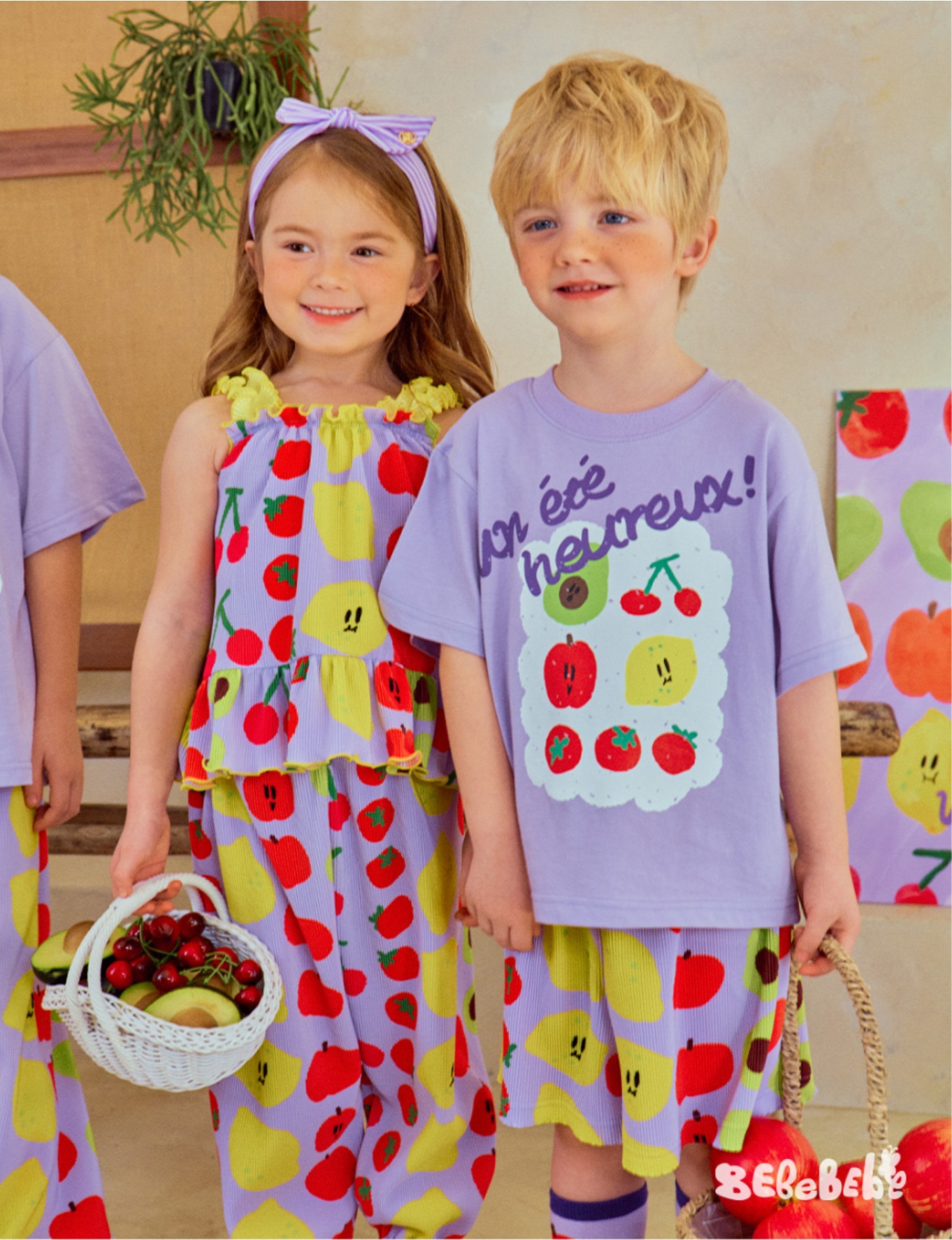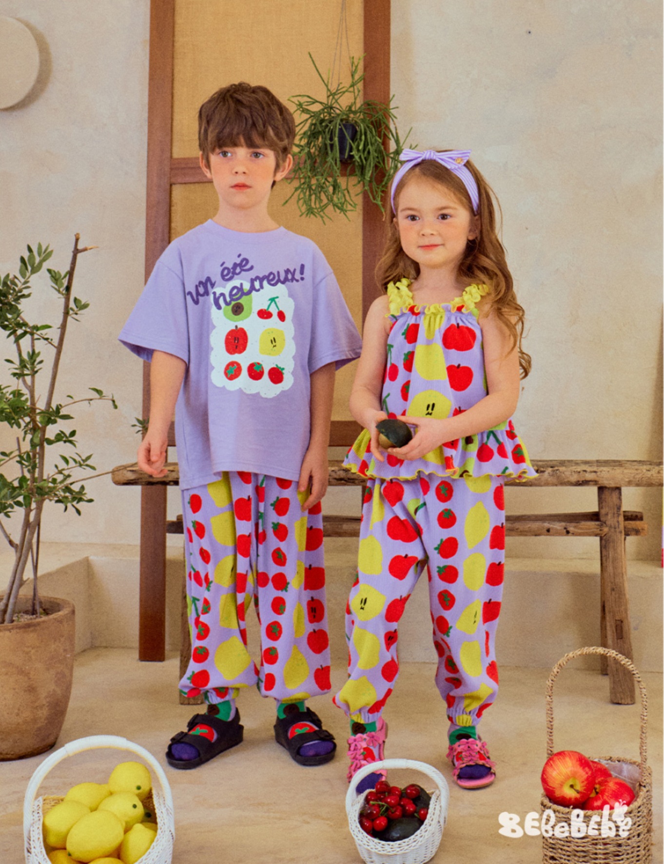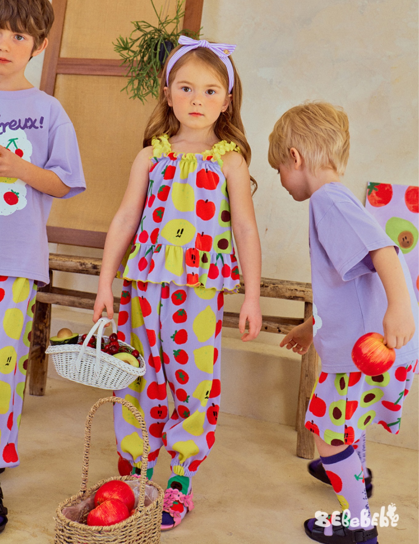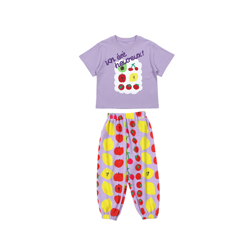 • BE 보라색 과일 프린트 티셔츠 + 바지 정장