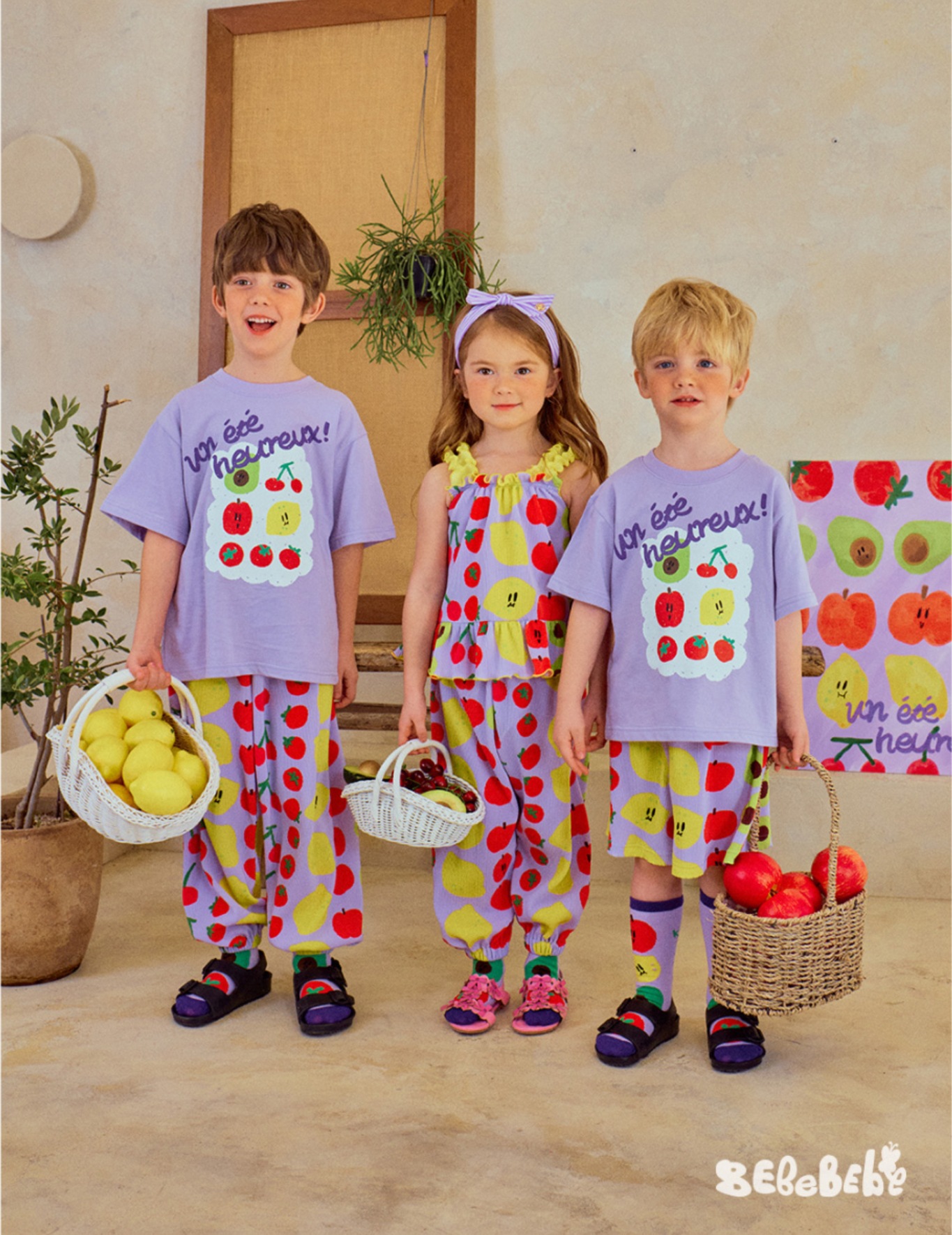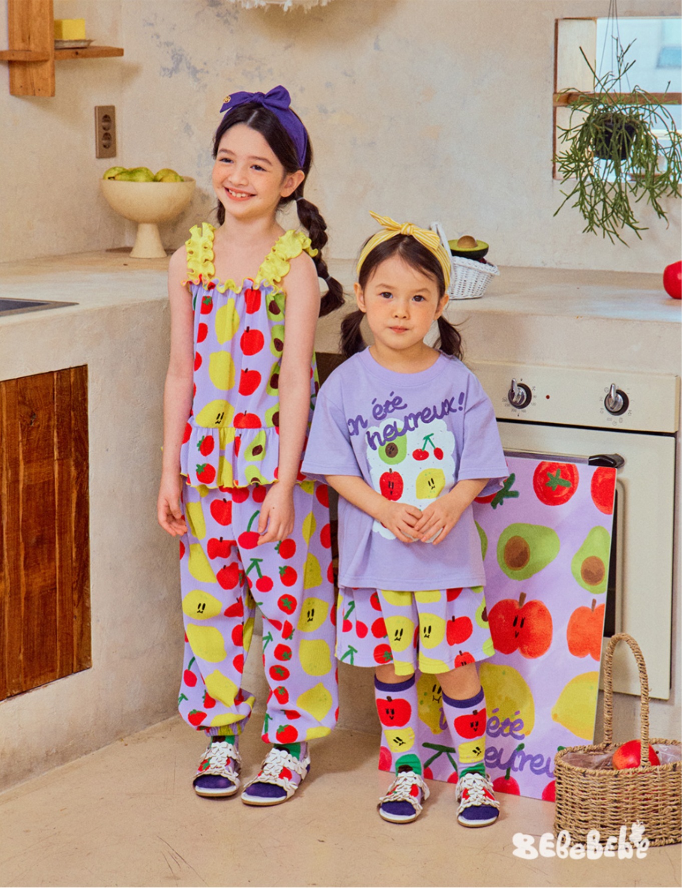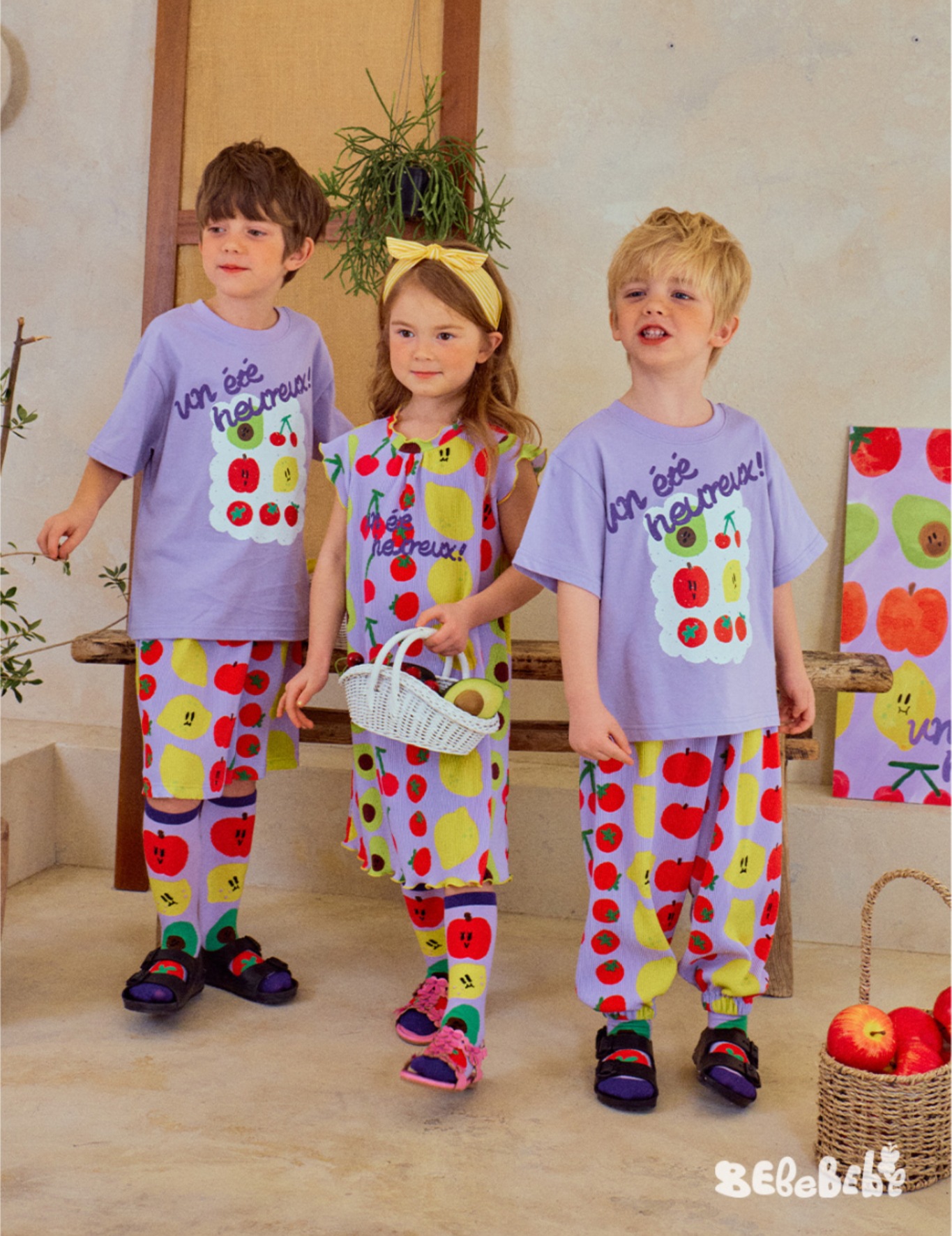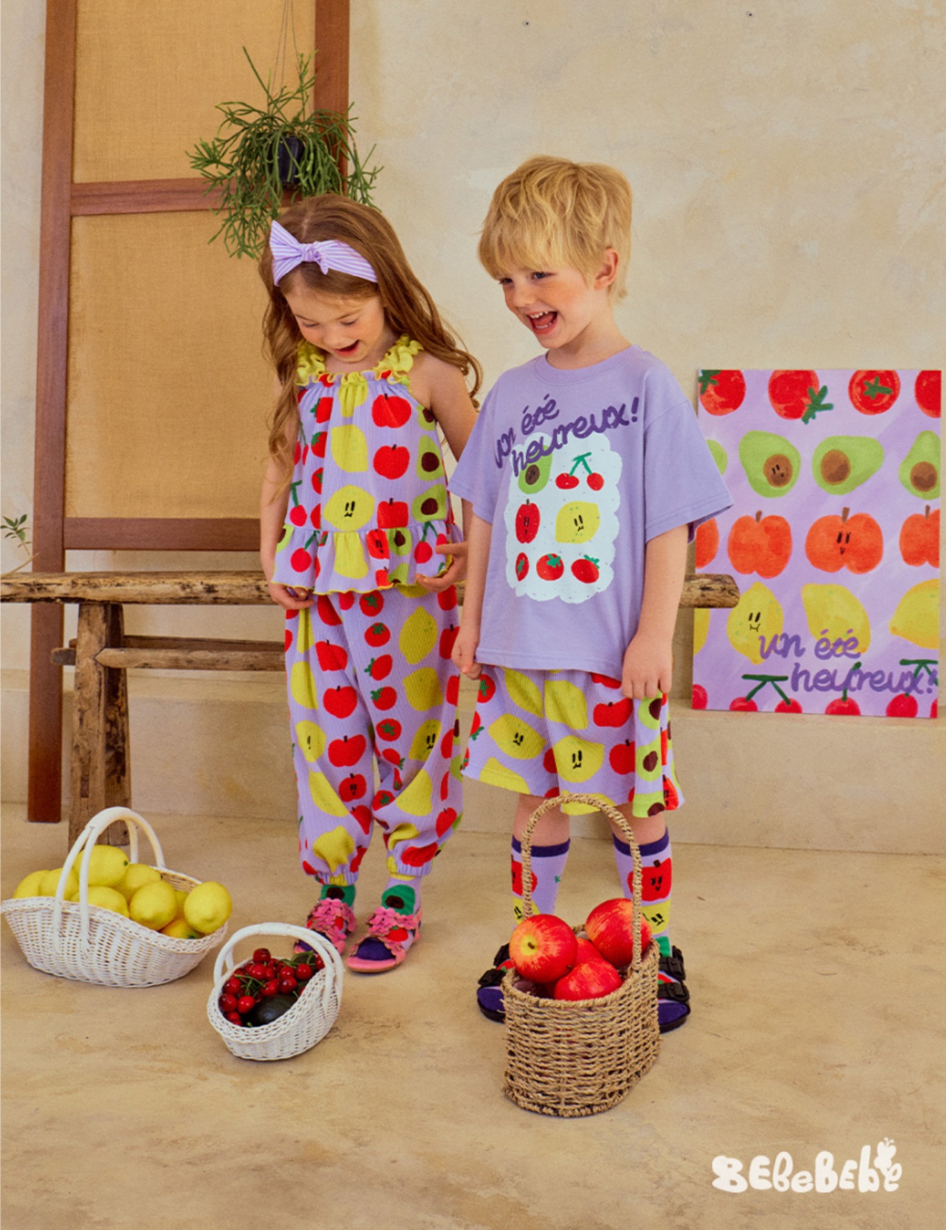 • BE 보라색 과일 프린트 티셔츠 + 바지 정장