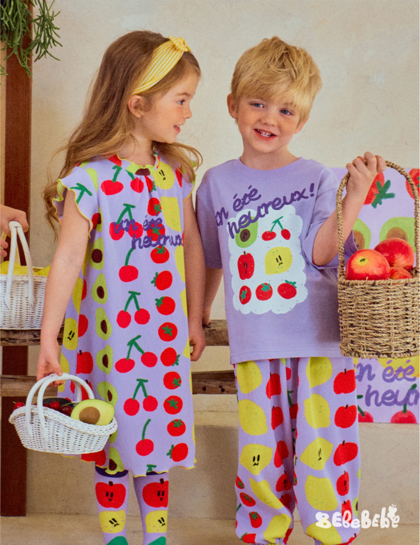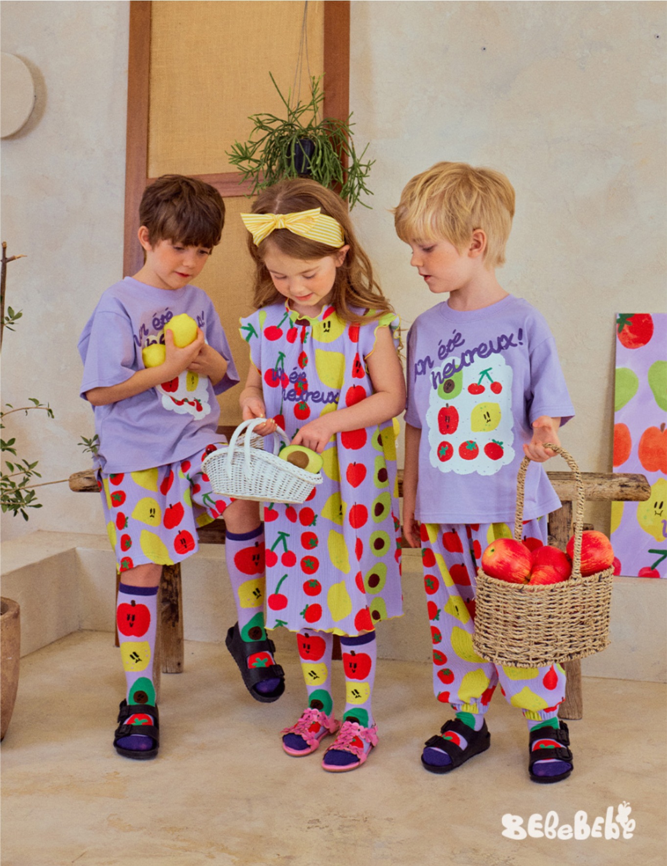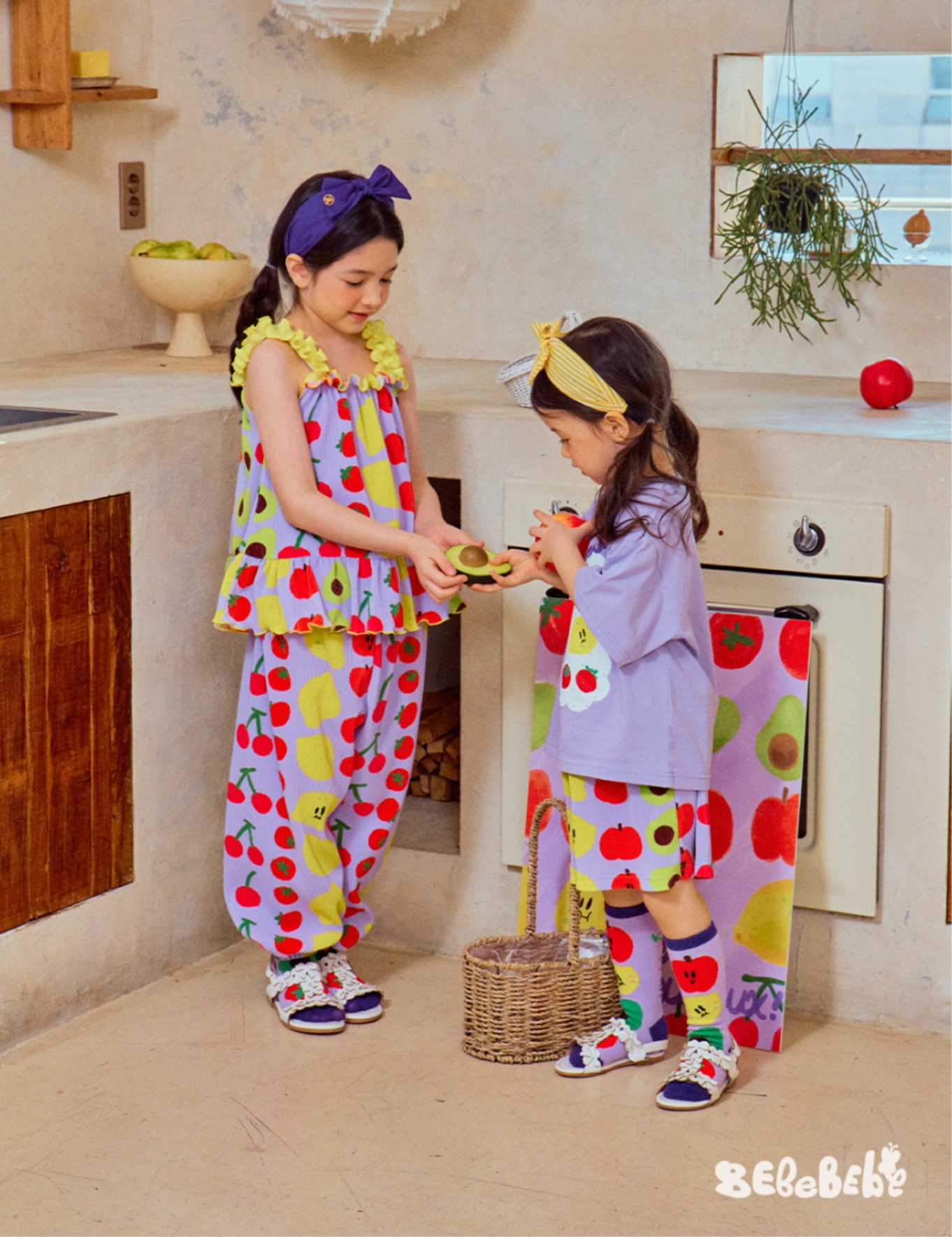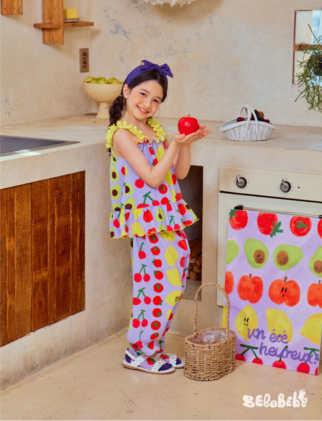 • BE 보라색 과일 프린트 티셔츠 + 바지 정장